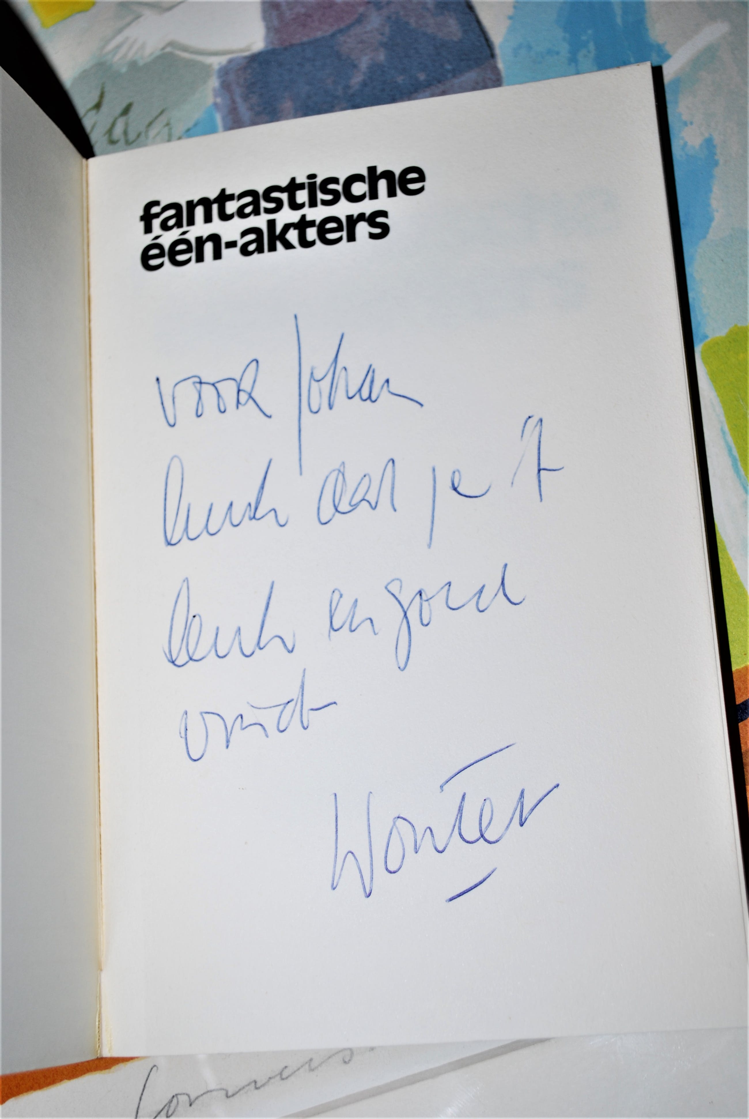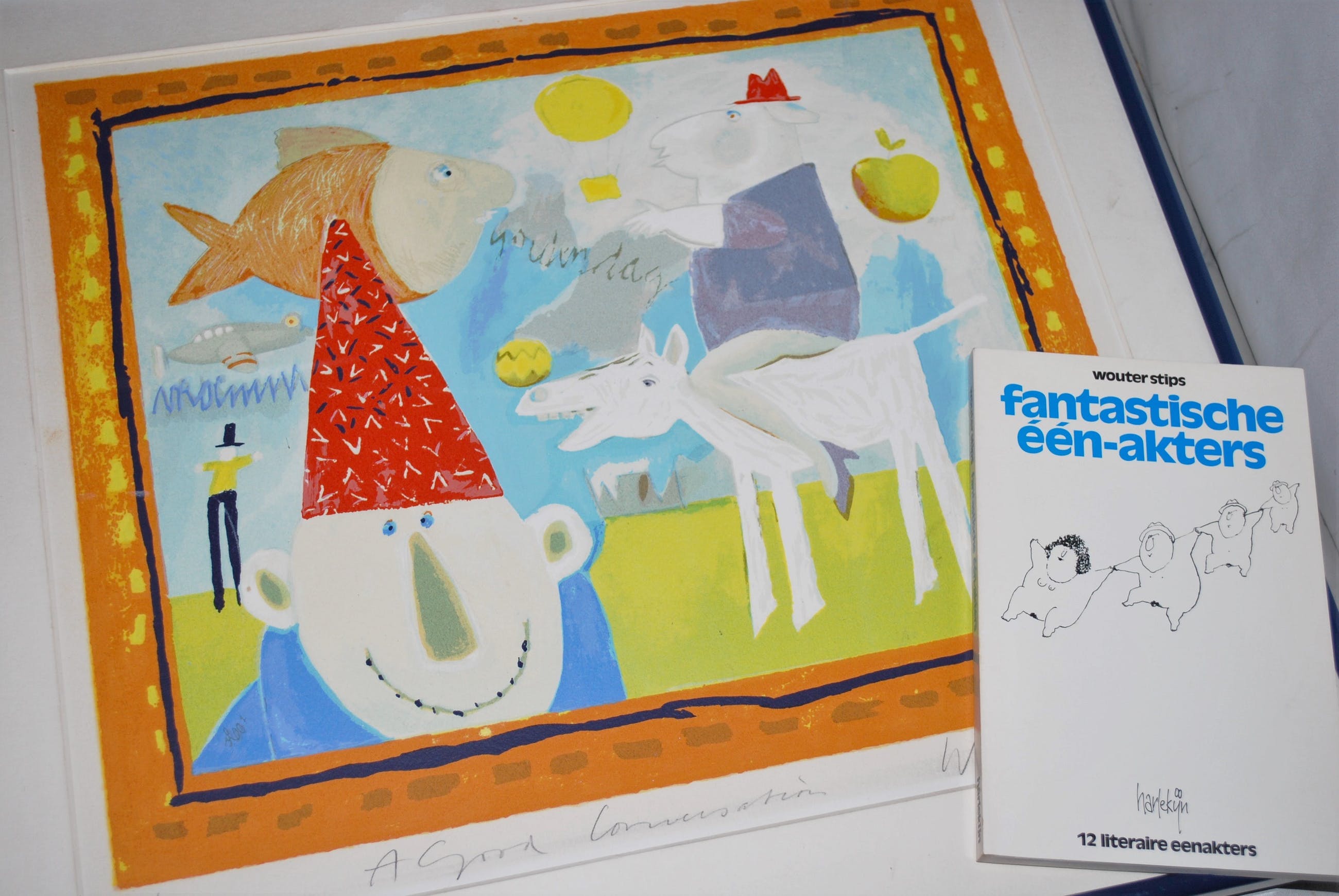 Boekwerkje uit 1980, 95 pag. met één-akters. In goede staat. Gesigneerd met pen op het schutblad. Omslagtekeningen ontworpen door Stips.