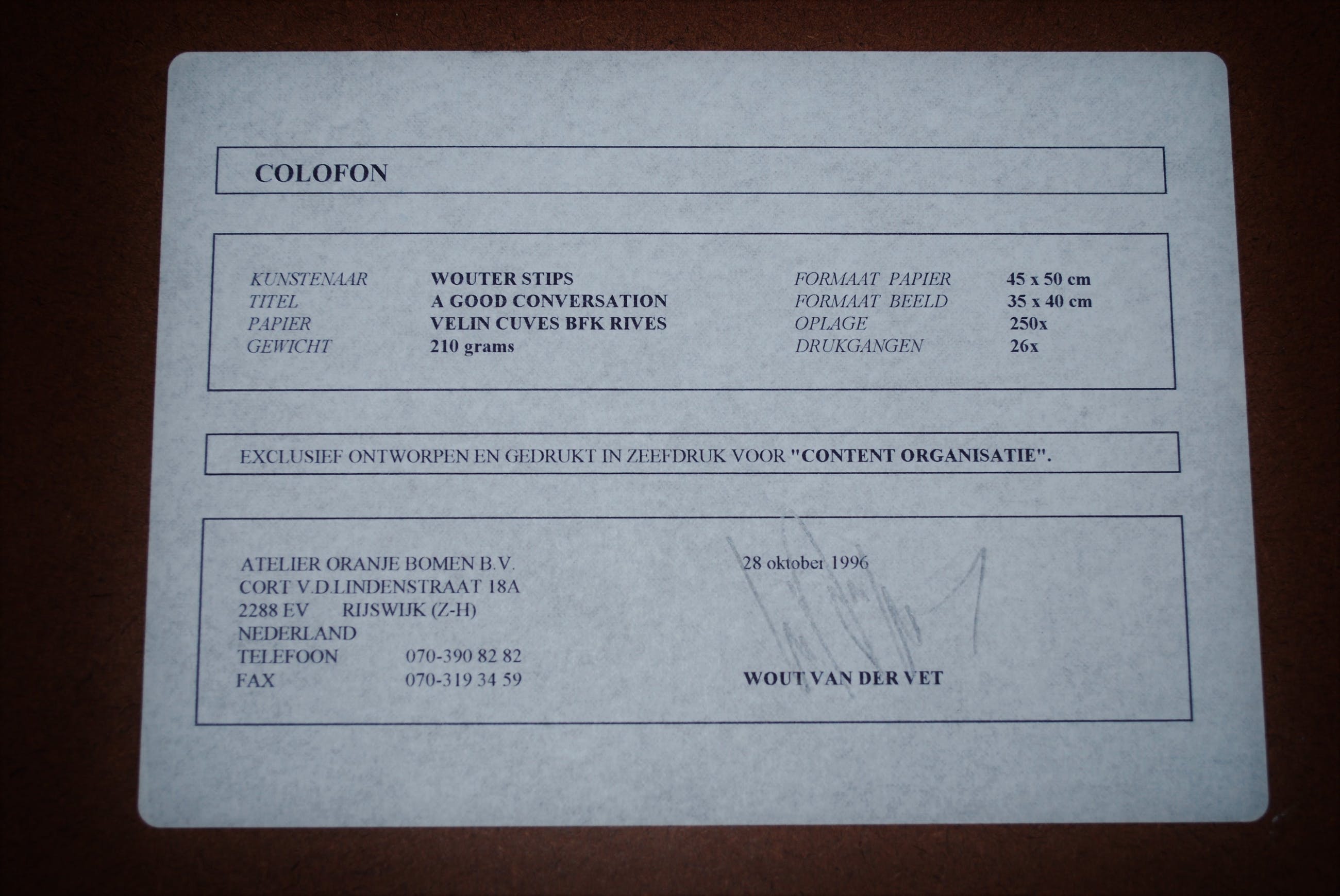 Oplage 41/250, uit 1996