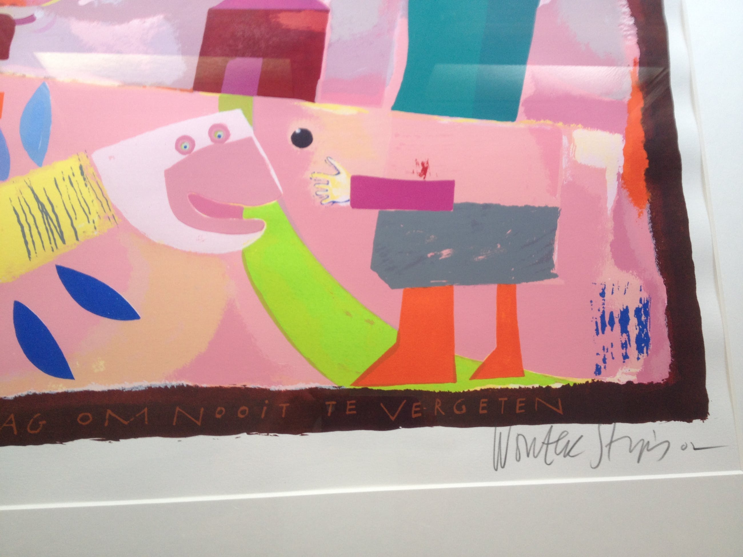 Groot werk in lichthouten lijst achter glas. Jaartal: 2002. Oorspronkelijke galerieprijs € 710,00. In verband met de grootte en de kwetsbaarheid van het werk alleen afhalen.