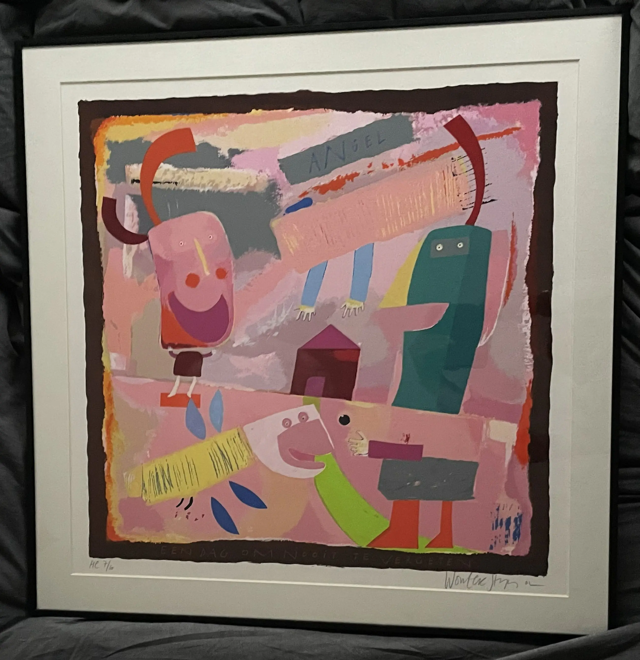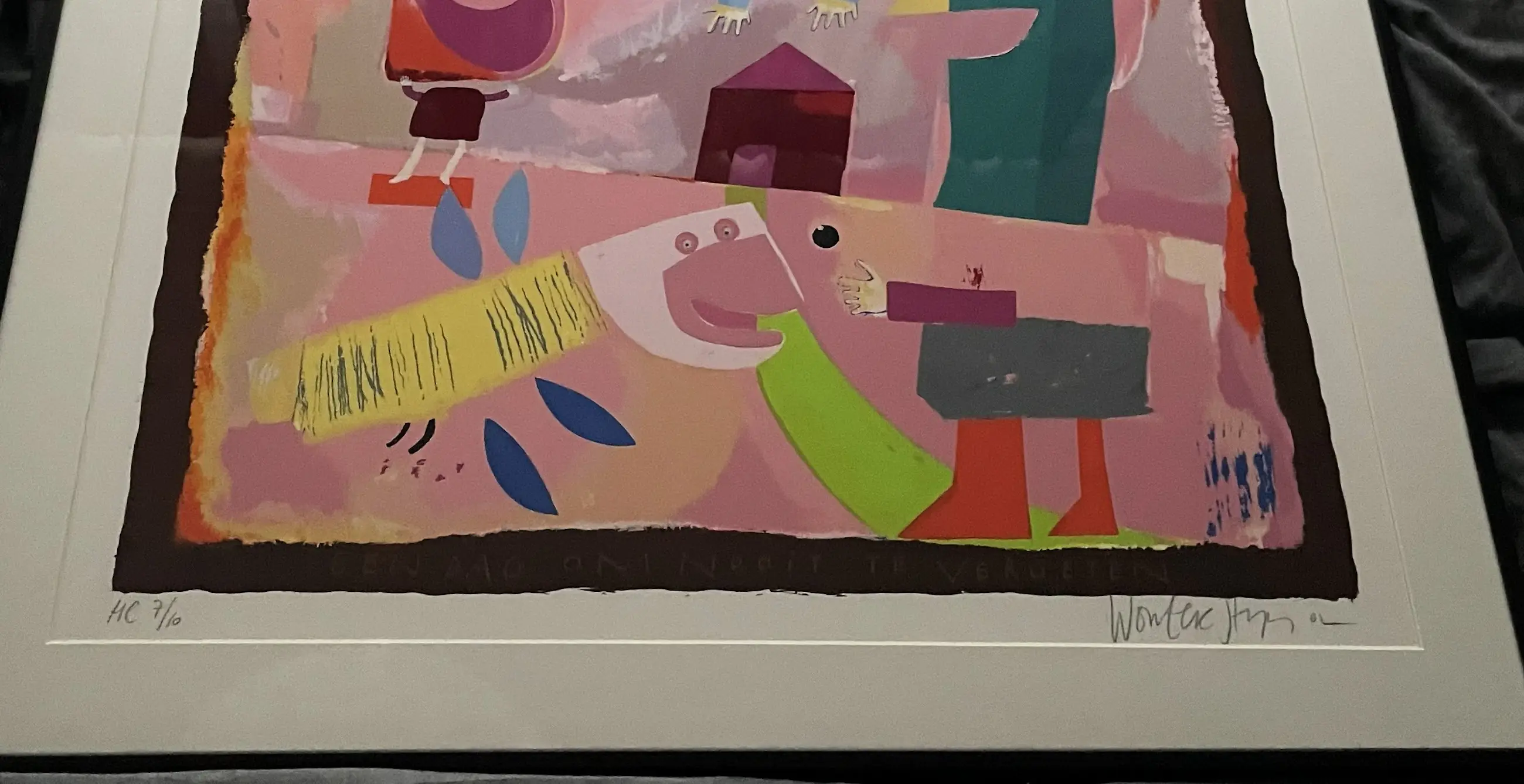 Grote kleurrijke zeefdruk van Wouter Stips op papier. Het werk verkeert in zeer uitstekende conditie. U kunt het werk vooraf komen bekijken in Groningen of na aankoop ophalen. Het werk kan ook verzonden worden opgehaald via een koerier.