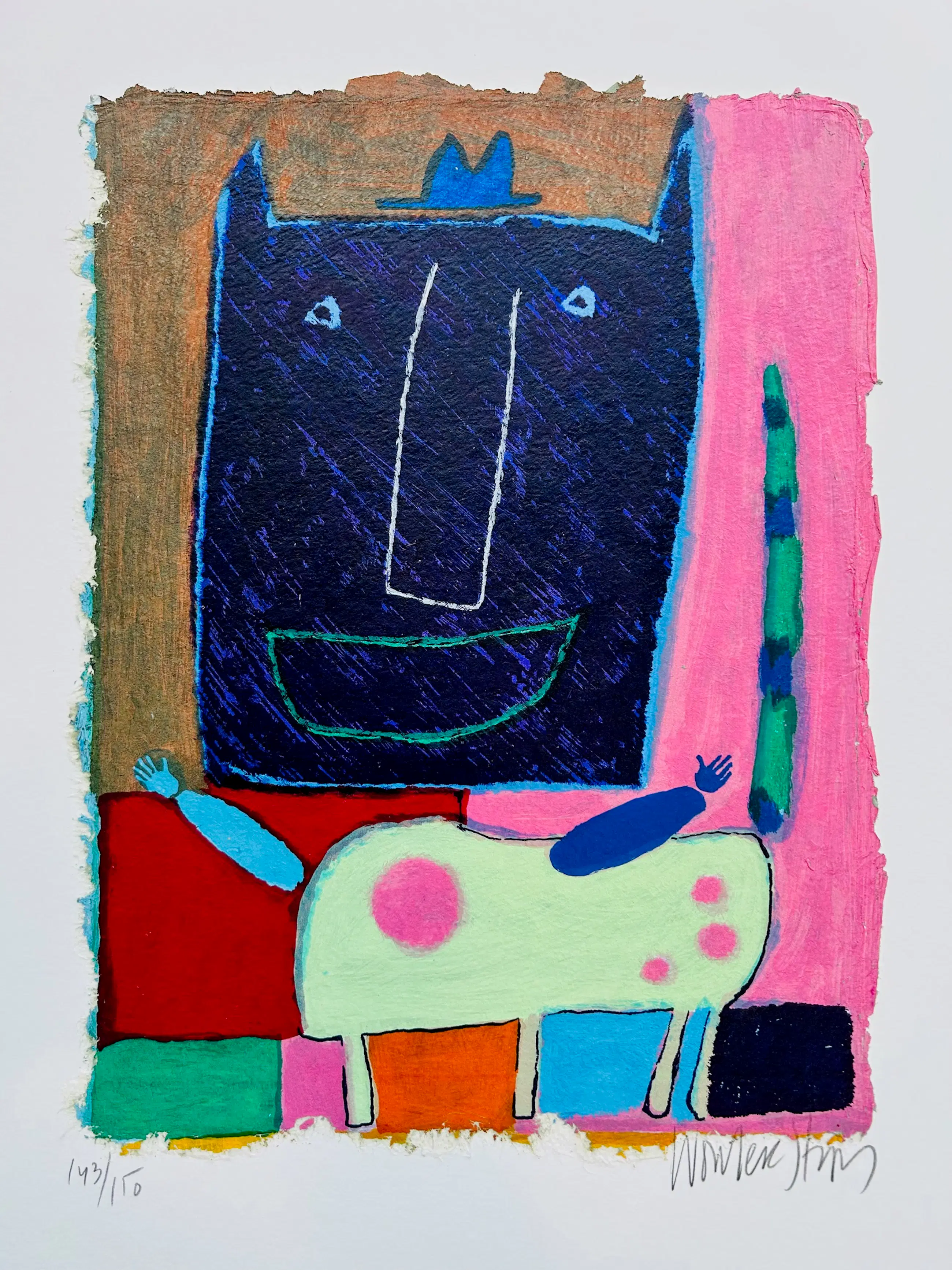 Mooi kleurrijke zeefdruk van Wouter Stips op karton geplakt. Het werk verkeert in zeer goede conditie. U kunt het werk vooraf komen bekijken bij galerie Rotor of na aankoop ophalen. Het werk kan ook verzonden worden via aangetekende post. Met potlood gesigneerd en genummerd.