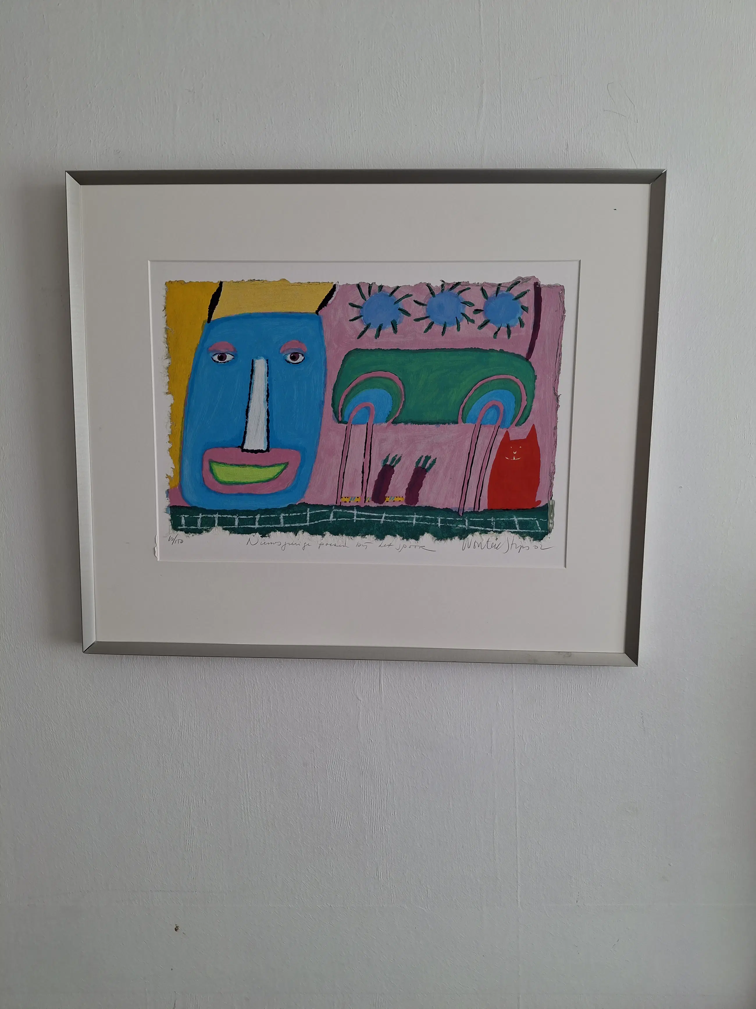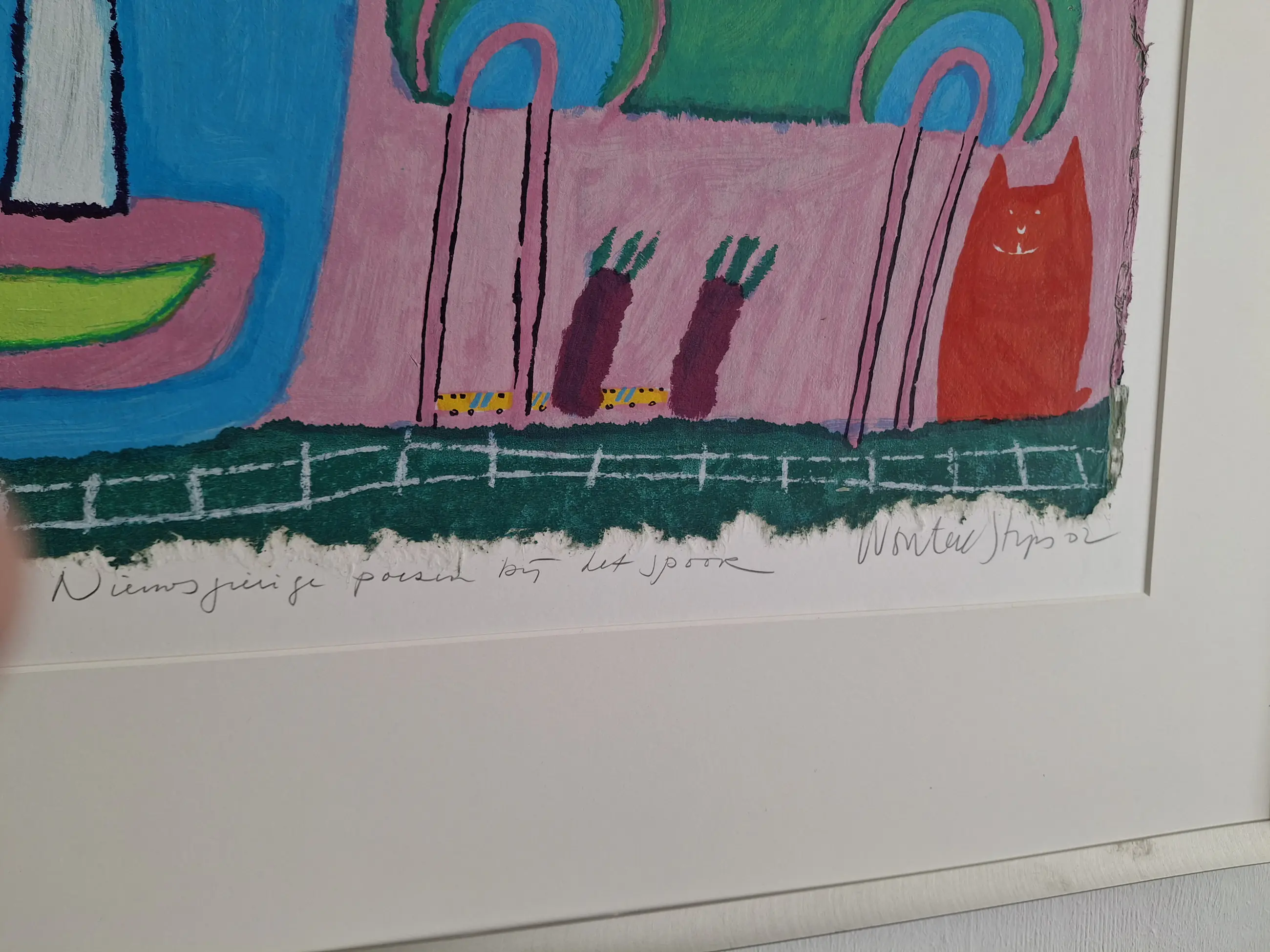 Wouter Stips - Nieuwsgierige poezen bij het spoor Oplage 10/150 Gesigneerd r.o. Afmetingen inclusief lijst 61x72cm Ingelijst, glas ontbreekt