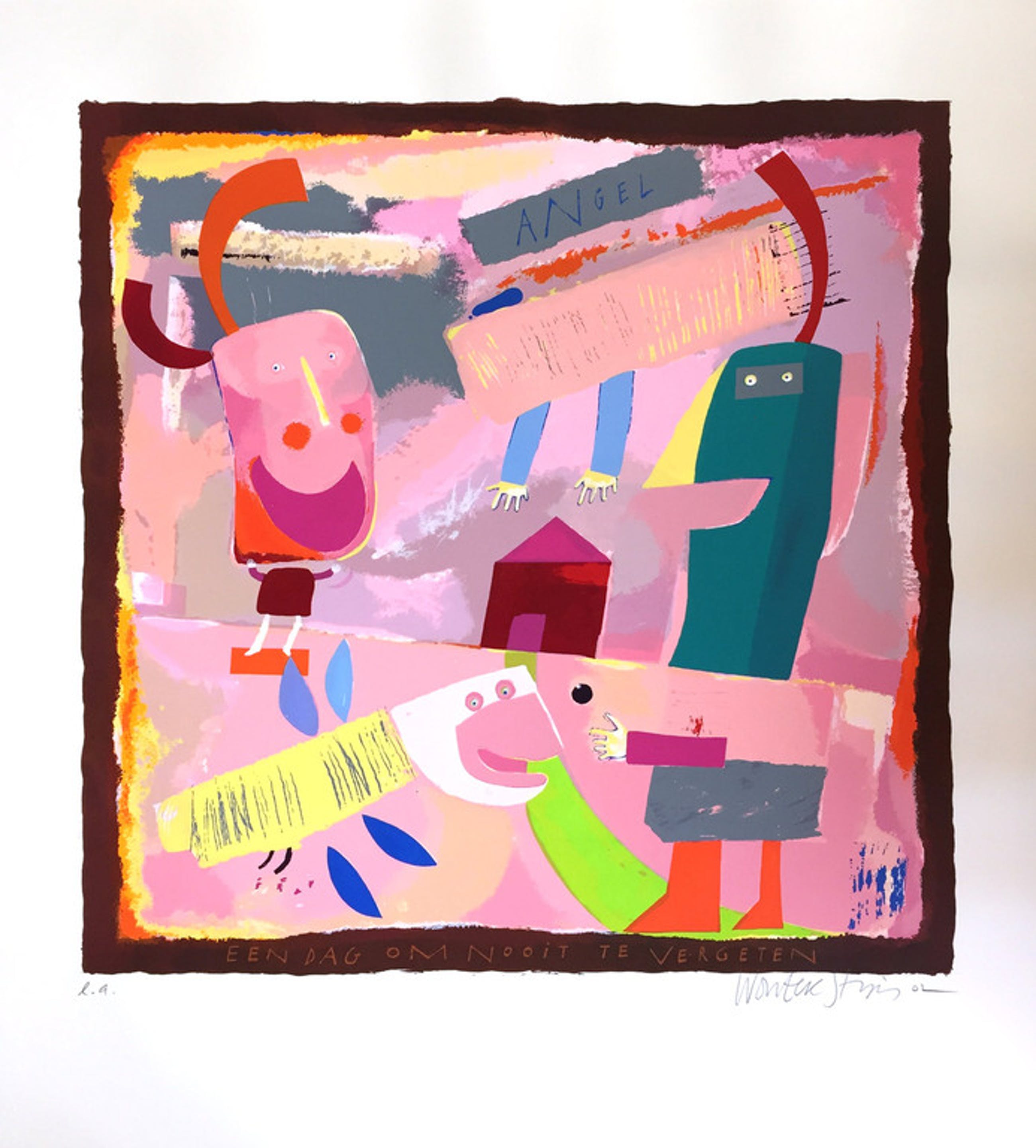 Zeefdruk is door meesterzeefdrukker Wout van der Vet met de hand gedrukt op geschept papier en genummerd en gesigneerd met potlood door de kunstenaar.