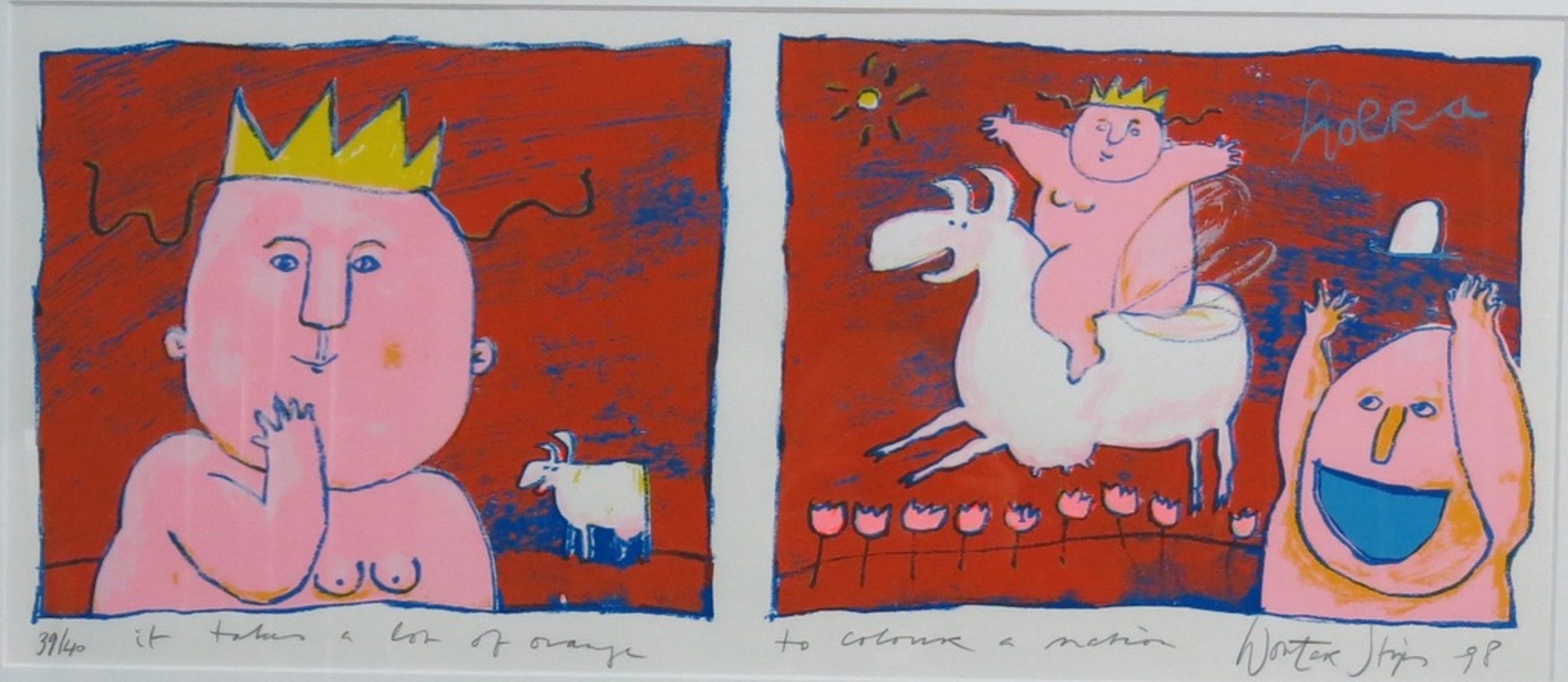 Bij foto´s van ingelijste werken kan spiegeling zichtbaar zijn. Alle werken zijn in perfecte staat, tenzij nadrukkelijk anders aangegeven. Het oplagenummer op de foto(s) kan afwijken van het hierboven genoemde correcte oplagenummer.