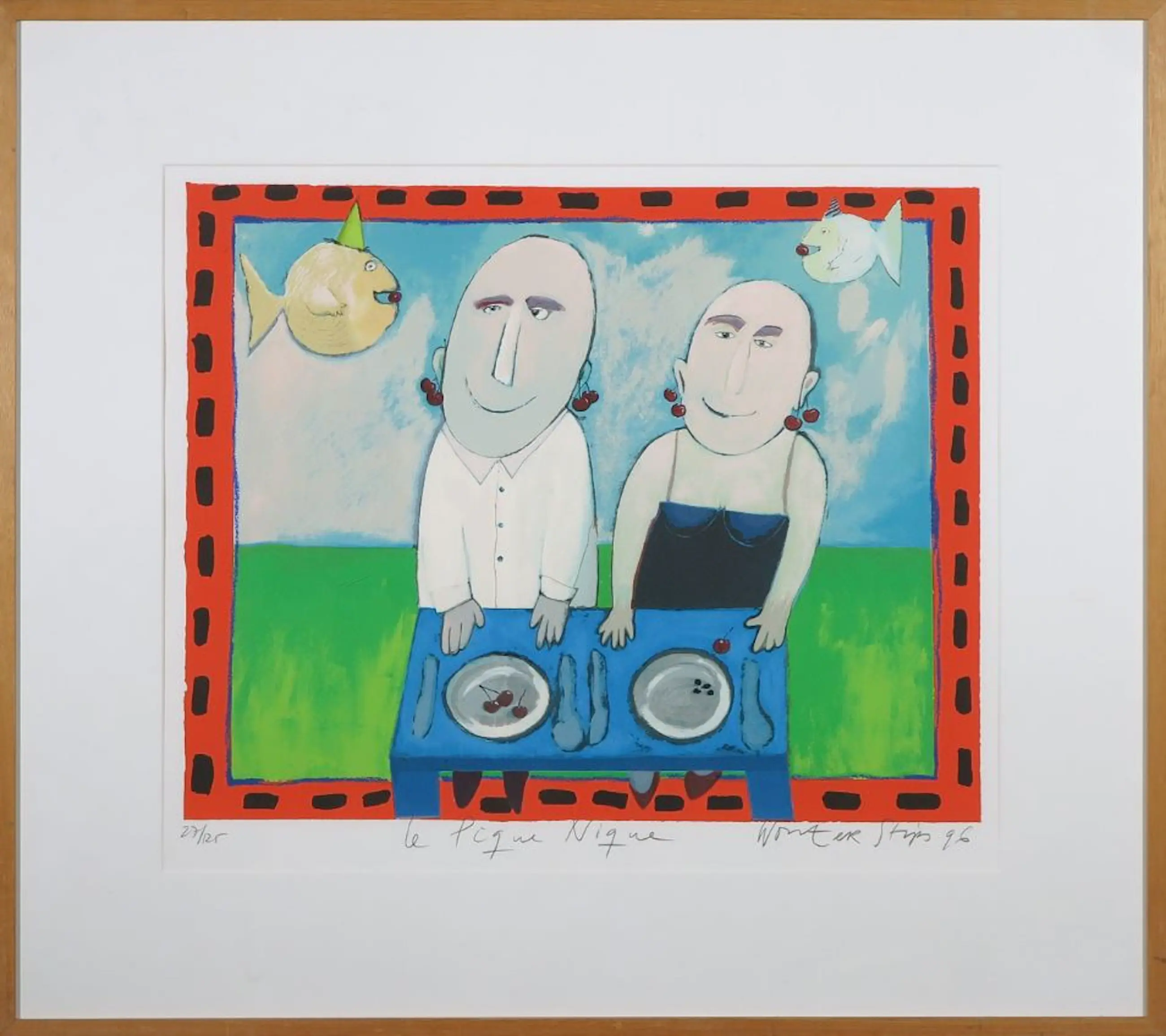 Wouter Stips - Zeefdruk, Le pique nique - Ingelijst - Verkocht