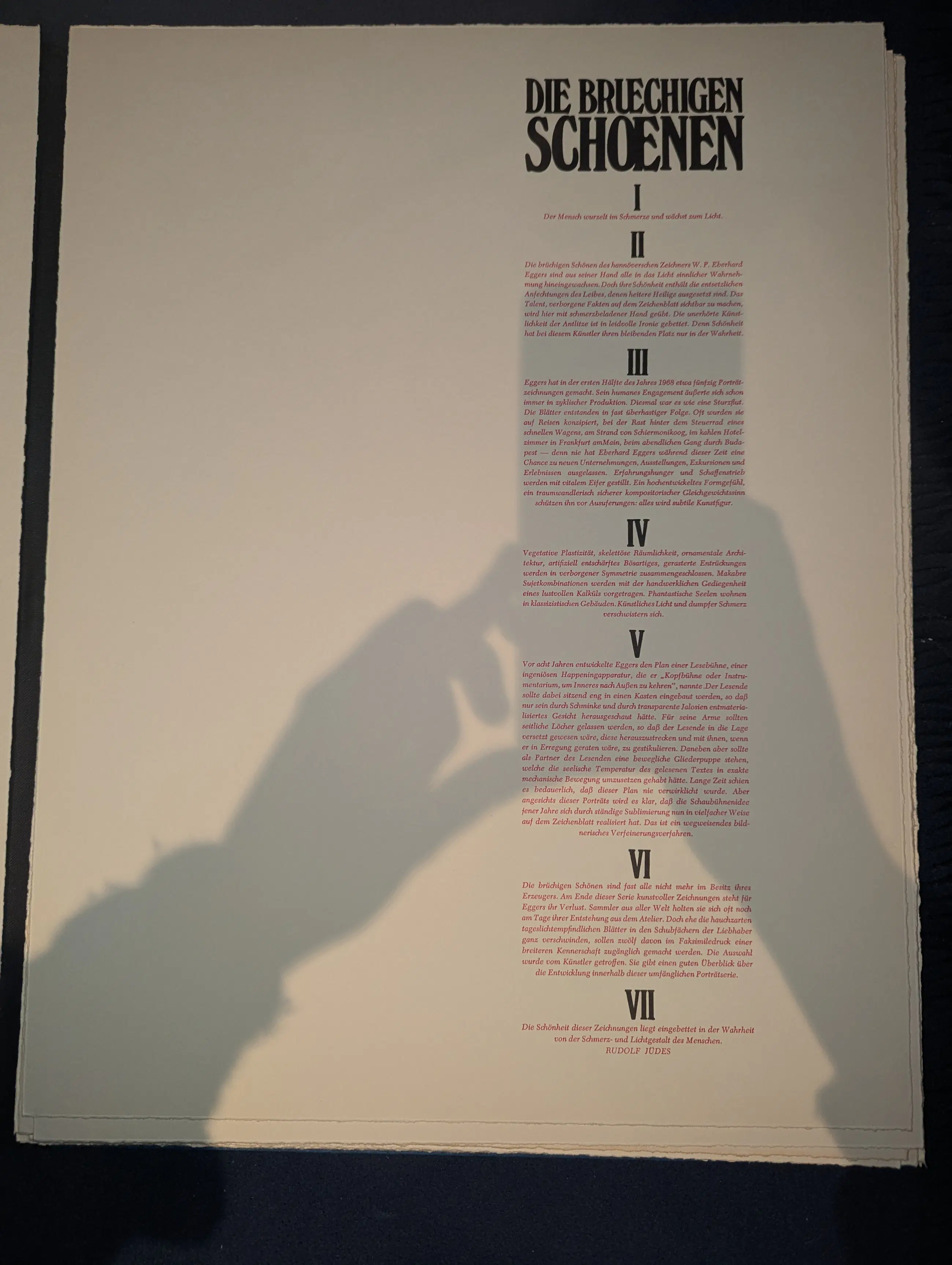 Een selectie van 12 potloodtekeningen van WPE Eggers, gemaakt tussen oktober 1967 en juli 1968. Een documentatie met een voorwoord van Rudolf Jüdes.