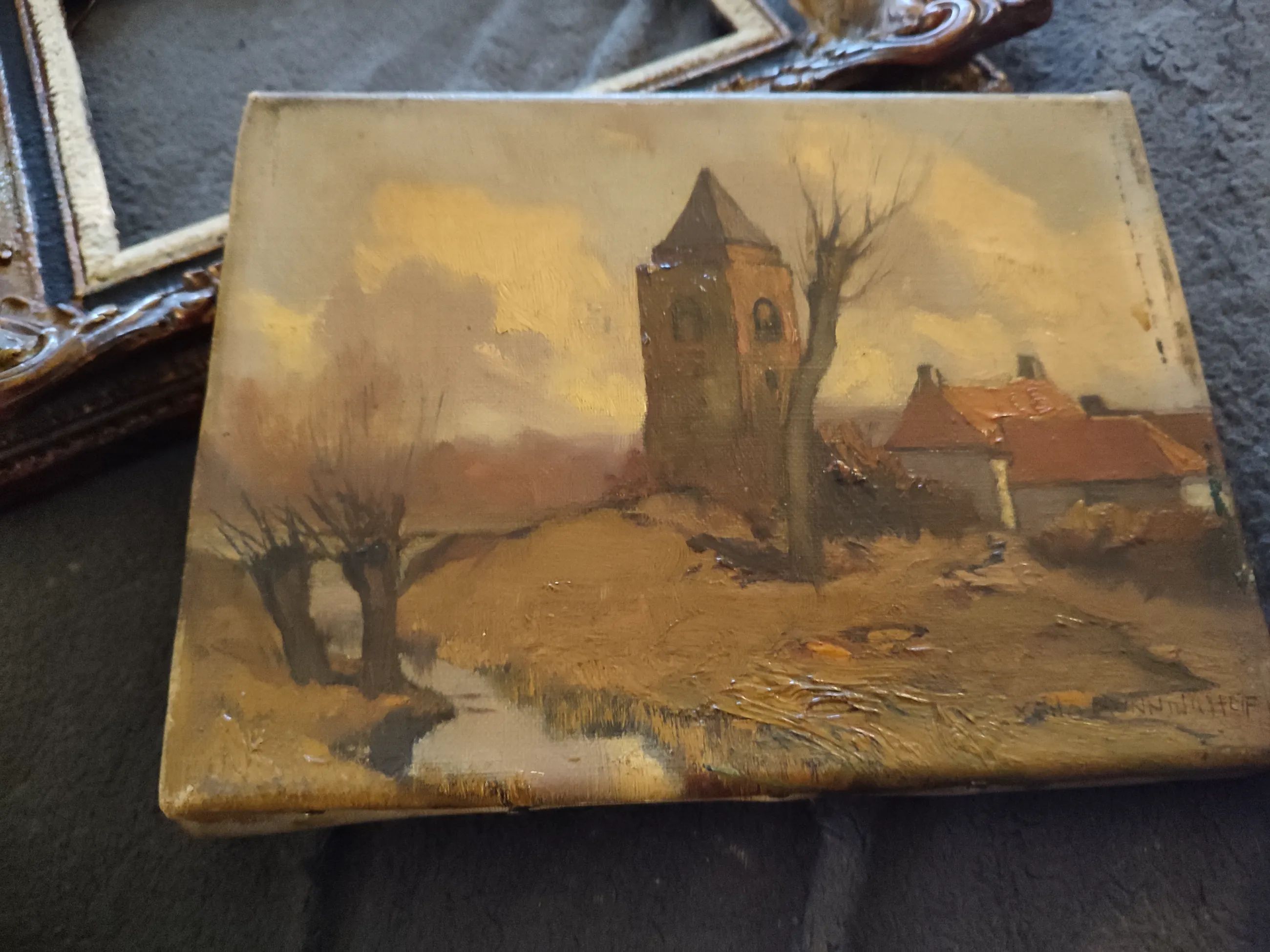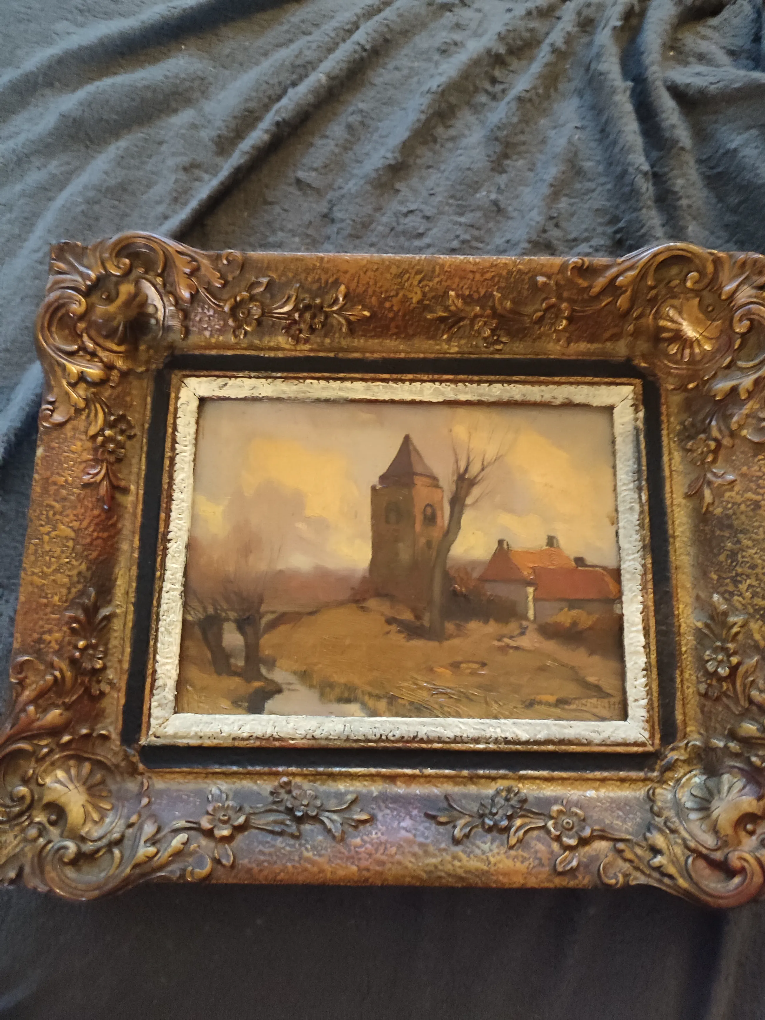 Dit schilderij heb ik gekregen van mijn oma en is van Xeno Munninkhoff. Het is een landschap met kerk