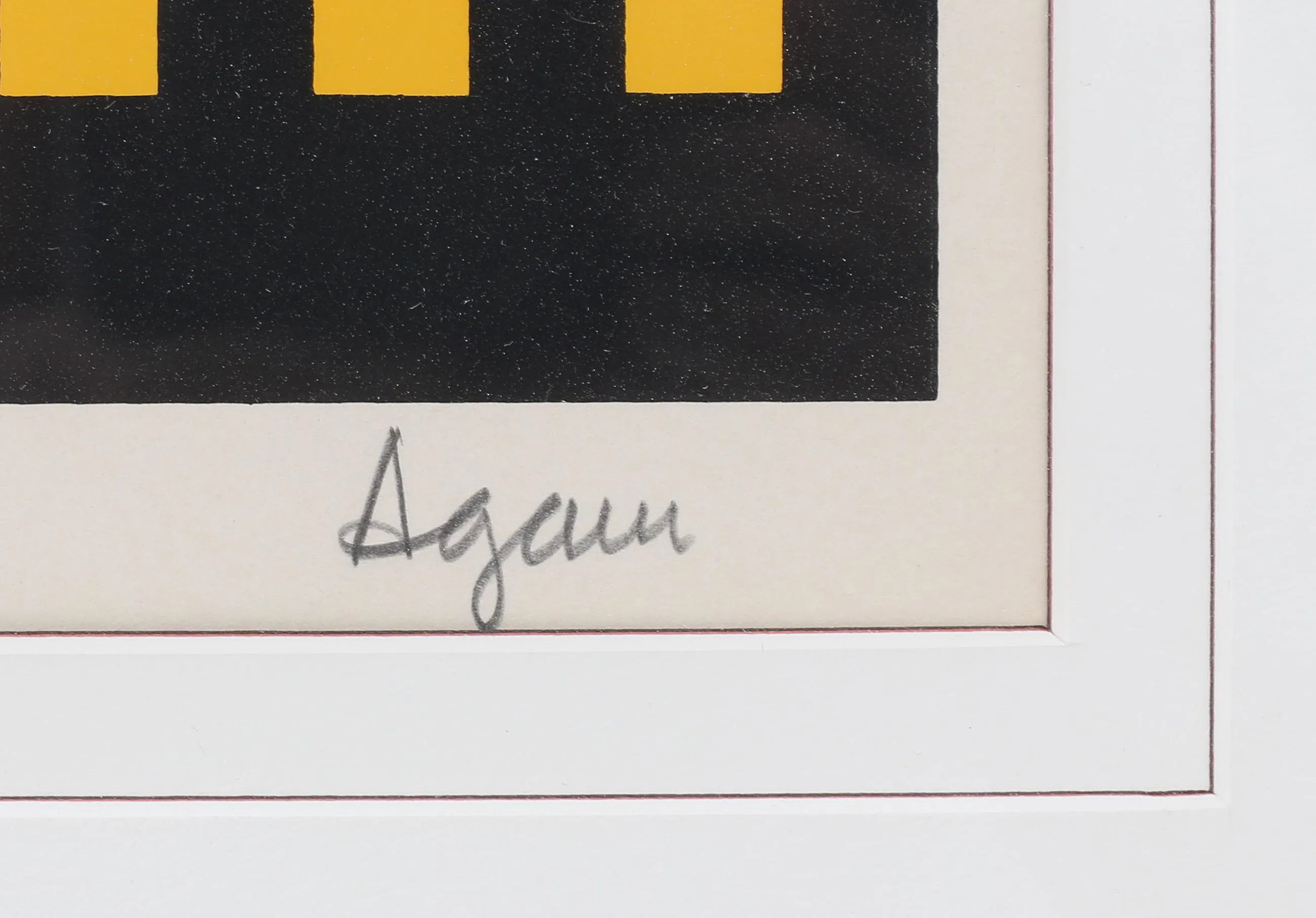 Ingelijste zeefdruk van Yaacov Agam. Titel: Midnight Light. Nummer: A.P 15/27. Afmetingen voorstelling: H49 x b43cm. Het werk is rechtsonder gesigneerd door de kunstenaar. De authenticiteit van het aangeboden werk wordt volledig gegarandeerd. Een certificaat van echtheid kan, op aanvraag, worden gemaild.