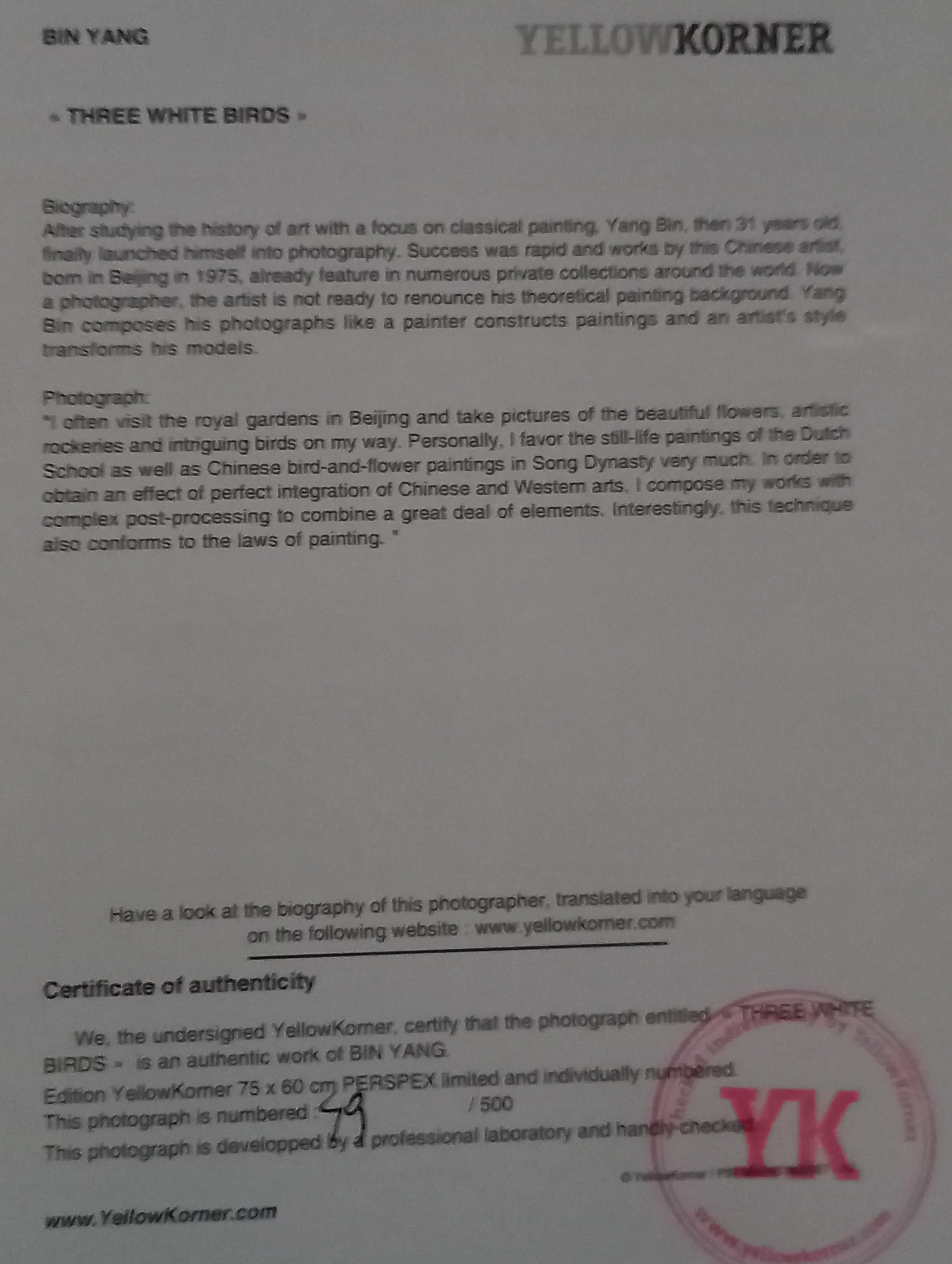Fotograaf heeft foto's gemaakt in Royal Gardens Beijing. Hij werd geïnspireerd door stil leven schilderijen van Dutch School en door Chinese schilderijen van Song Dynasty. Dat maakt dat hij is gekomen tot de combinatie van Chinese en Westerse kunst.