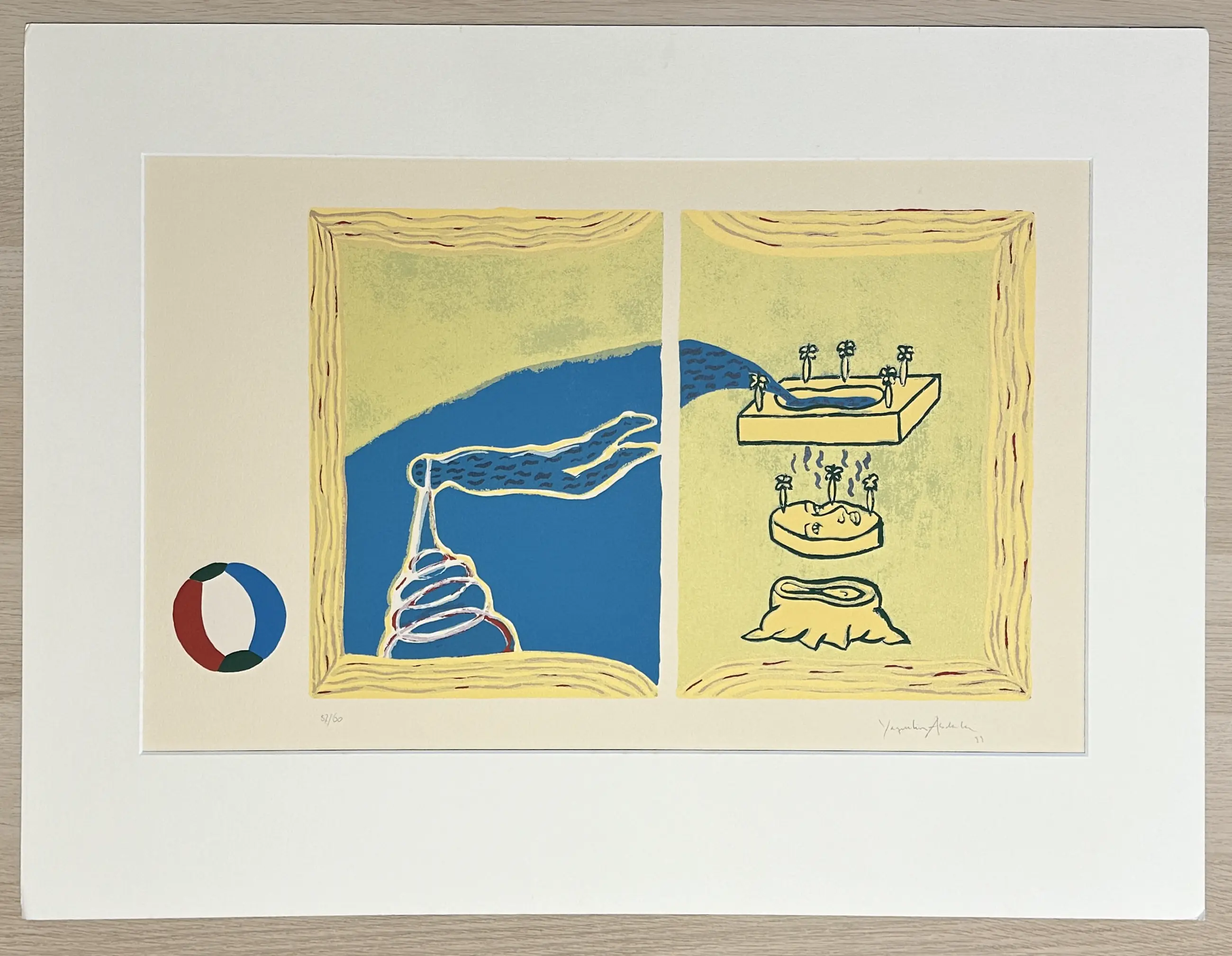 Zeefdruk van de Cubaanse kunstenares Yaquelin Abdala uit 1999, gemaakt in een oplage van 60. Dit betreft afdruk 37/60. Gedrukt op zuurvrij geschept papier, papierformaat 60 x 80 cm, zichtmaat ca. 40 x 59 cm.. Handgesigneerd en genummerd door de kunstenaar. De zeefdruk is in uitstekende staat. Kan alleen vlak worden verstuurd, het werk is gemonteerd op zuurvrij karton.