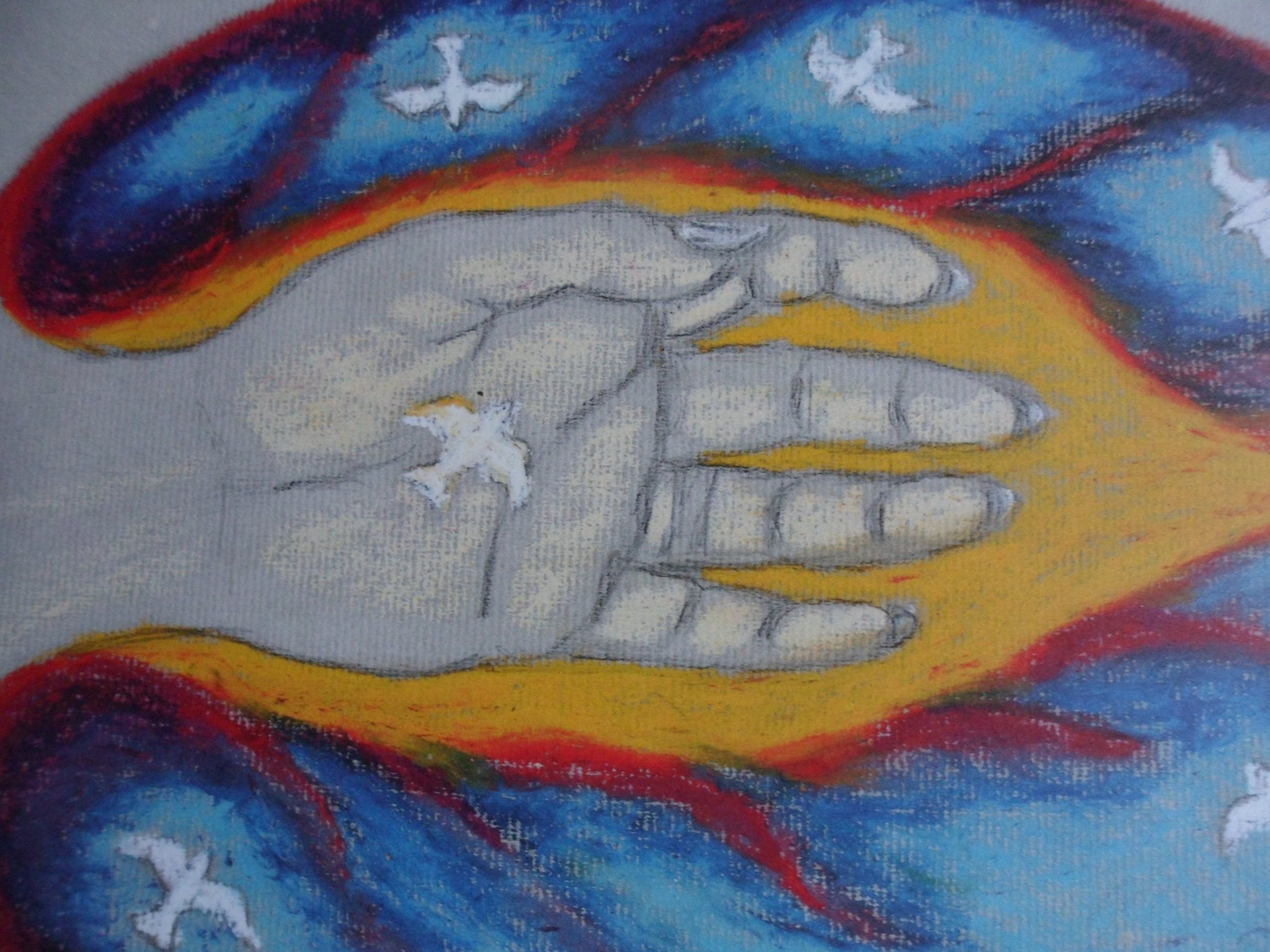 Een reliëf in hout tegenover het platte vlak in het geschilderde doek. Niet altijd hoeft de betekenis onmiddellijk duidelijk te zijn, ook een aanvankelijke raadselachtigheid kan werkzaam zijn, tot die zich in een diepere waarde aan de beschouwer mededeelt.