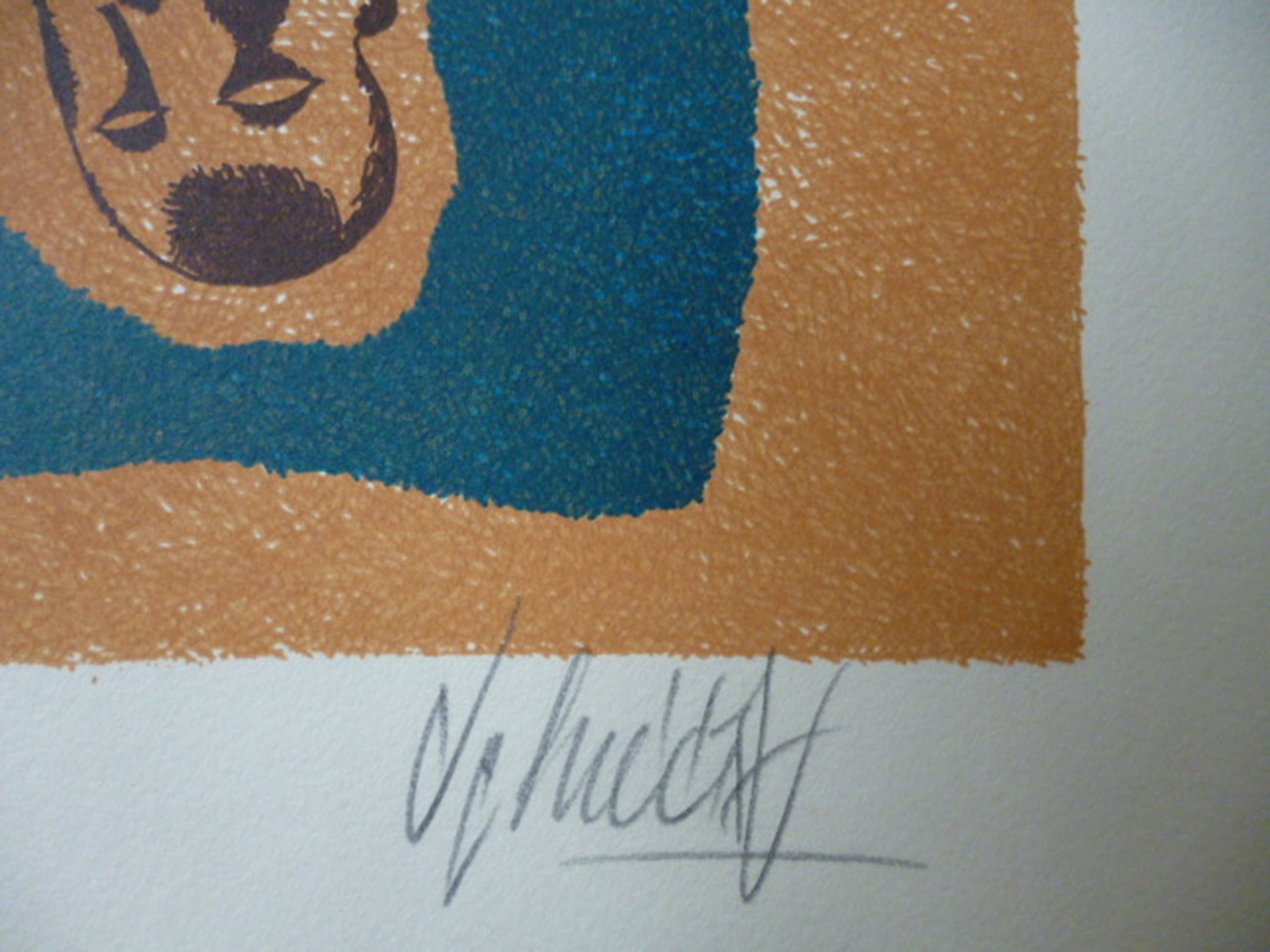 Kleurenlitho, potlood gesigneerd rechtsonder. Genummerd 19/20 linksonder.