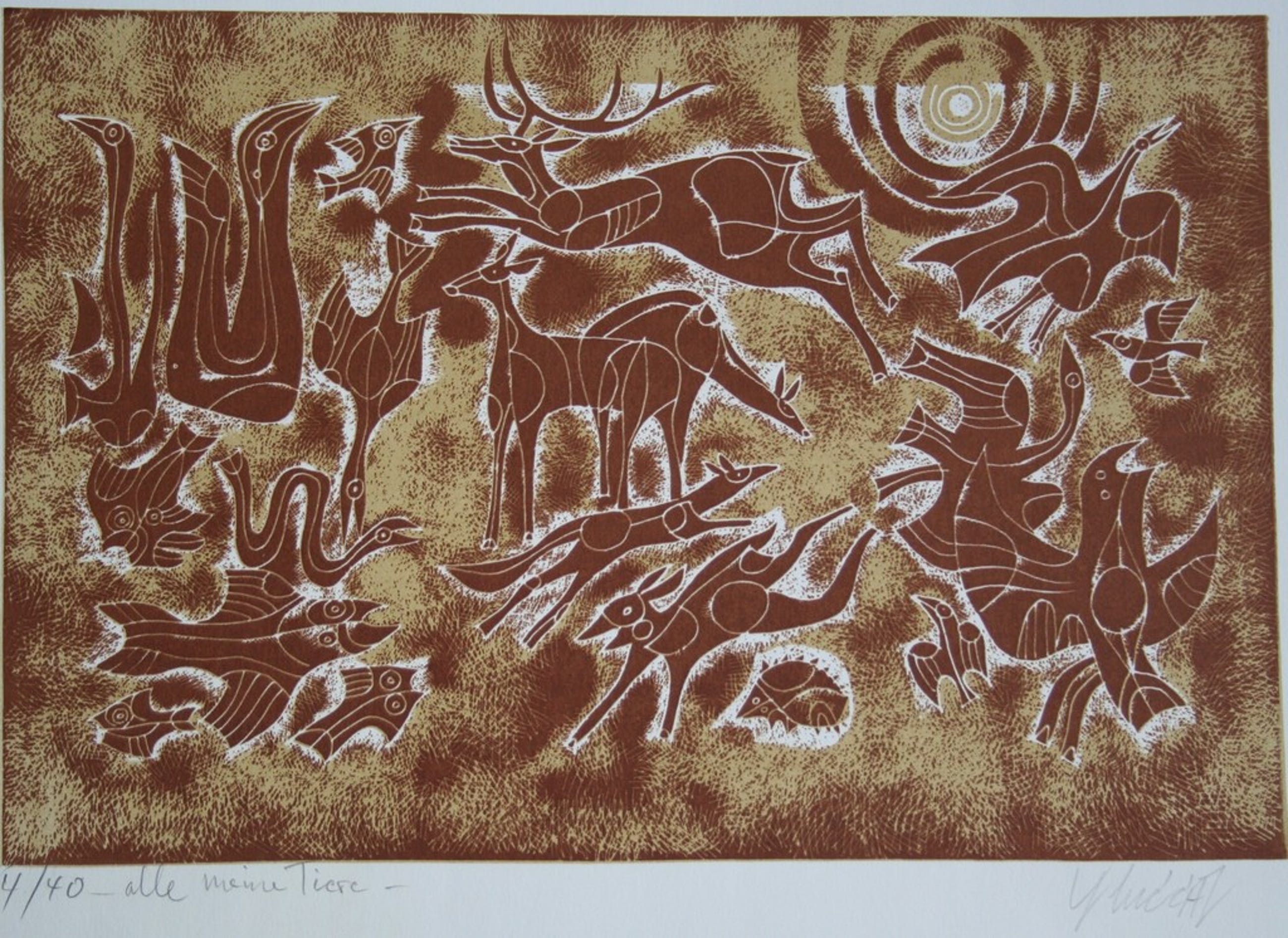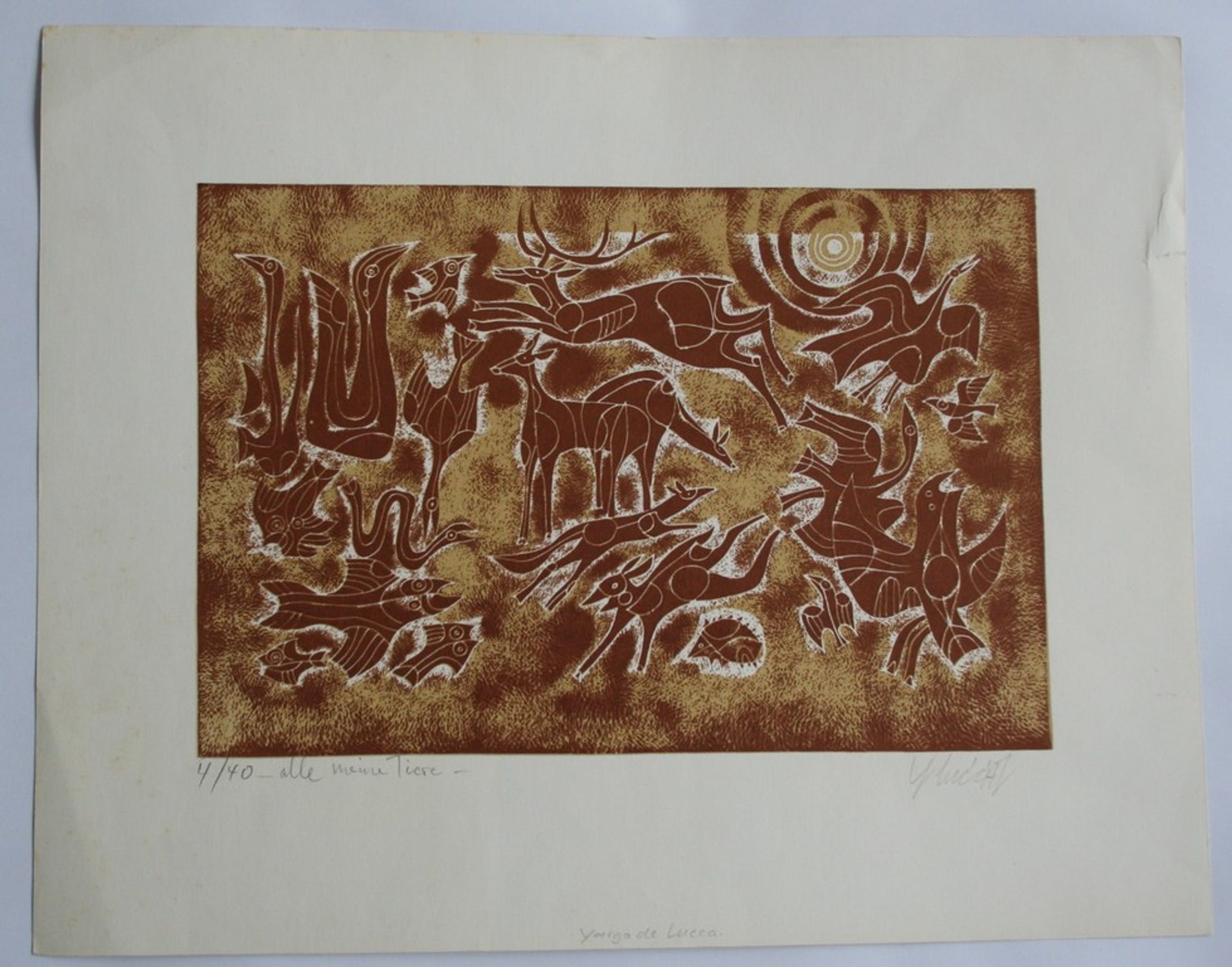 Zeefdruk van Yargo de Lucca (1925-2008). Gesigneerd aan de voorzijde. Genummerd 4 van 40.