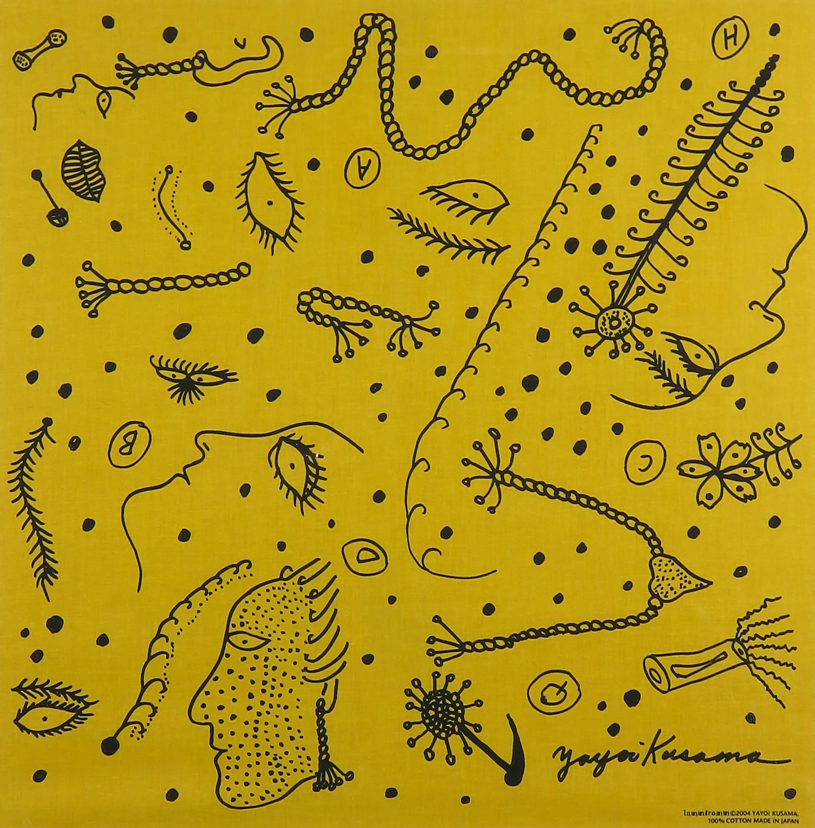 Ingelijste 100% katoenen bandana, ontworpen door de vermaarde Yayoi Kusama.