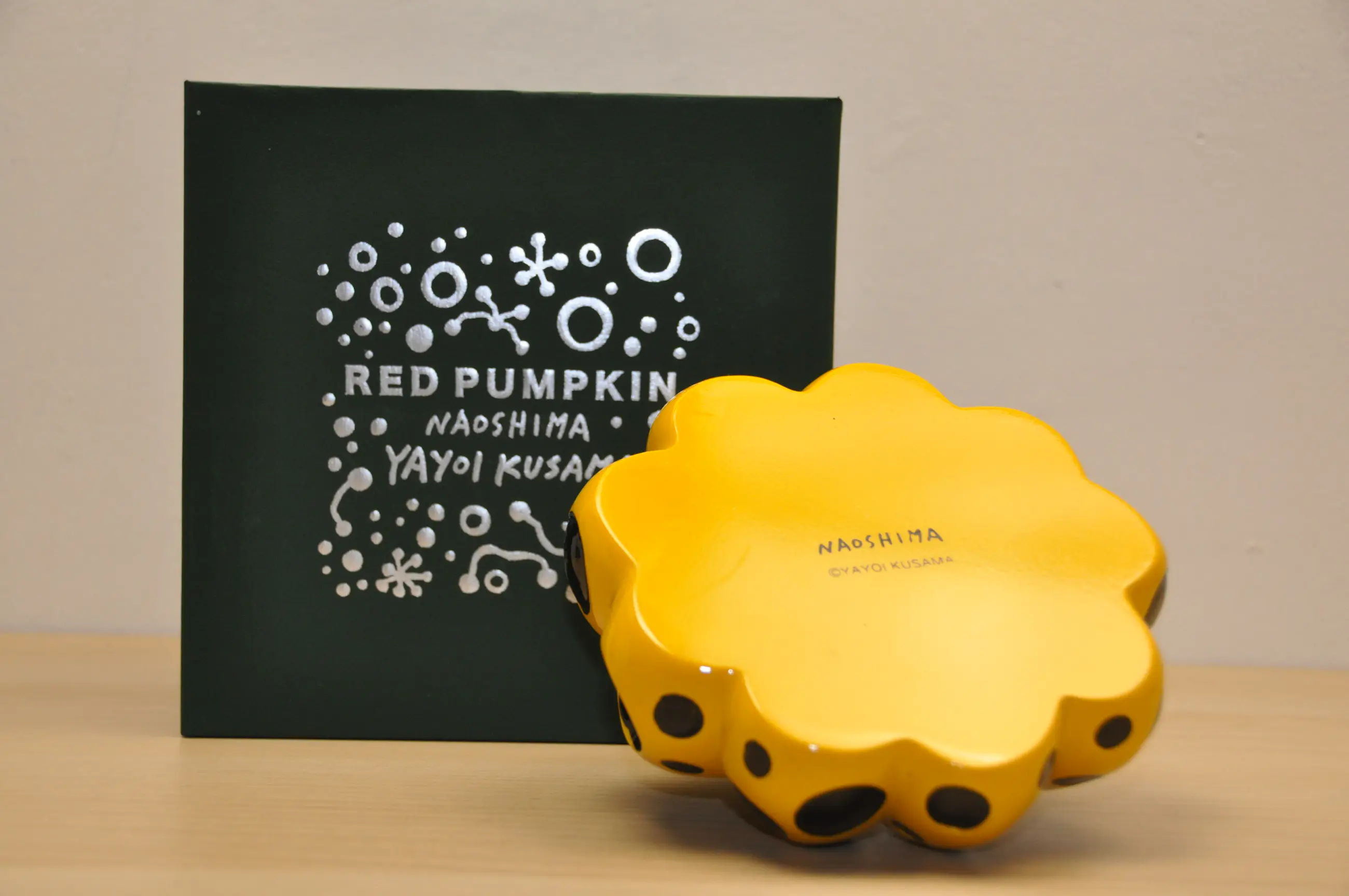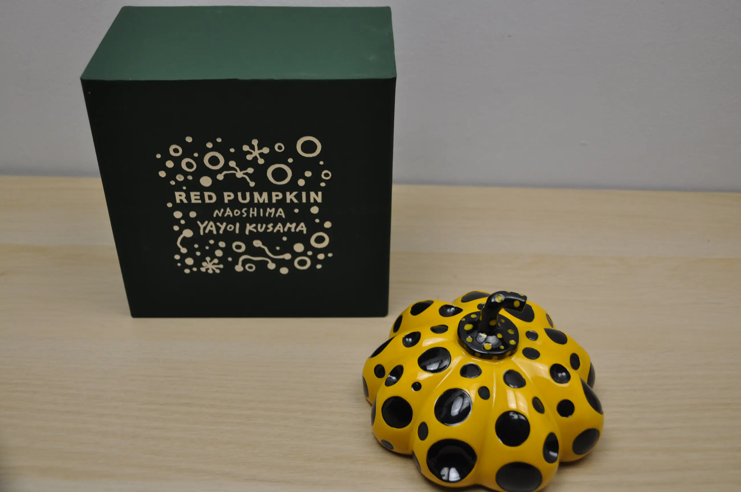 Een gietijzer sculptuur gebaseerd op de levensgroote sculptuur genaamd "red pumpkin" op Naoshima eiland door het hand van Yayoi Kusama. Deze kleine gietzijeren versie is enkel te verkrijgen op het Naoshima eiland. Dit is de kleine gele versie van die "red pumpkin"