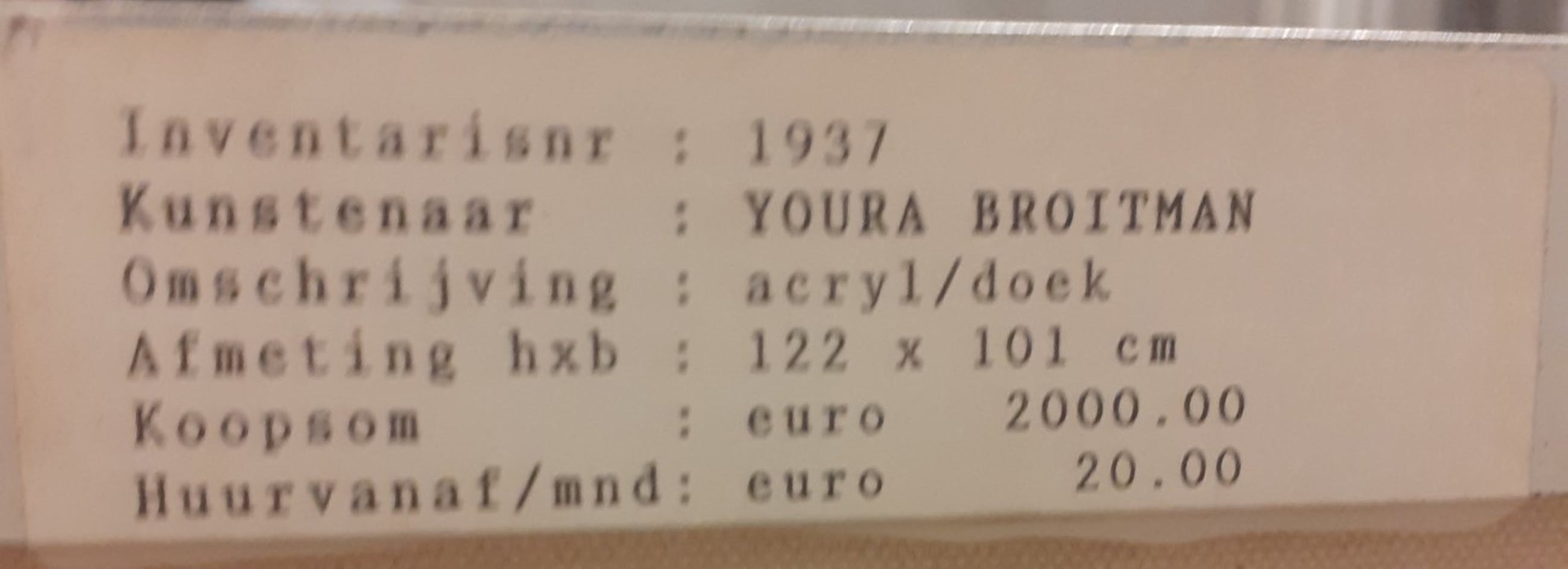 Het werk is af te halen op locatie. Als koper dient u zelf verpakkingsmateriaal mee te nemen. De locatie is: Dworp, België