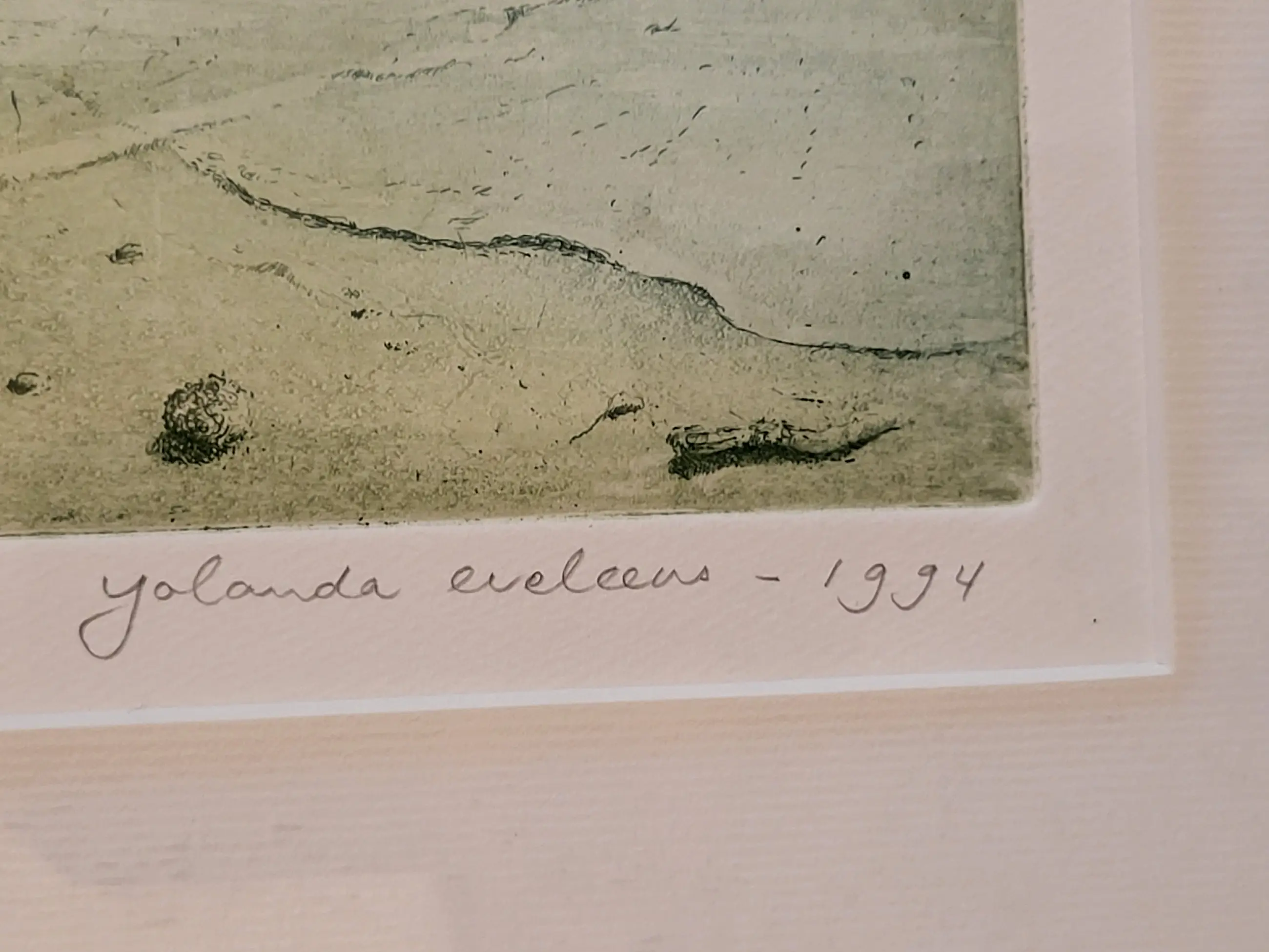 Yolanda Eveleens, in 1974 afgestudeerd aan de Gerrit Rietveld Academie, richting Vrije Grafiek, sinds die tijd werkzaam als beeldend kunstenaar, maakt fijnzinnige kleuretsen waarin de verbinding van natuur en cultuur in poëtische oerbeelden gevat wordt.