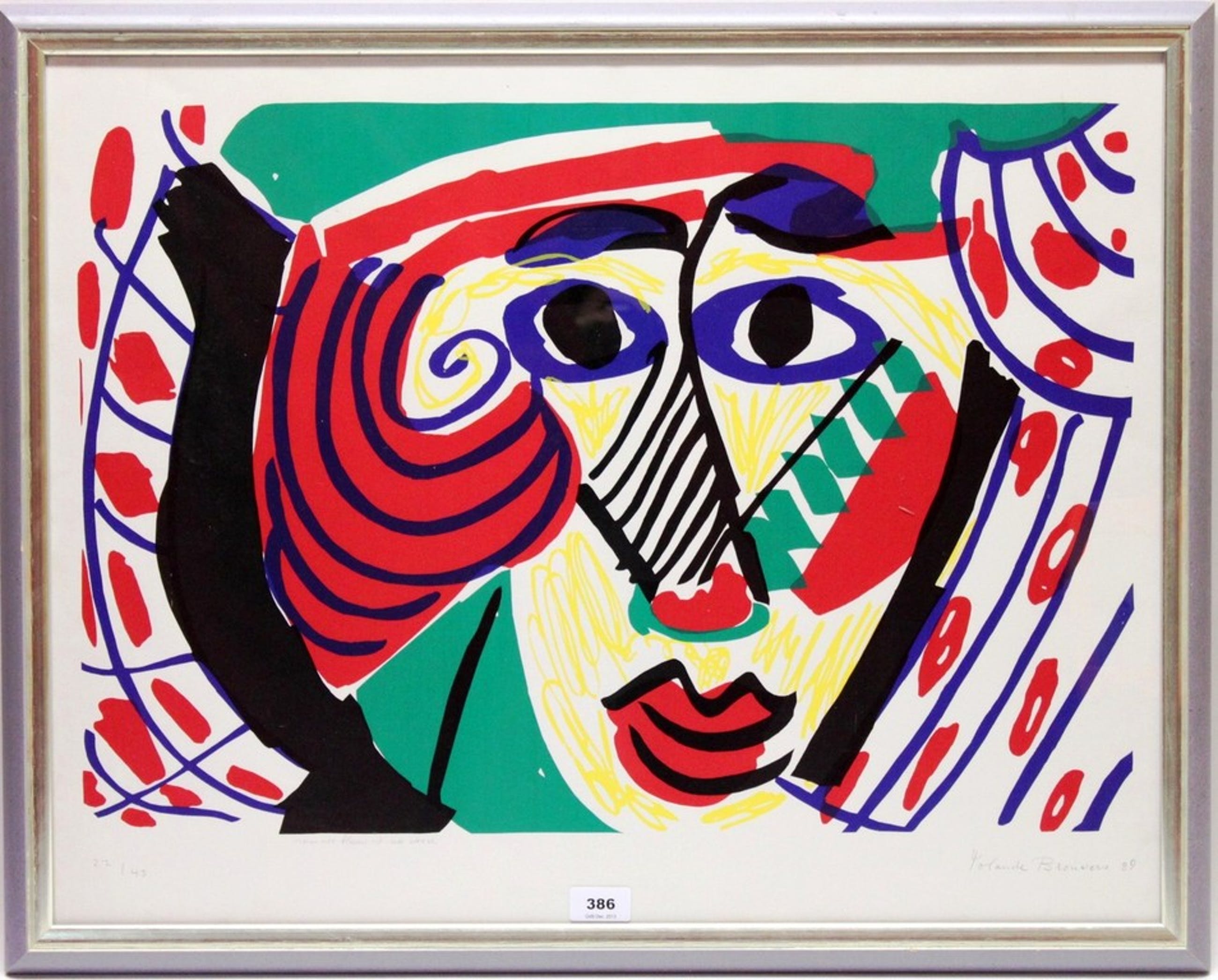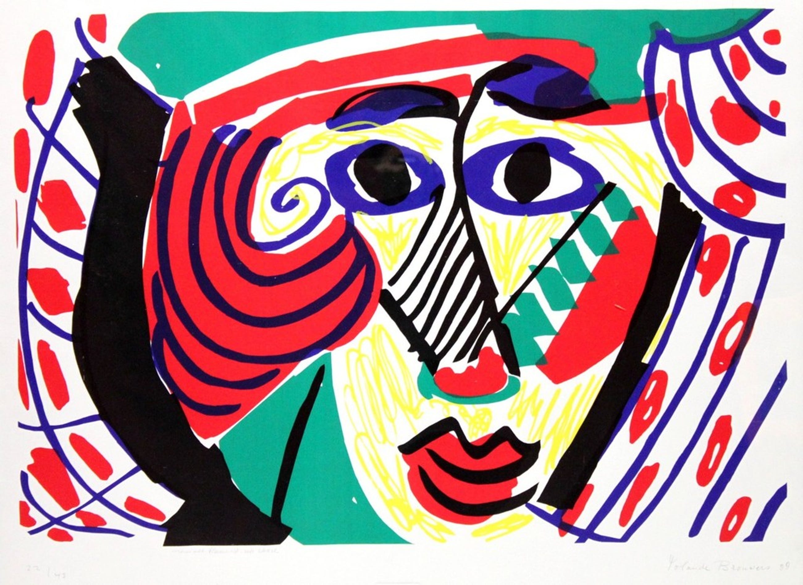 Dit is een prachtige, vrolijke en zeer kleurrijke zeefdruk van deze in Nederland en Internationaal zeer gewaardeeerde kunstenares.