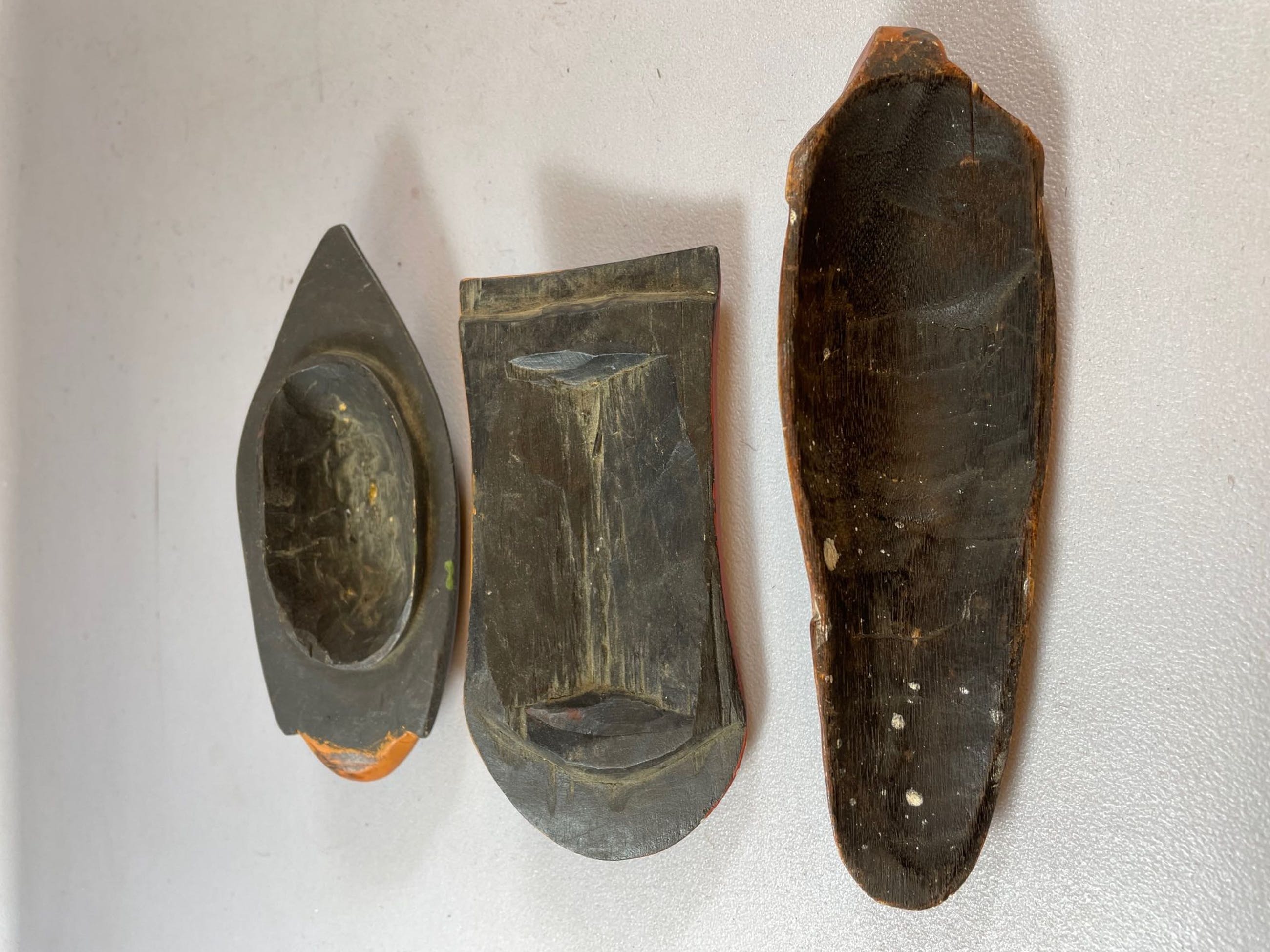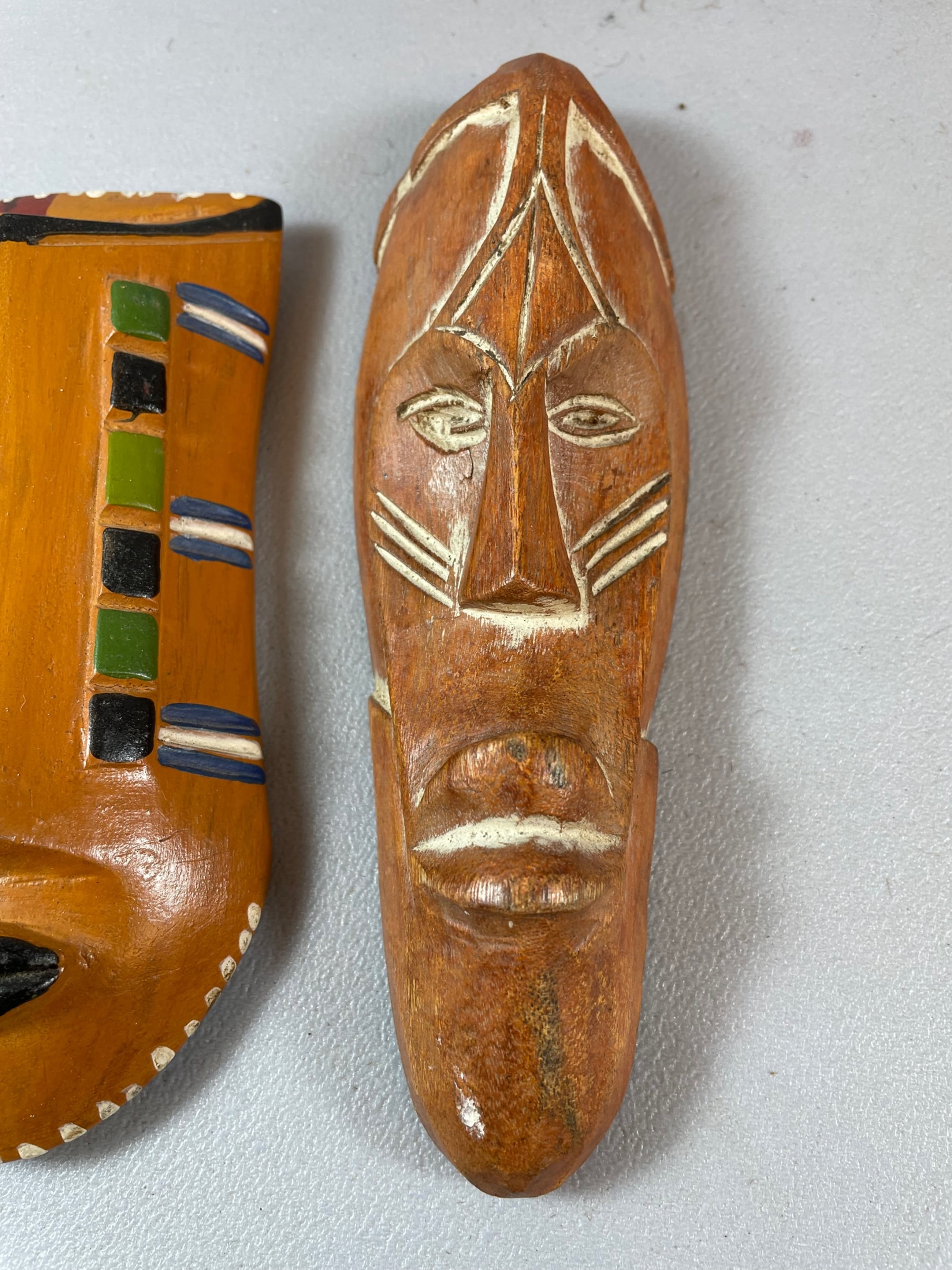 2 African Youruba and 1 fang passport masks.Hand carved from a single piece of wood. Size: 16 - 14 and 17 cm high.