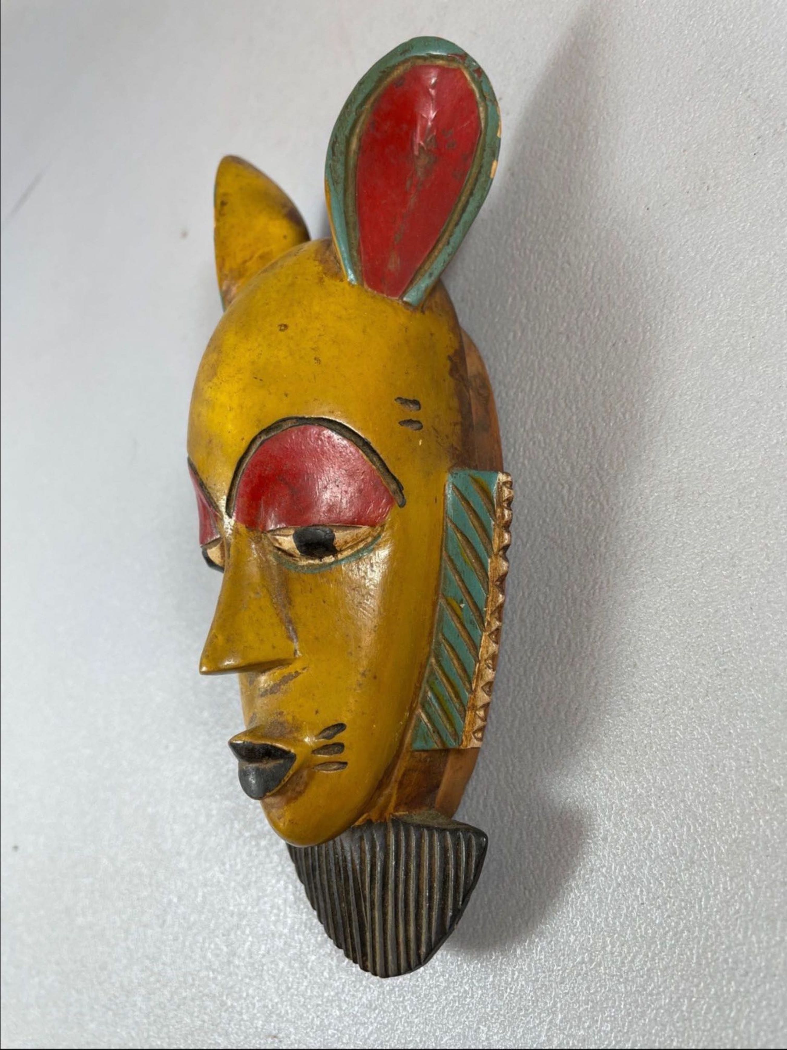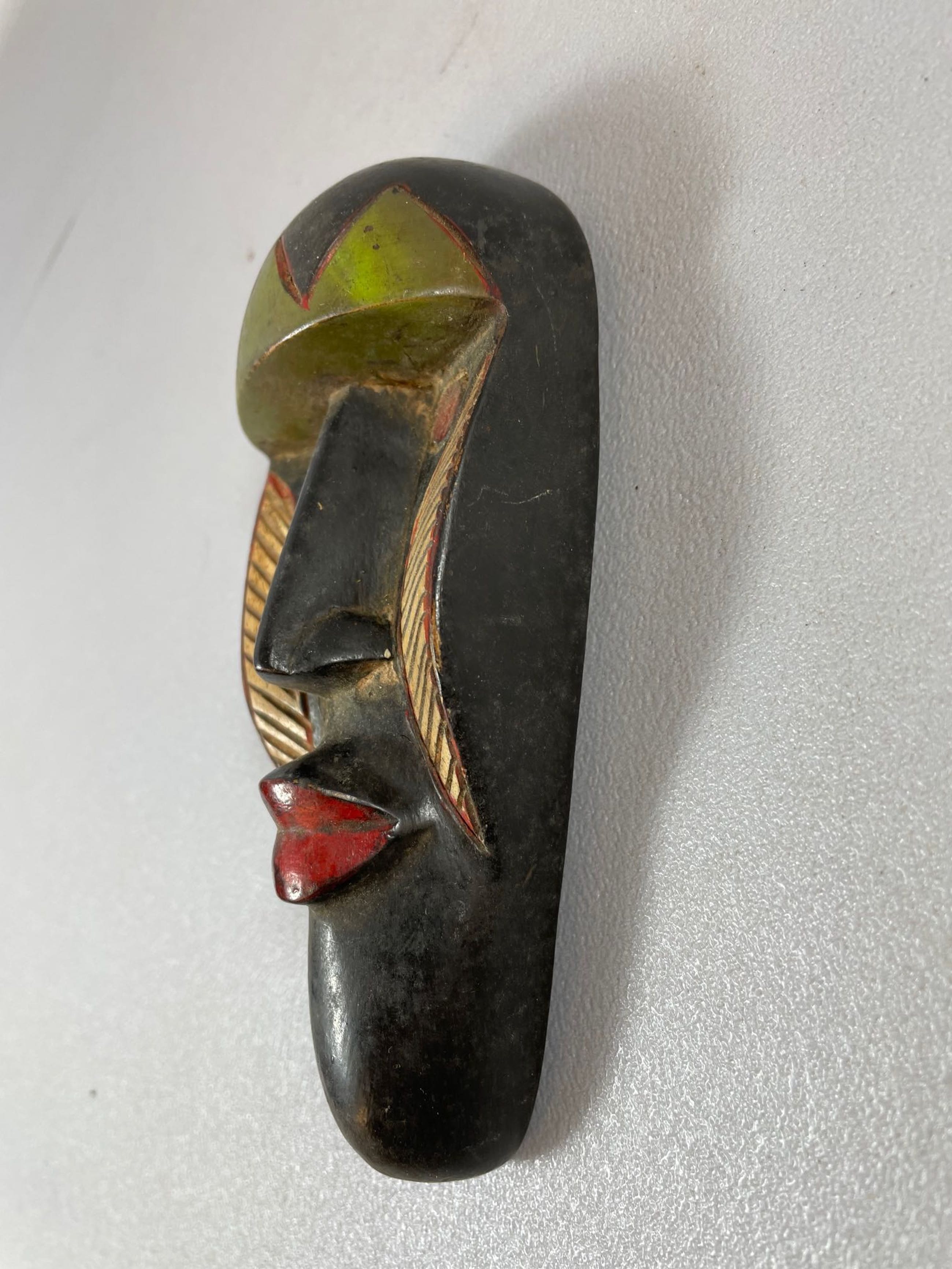 2 African Youruba passport mask.Hand carved from a single piece of wood. Size: 17 cm and 15 cm high.