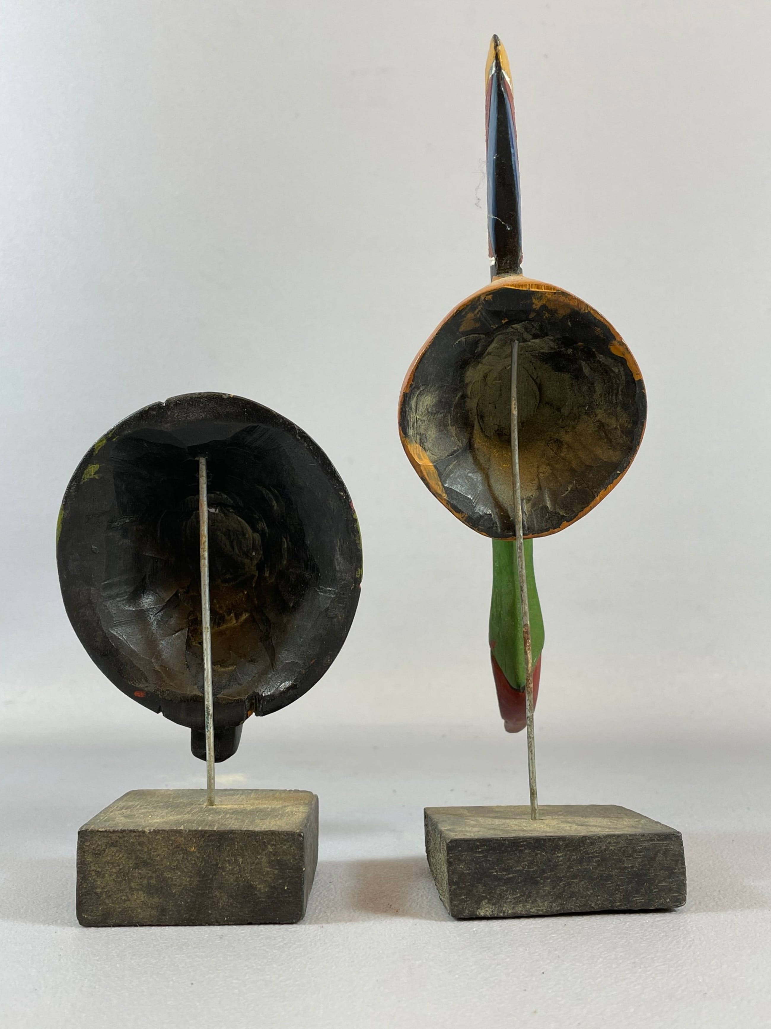 2 African Youruba passport mask including the 2 standsHand carved from a single piece of wood. Size: 19 cm and 10 cm high.