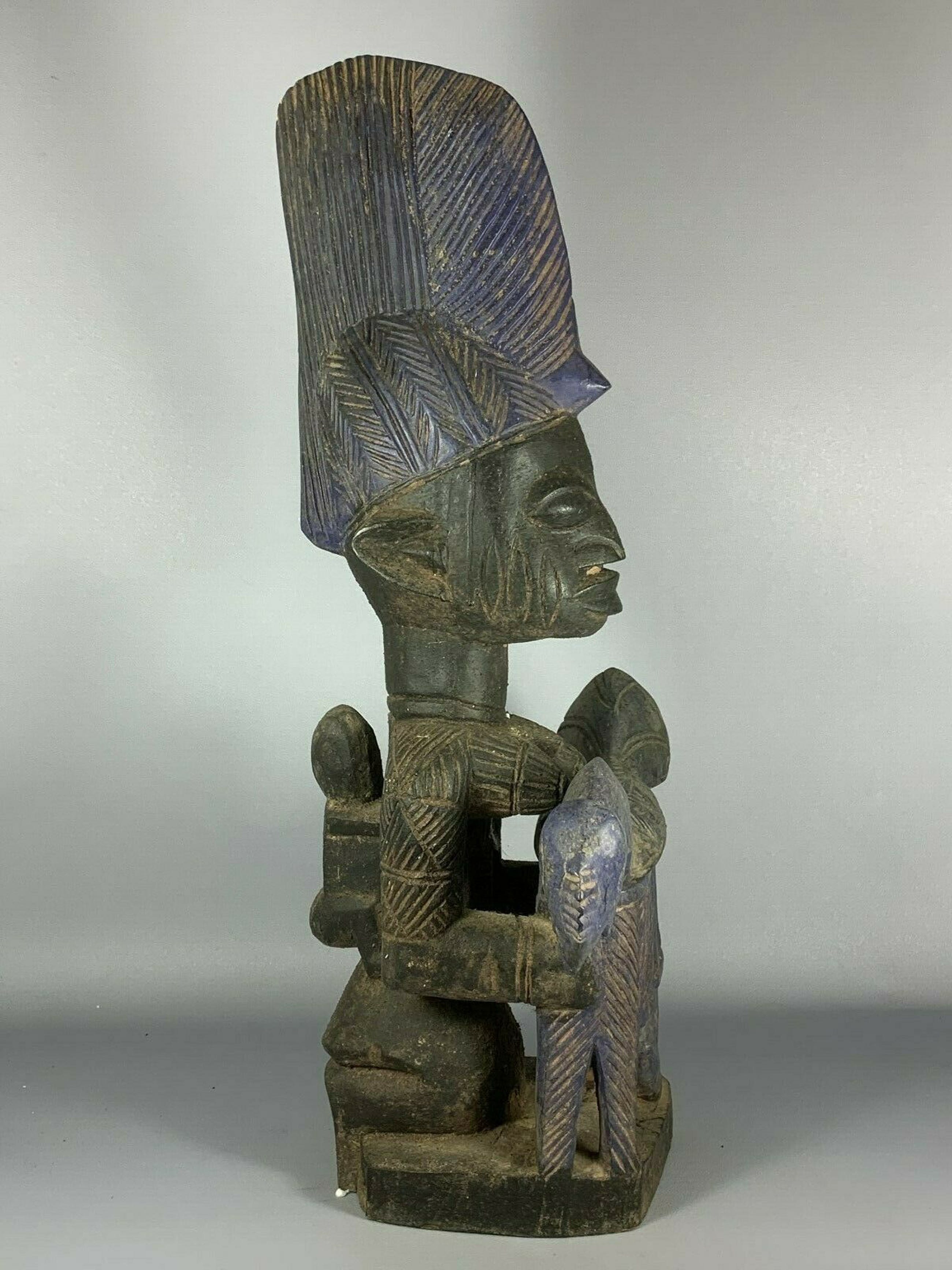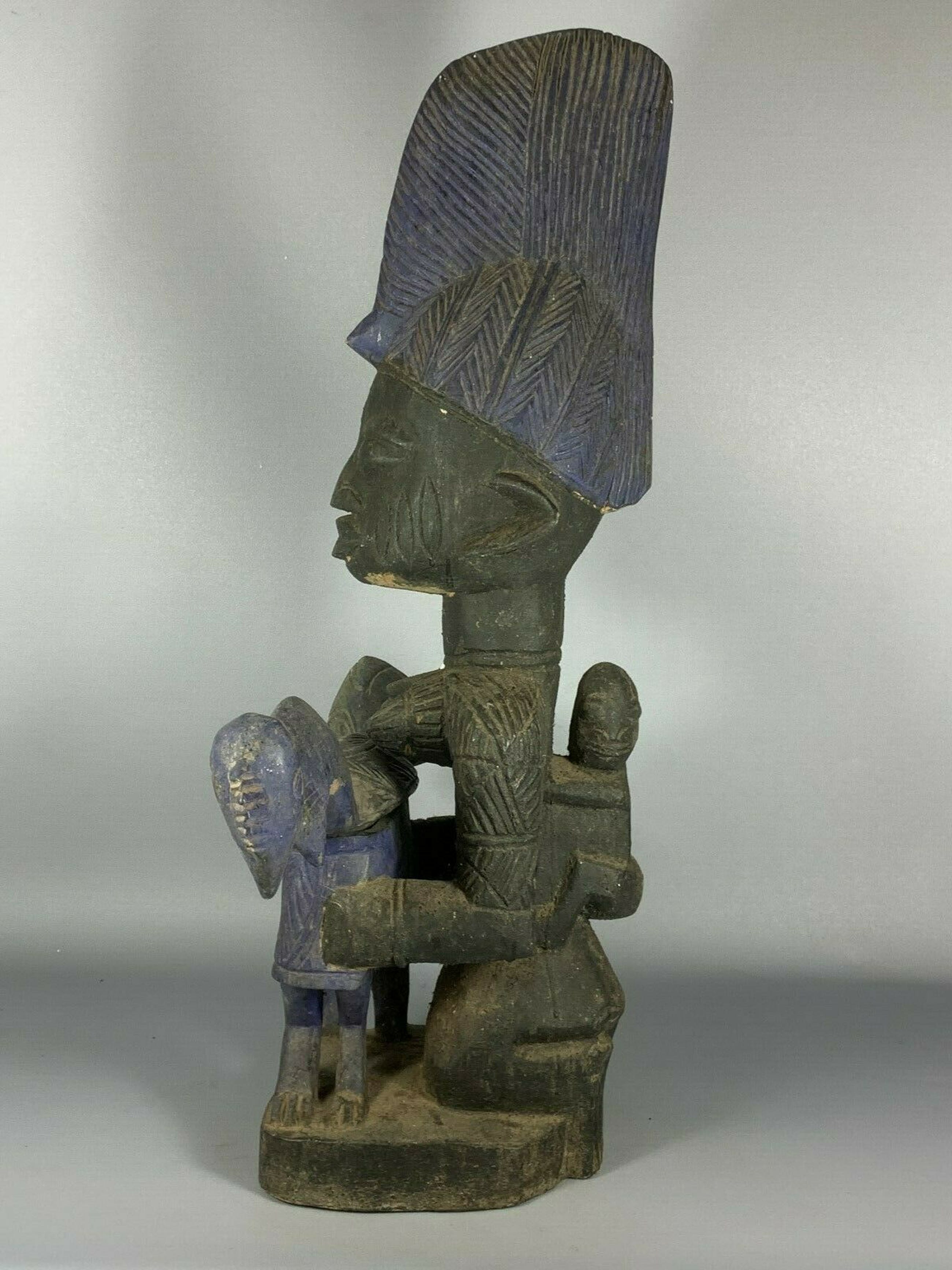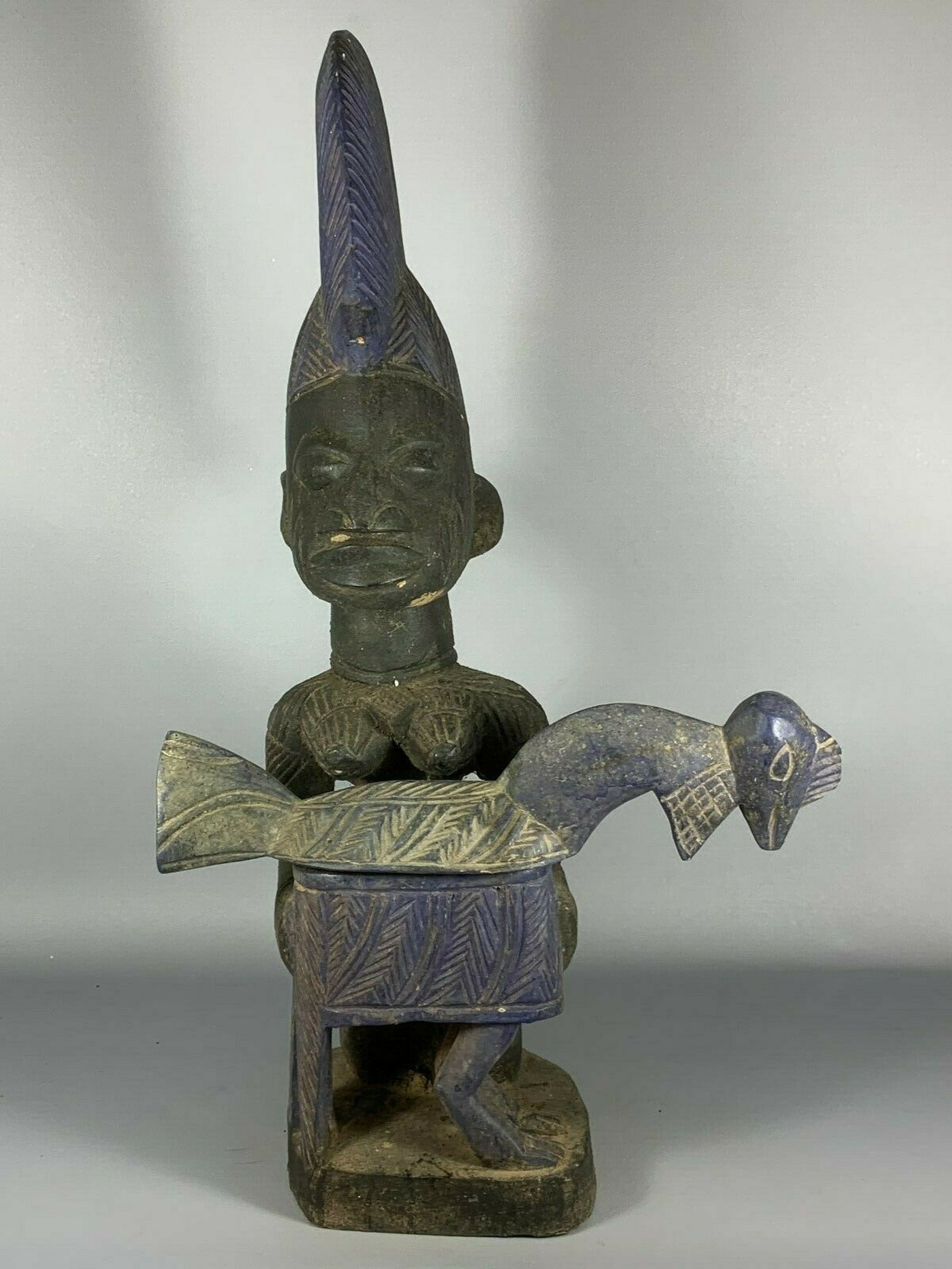 Very expressive african medicin pot from the Yoruba, Nigeria. Hand carved from a single piece of wood.Size: 62 cm high.