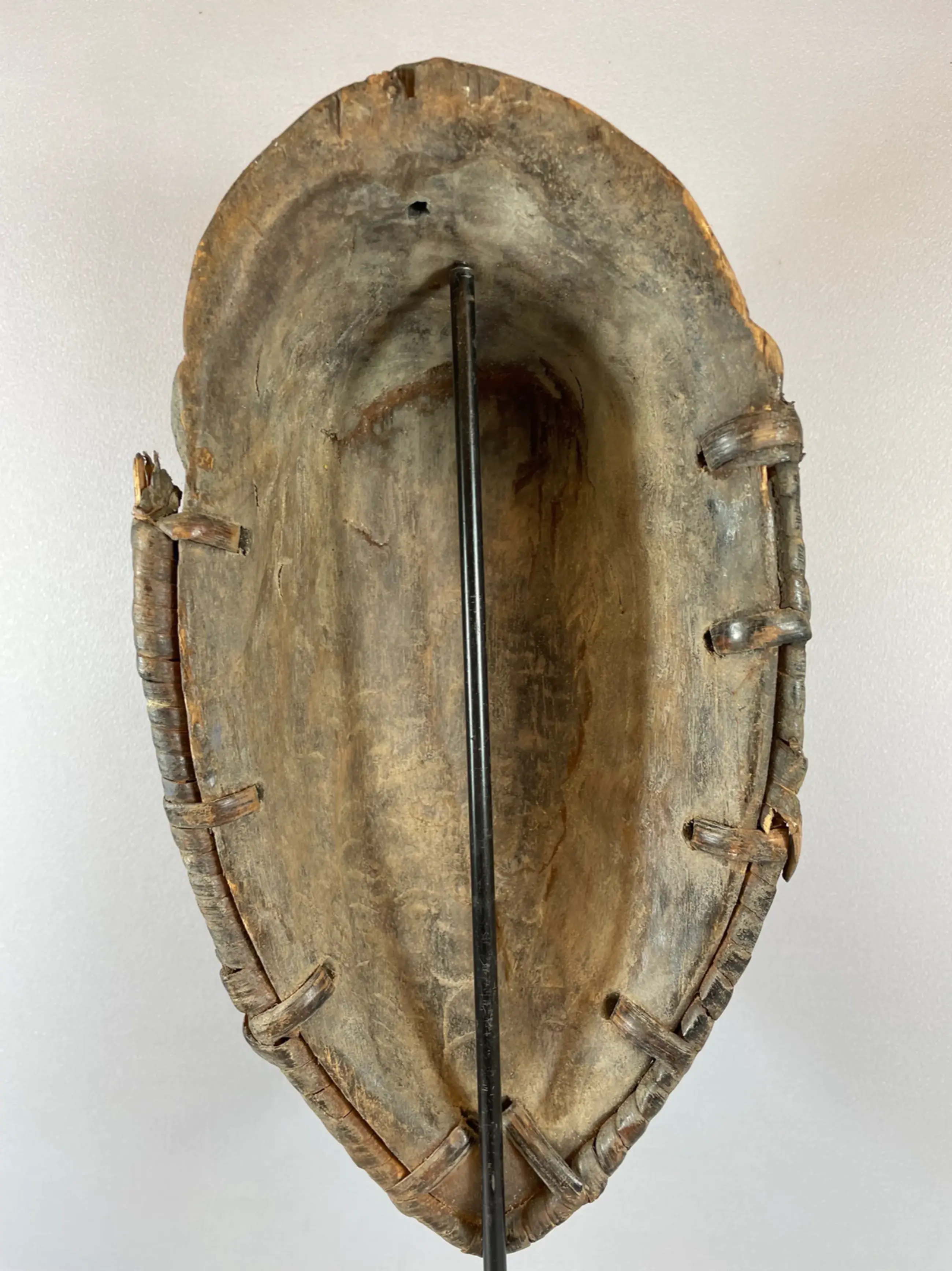 This type of mask is used at the Yoruba Epa festival where the fertility of the soil and the prosperity of the men are conjured.