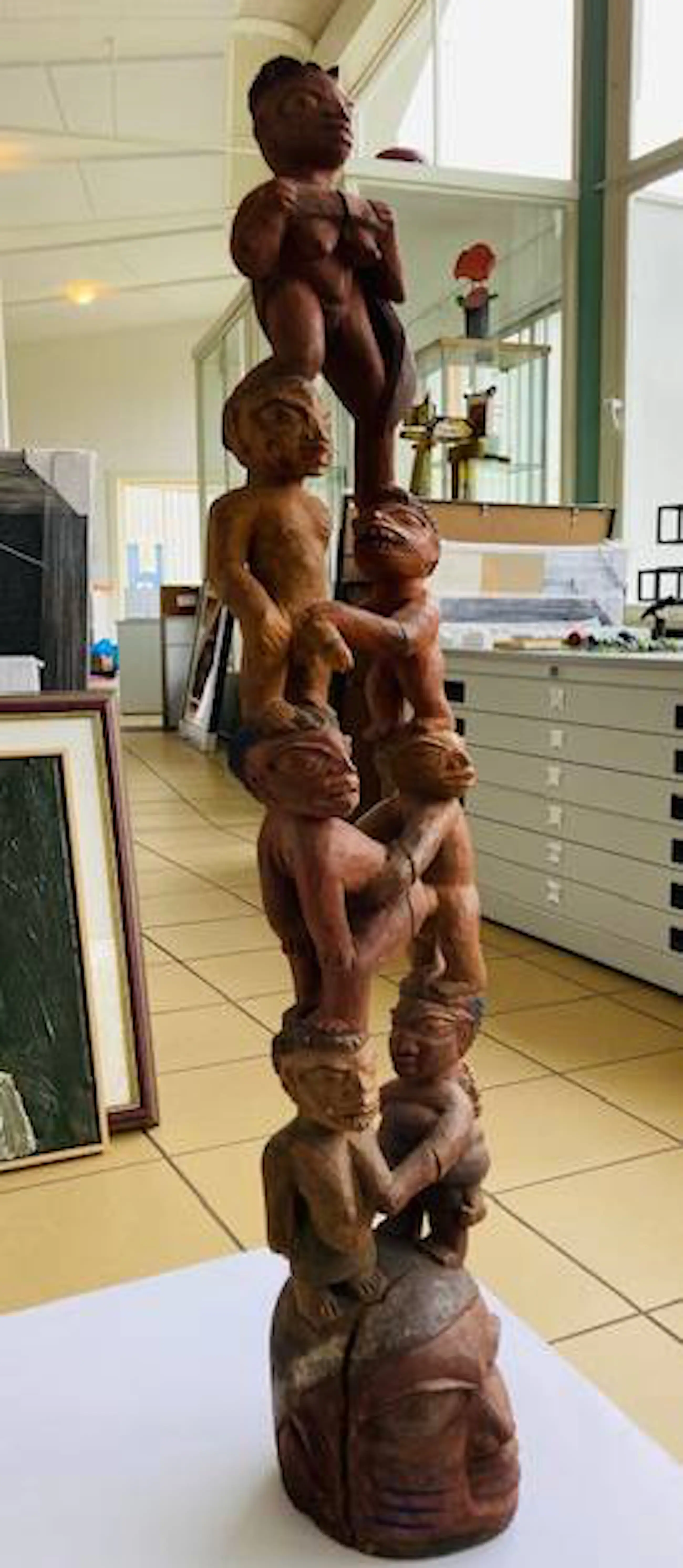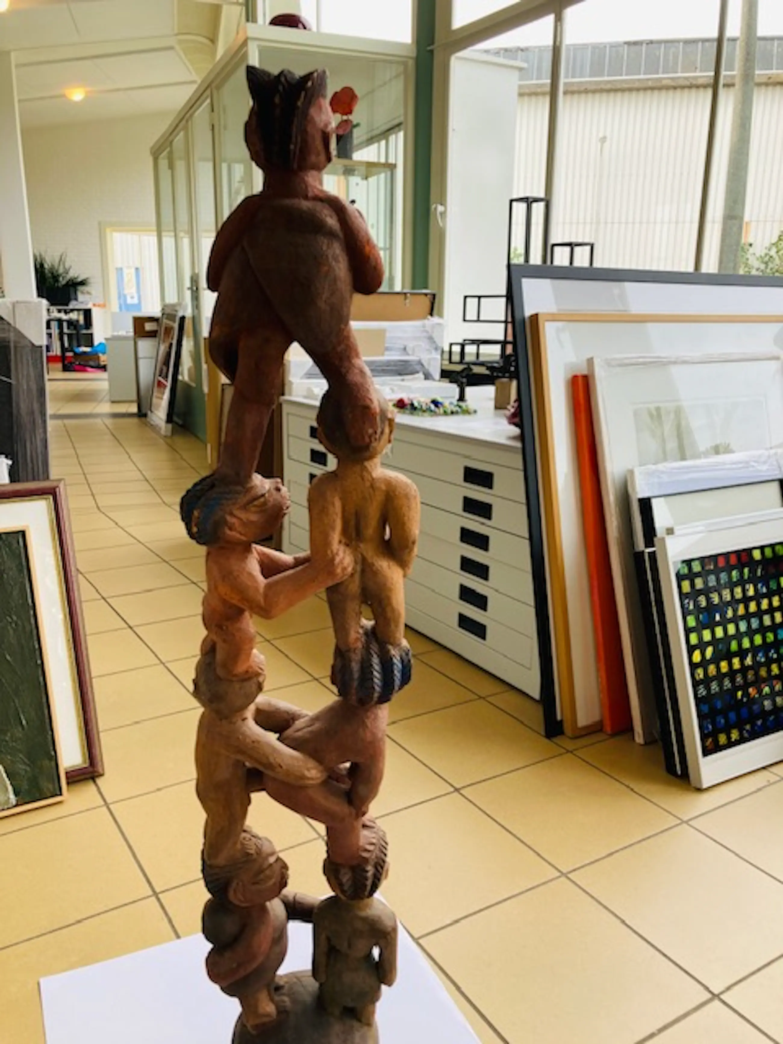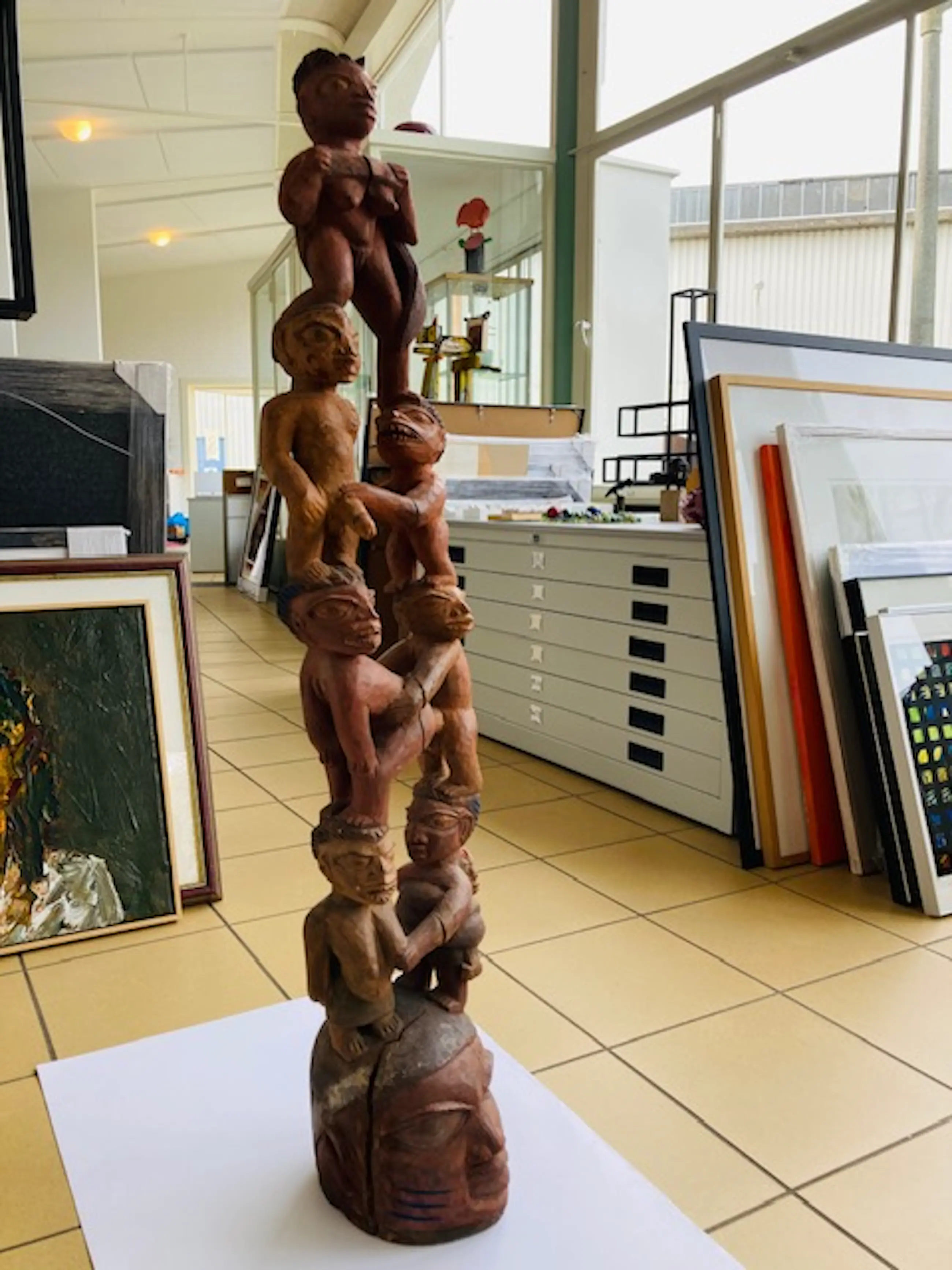 Leuke houten beeld van de Yoruba uit Nigeria. Voor een mooie instapprijs staat dit vruchtbaarheidsymbool bij u in de woonkamer! U kunt het werk vooraf komen bekijken in de schatkamer van galerie Rotor in Gorinchem of na aankoop ophalen. Het werk kan ook verzonden worden via de koerier. Of tijdelijk gratis worden opgeslagen tot nadere orde.