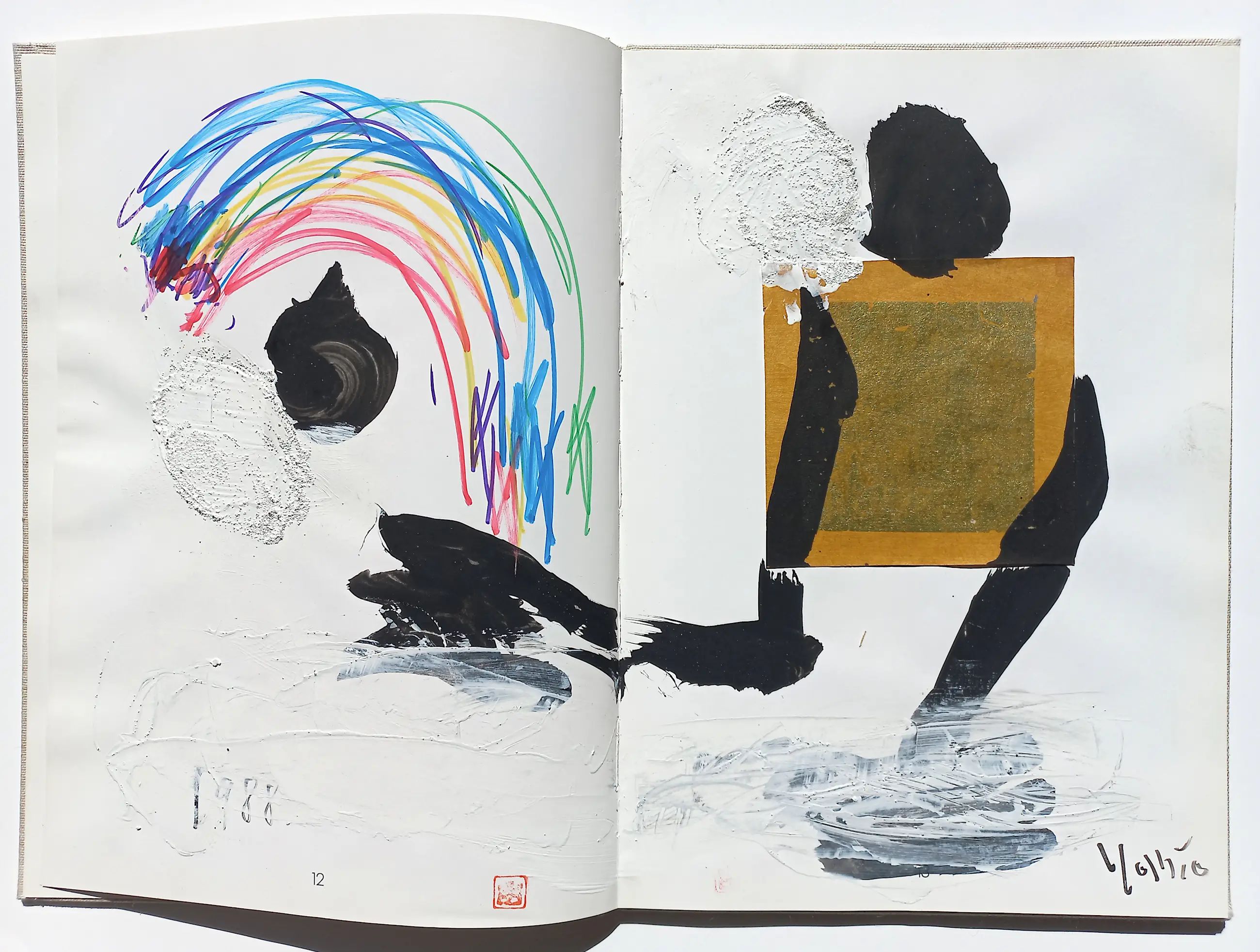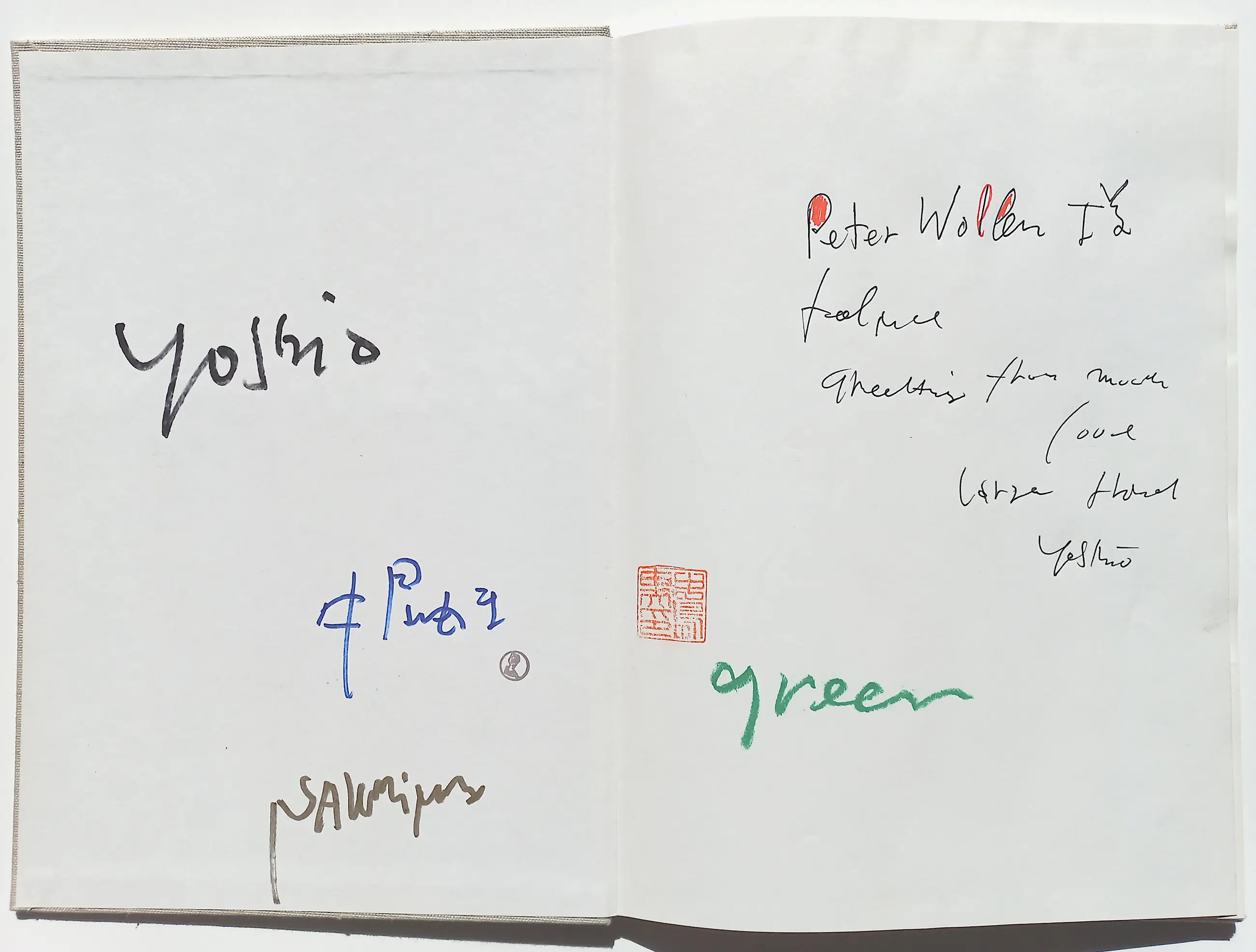 Het boek is dubbel gesigneerd, met opdracht aan de Engelse filmmaker Peter Wollen, op het schutblad, en alle drie gemengde techniek werken (2 enkelbladig; stift/inkt/krijt/acrylverf, 1 dubbelbladig; stift/acrylverf/collage) zijn afzonderlijk gesigneerd. Alles in zeer goede conditie.