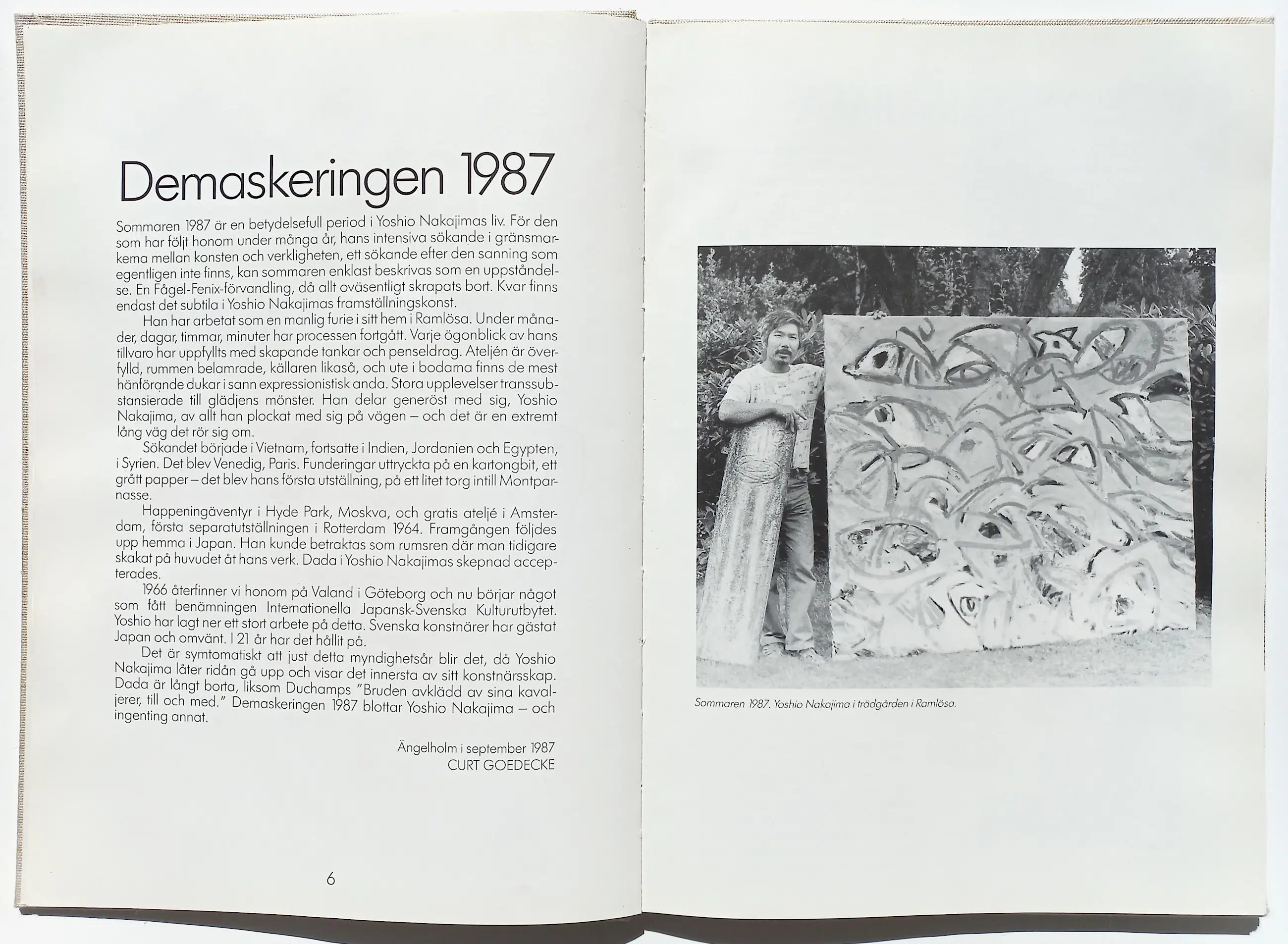 Complete, zweedse uitgave met origineel werk van de Japanse kunstenaar Yoshio Nakajima, die al decennialang in Zweden woont en werkt. Voordat hij naar Zweden vertrok woonde Nakajima in Nederland en Belgie (lees zijn bio vooral van de late jaren 60, hij kende alle artiesten van naam in die tijd). Nakajima was verbonden aan de Fluxus beweging en heeft o.a. meegewerkt aan Documenta 5 & 6 in Kassel, Duitsland.
