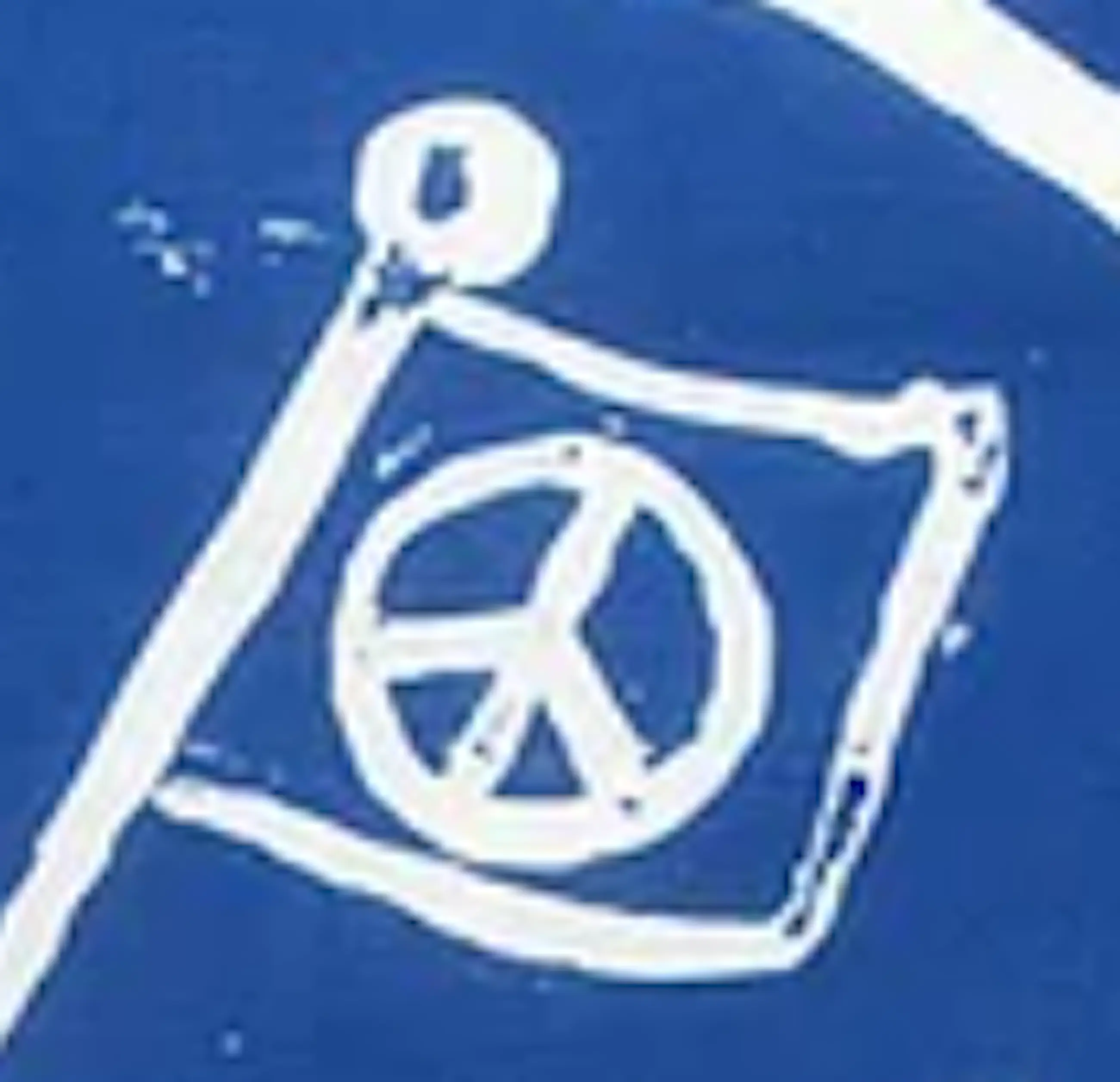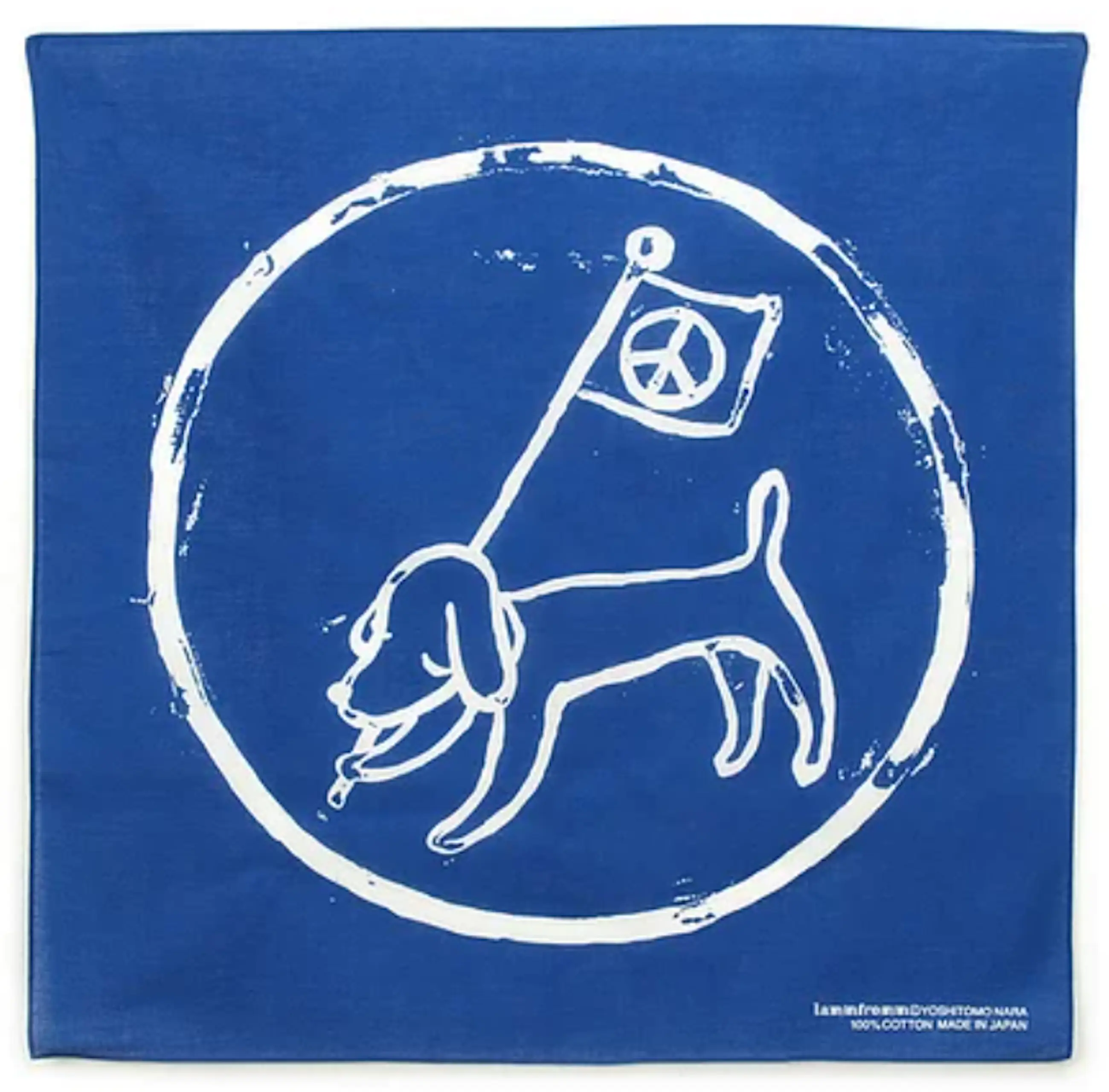 Dit originele doek (100% katoen) is bedrukt met Yoshitomo Nara's favoriete motief, de pup met vredesvlag. Gemaakt in Japan.