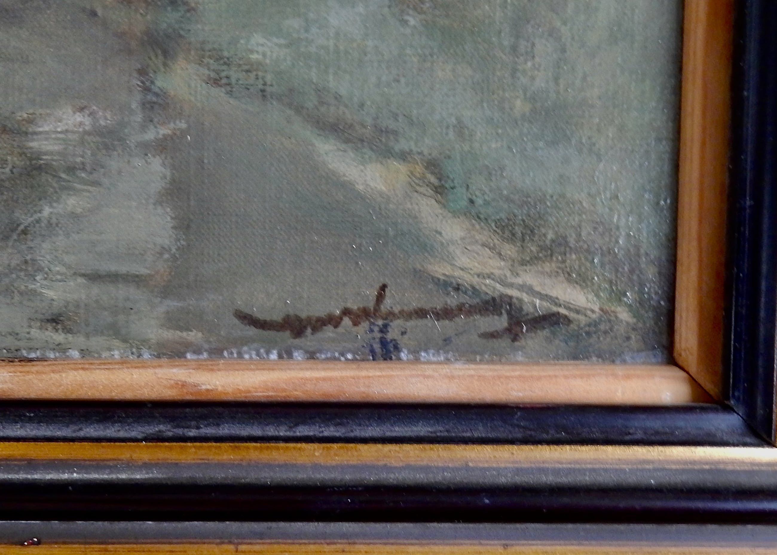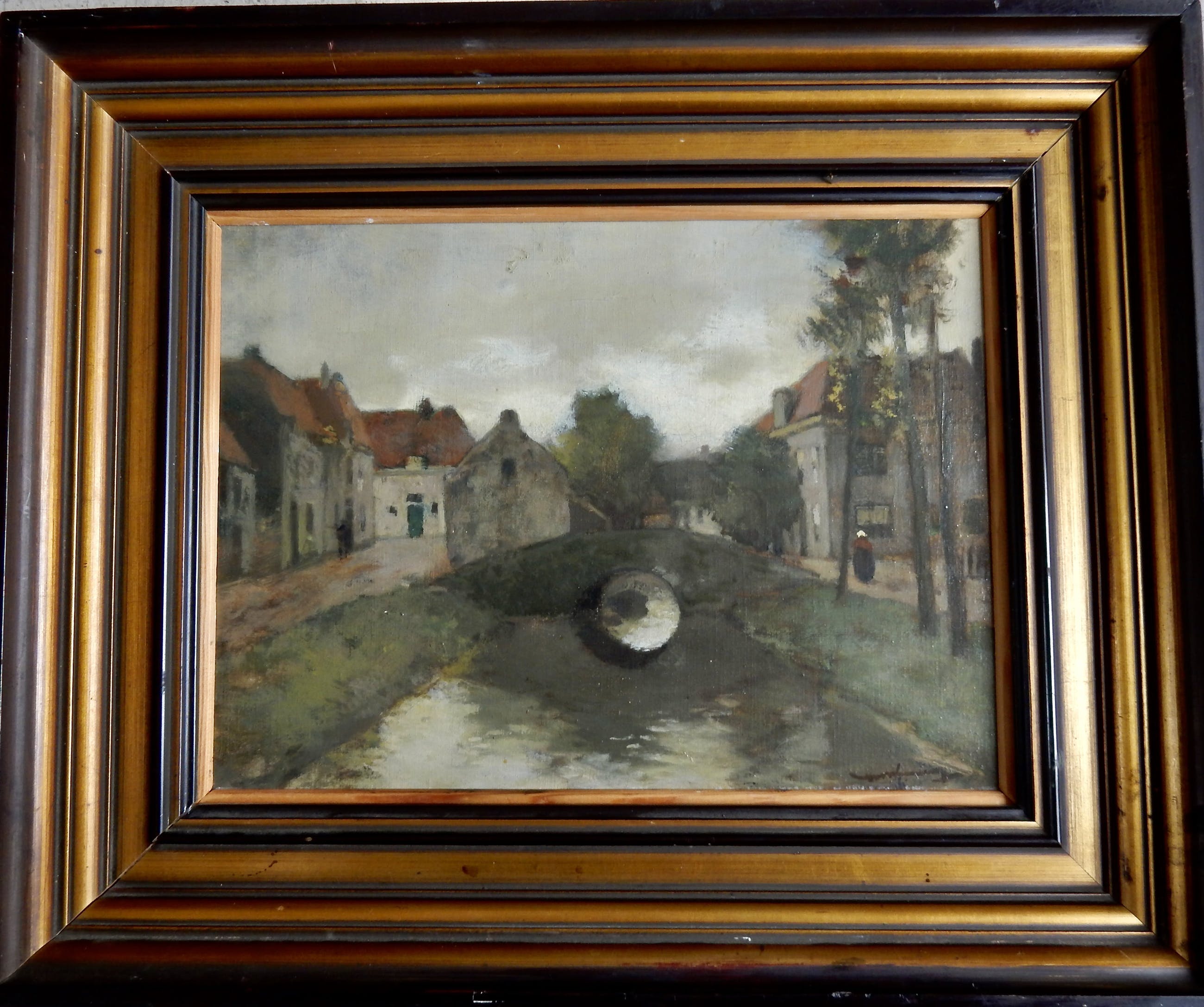 | Goed gezien leeftijd schilderij, lijst redelijk, kleine restauratie doek | |