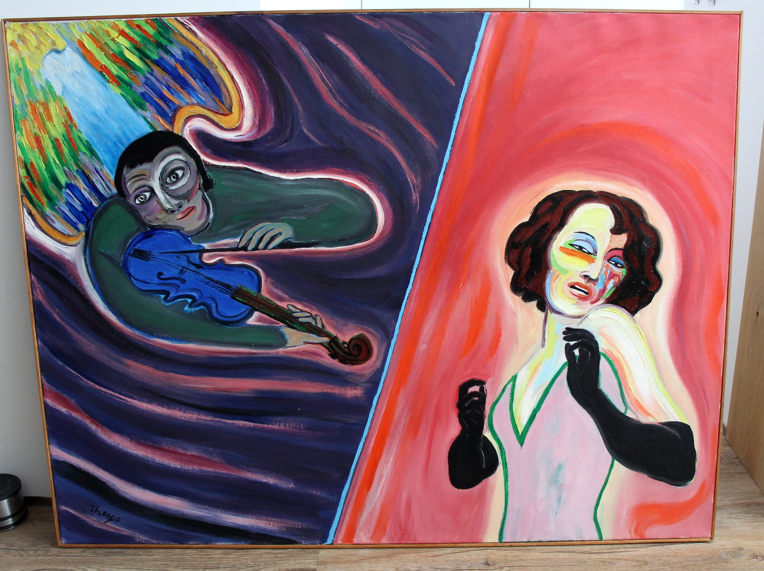 Olieverf op doek van Yvan Theys. Jaar: 1974 - 3. Afmetingen werk: H90 x b 117 cm. Het werk is zowel op de achterzijde als links onderin gesigneerd door de kunstenaar. De authenticiteit van het aangeboden werk wordt volledig gegarandeerd. Een certificaat van echtheid kan, op aanvraag, worden gemaild.