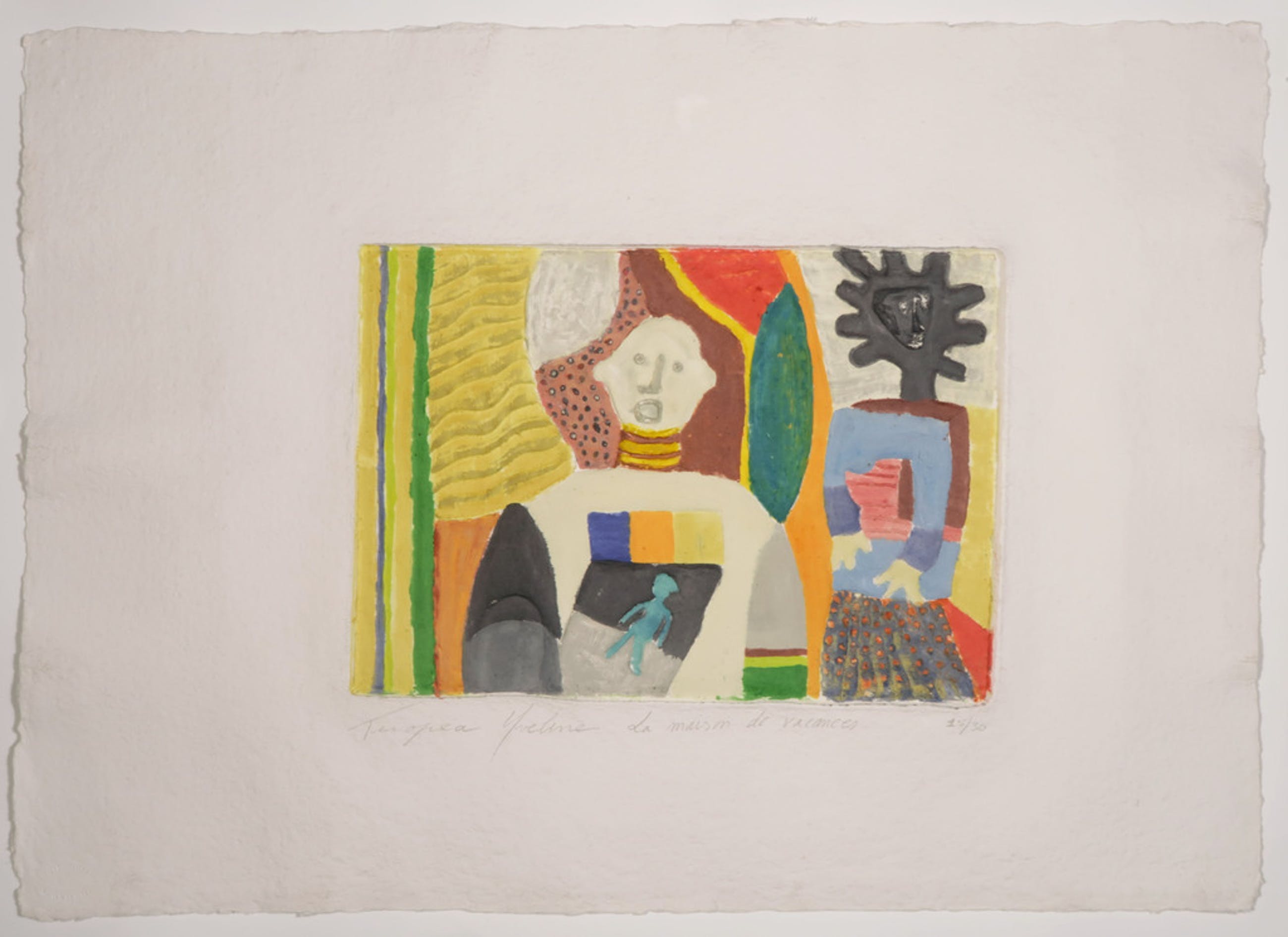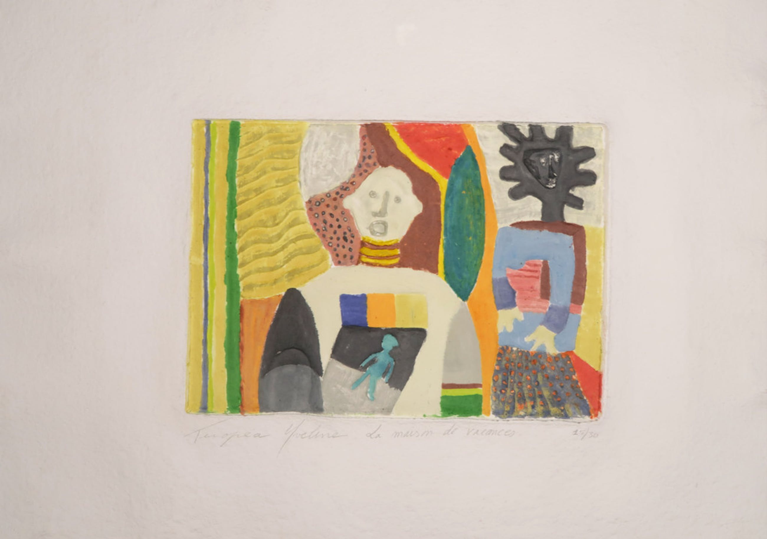 Materiaal: Handbeschilderde Aquagravure op geschept papier, op onderblad geplakt
