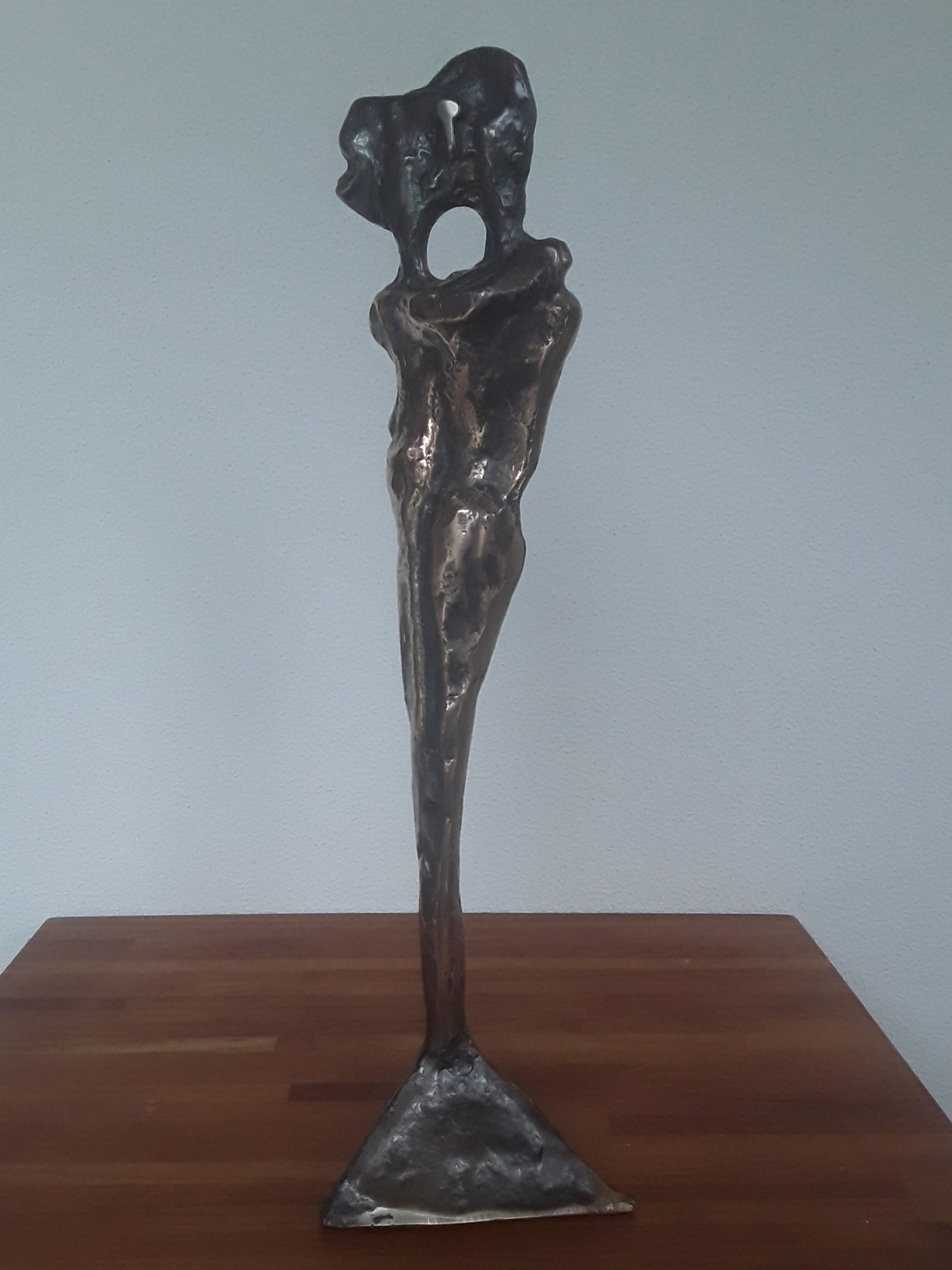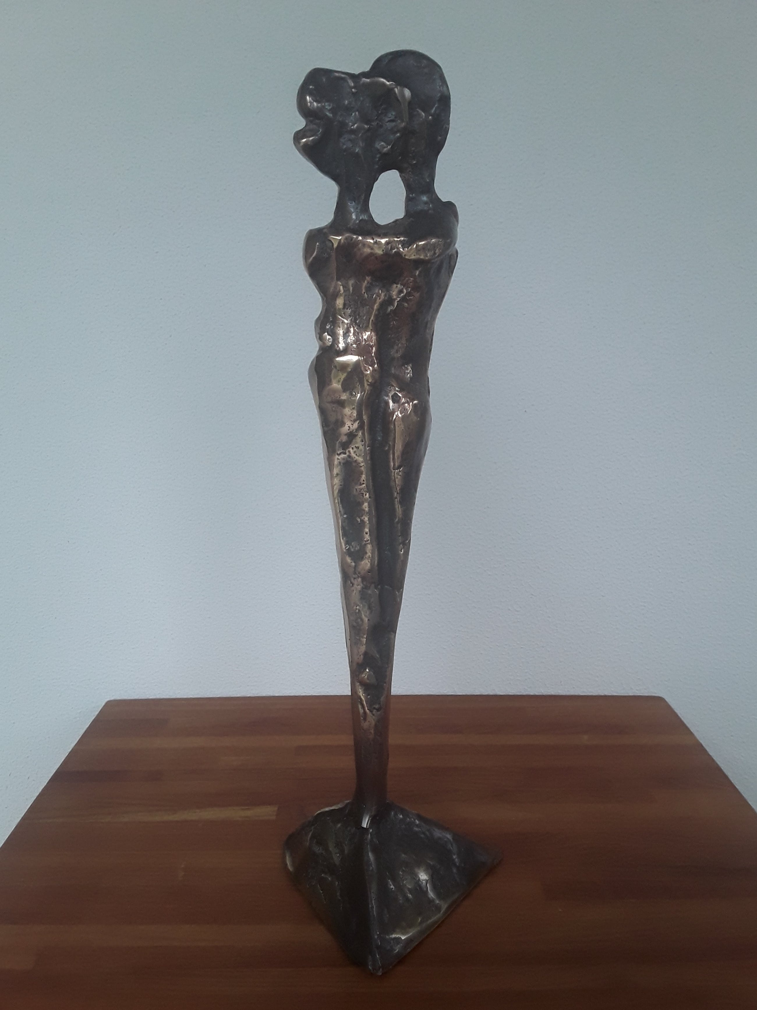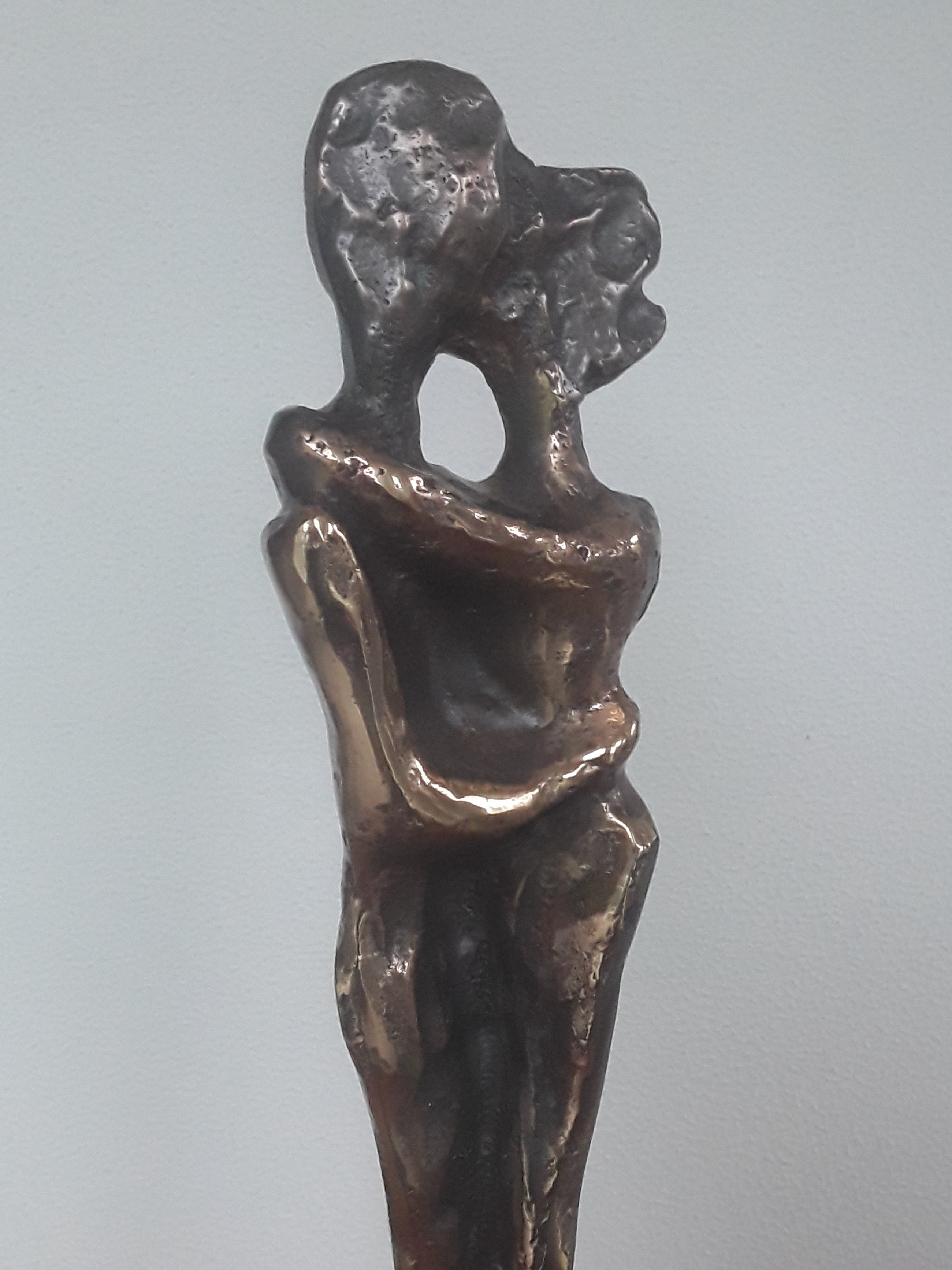 Fraai vormgegeven beeld van een verliefd stel. Het is gemaakt door de Franse kunstenaar Yves Lohe, geboren in 1947. Volledig in brons gegoten item.