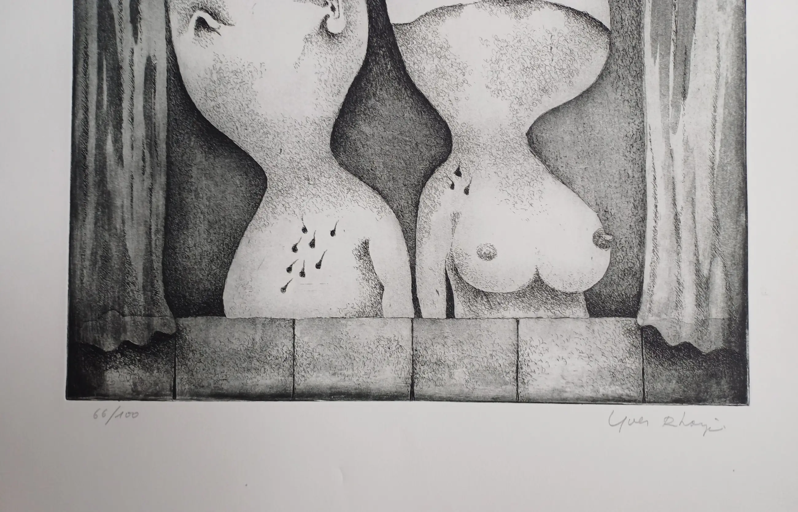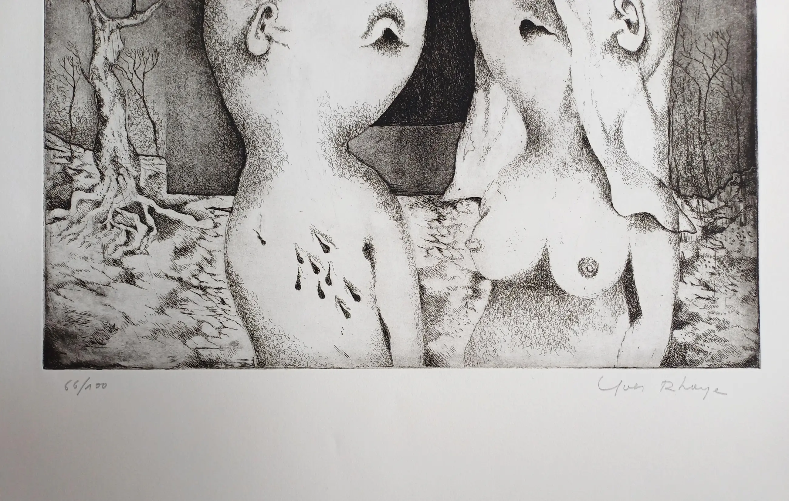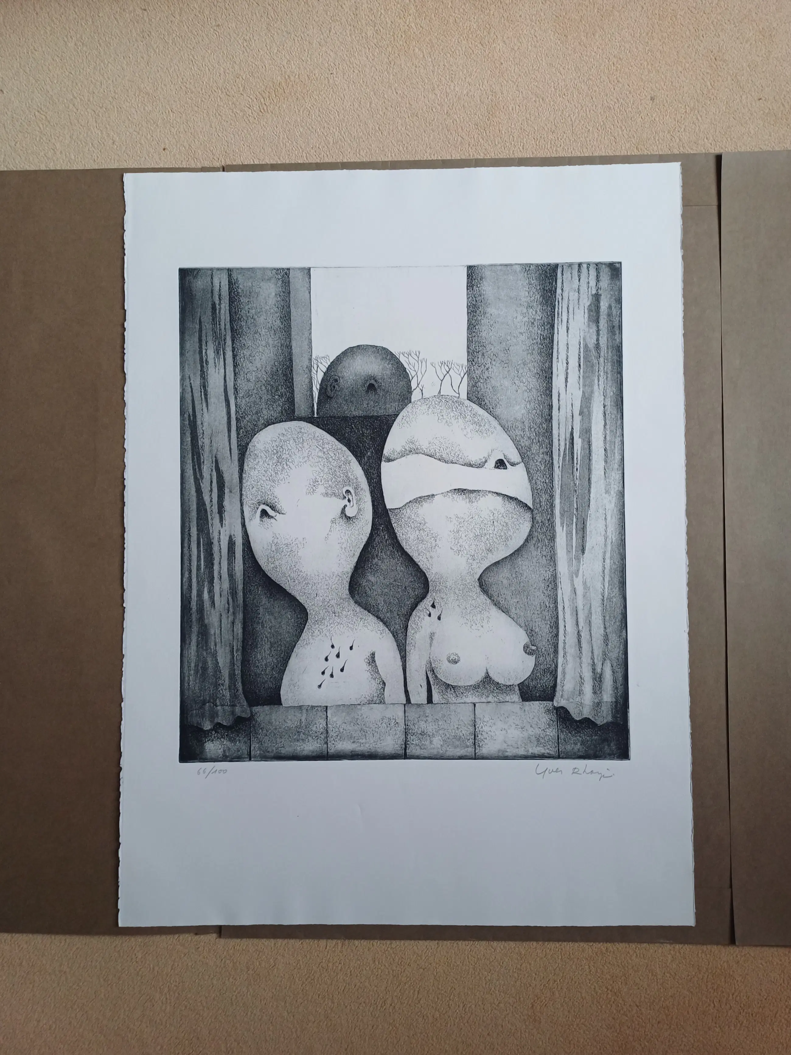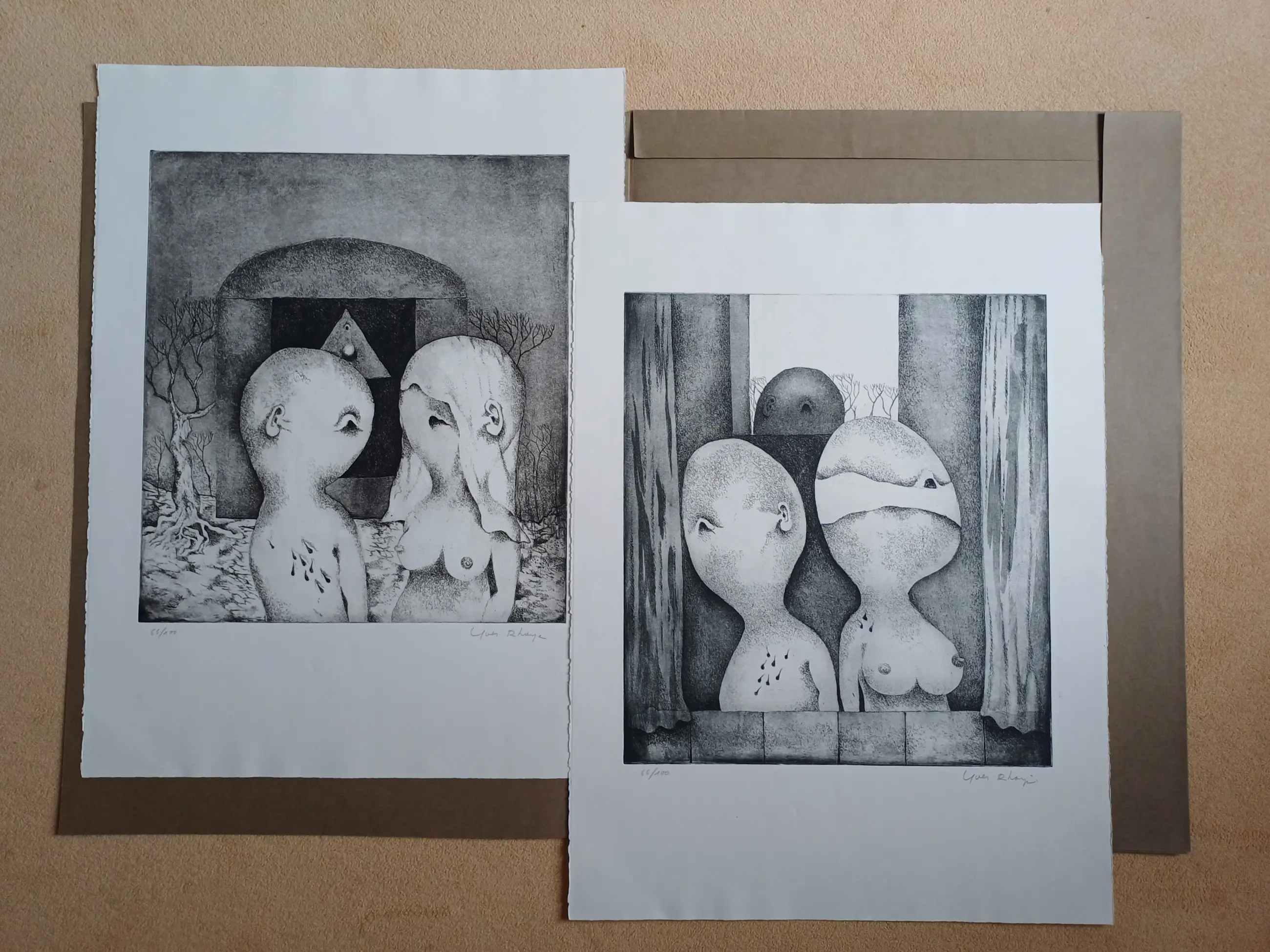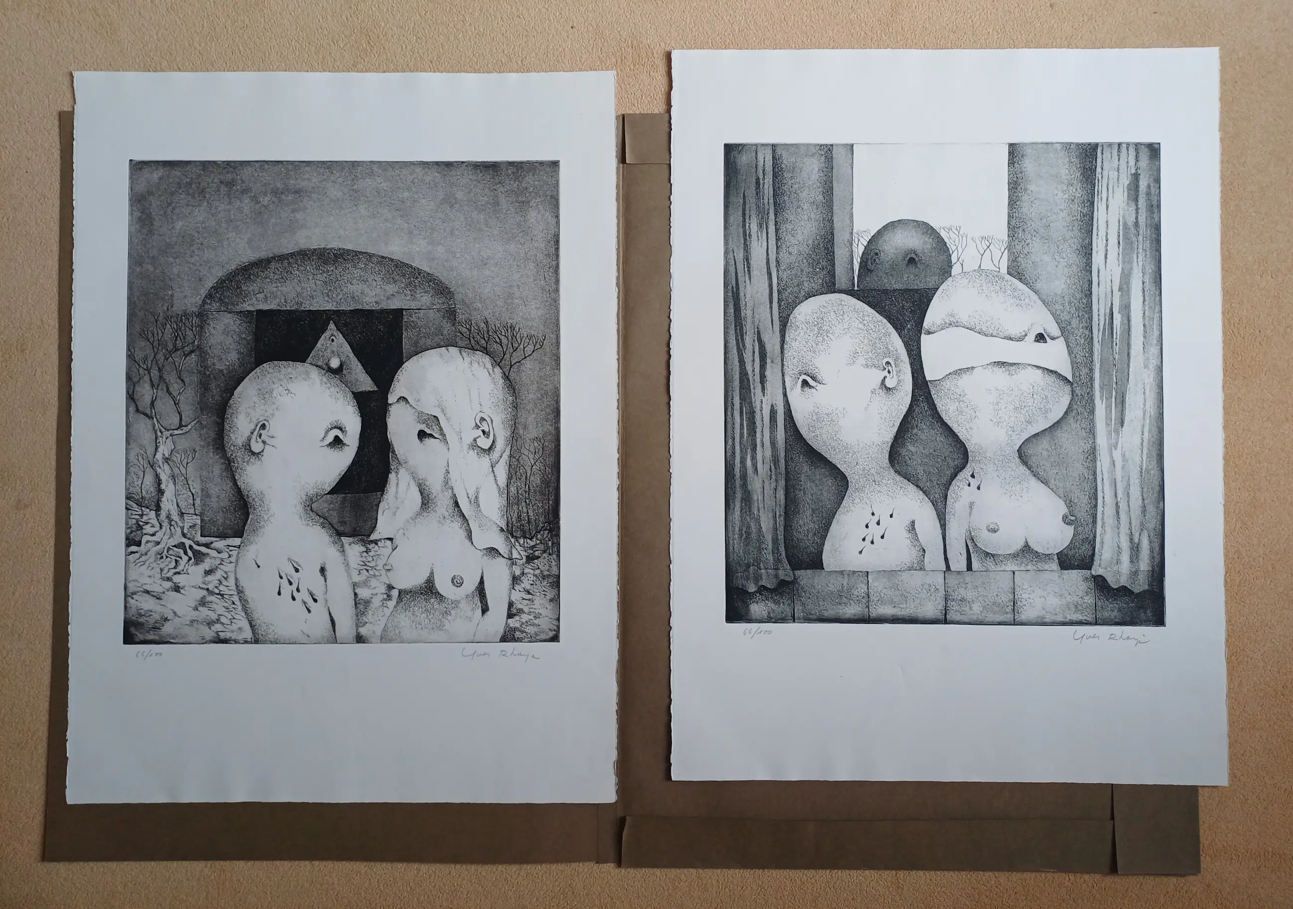 Orfeo ed Euridice; map met twee etsen in de zeer karakteristieke stijl van Yves Rhayé (1936-1995). Afmetingen : 72 x 57 cm, in zeer goede staat.