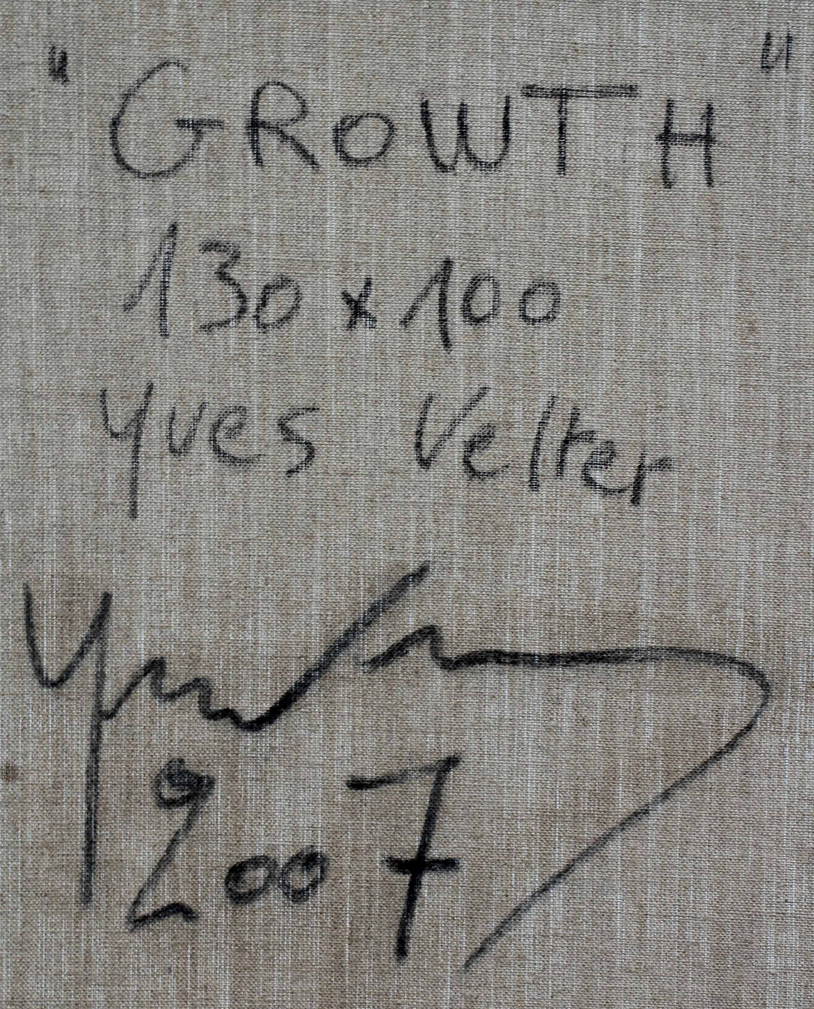 Olieverf op doek van Yves Velter. Titel: "Grouth". Jaar: 2007. Afmetingen werk: H130 x b100cm. Het werk is midden onderaan gesigneerd door de kunstenaar. De authenticiteit van het, aangeboden, werk wordt volledig gegarandeerd. Een certificaat van echtheid kan, op aanvraag, worden gemaild.