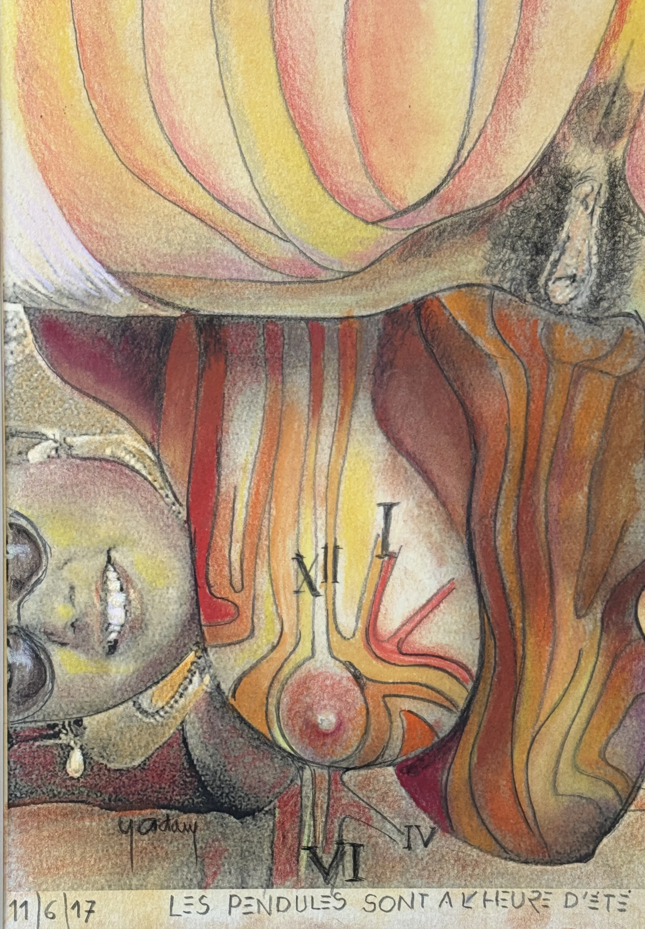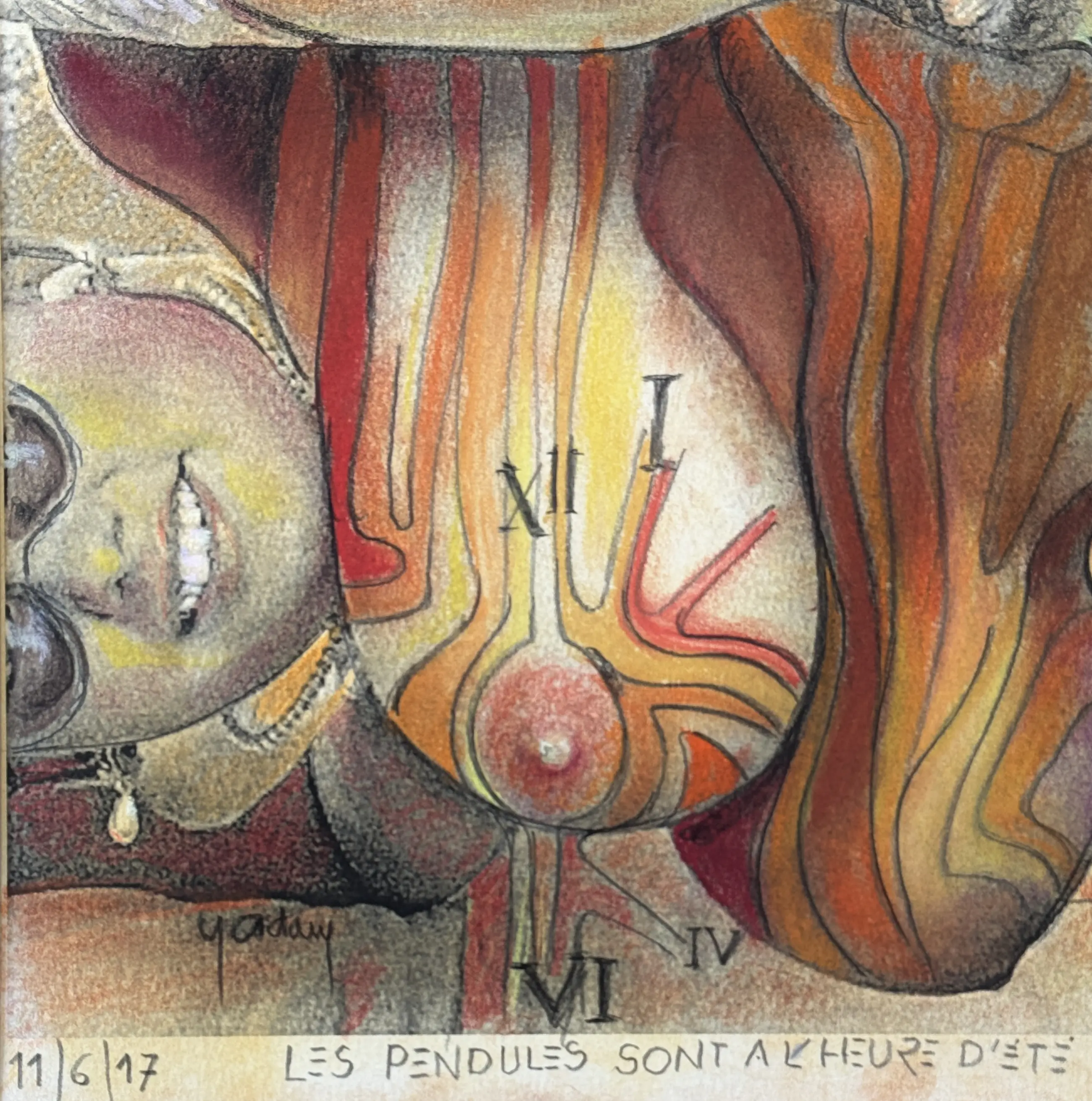 Graag wil ik een interessant werk van de Belgische kunstenaar Yvon Adam presenteren, een mixed media-kunstwerk verrijkt met krijt.
