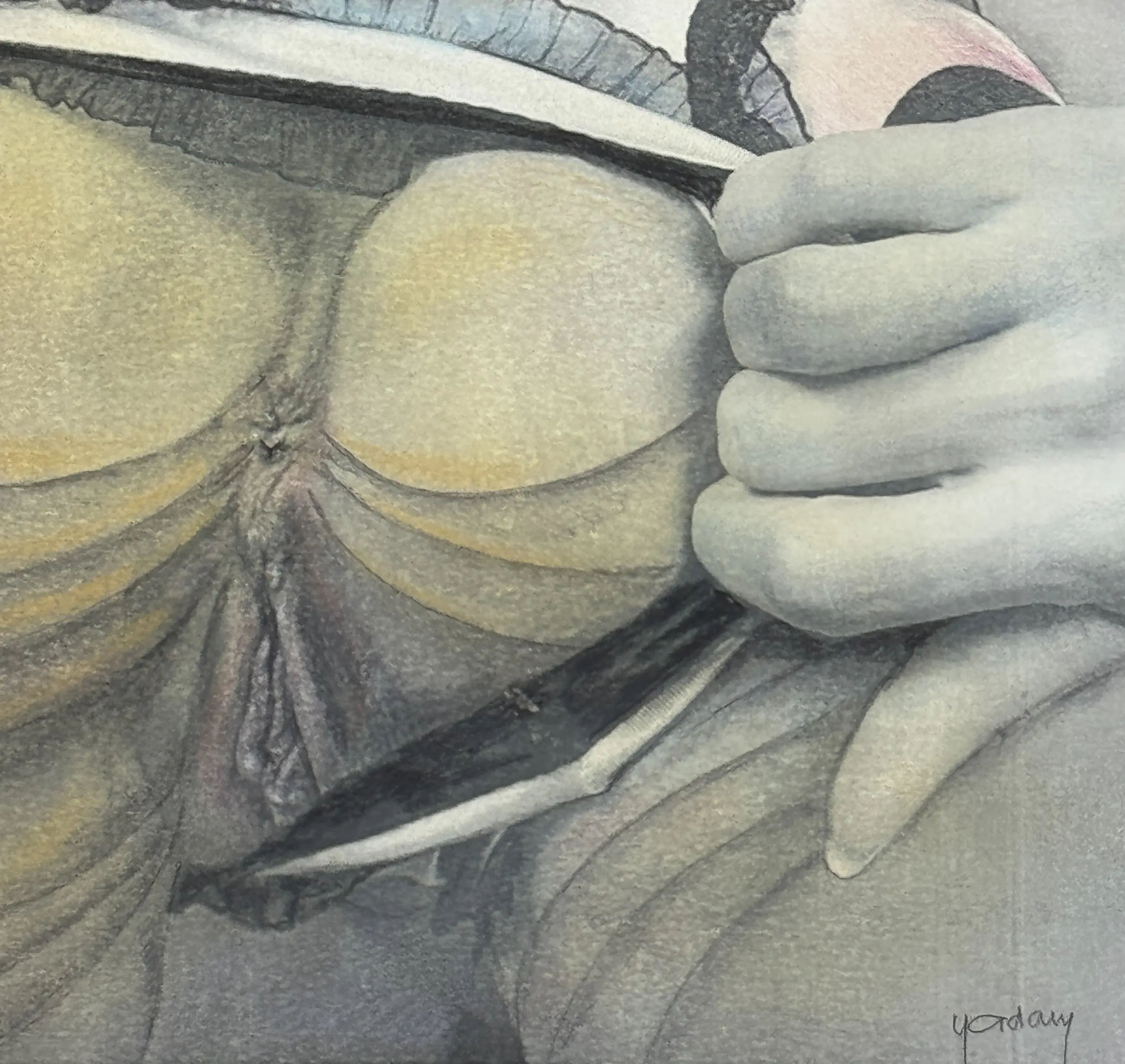Ik stel u een interessant werk voor van de Belgische kunstenaar Yvon Adam, een gemengde techniek verbeterd met krijt.