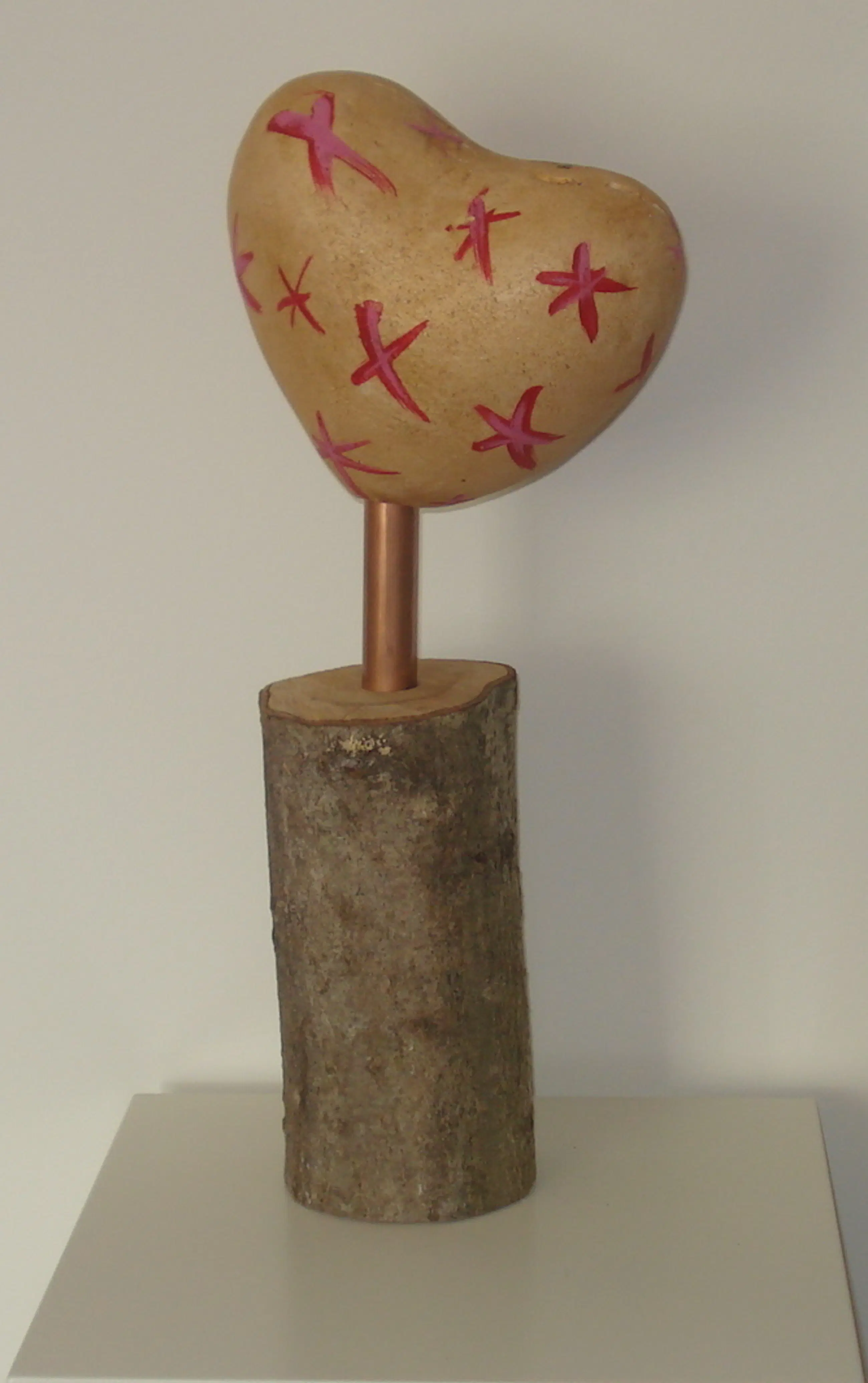 Afmeting:44 x 19 x 19 cm Techniek:Keramiek, hout,koper, prachtig , origineel object!