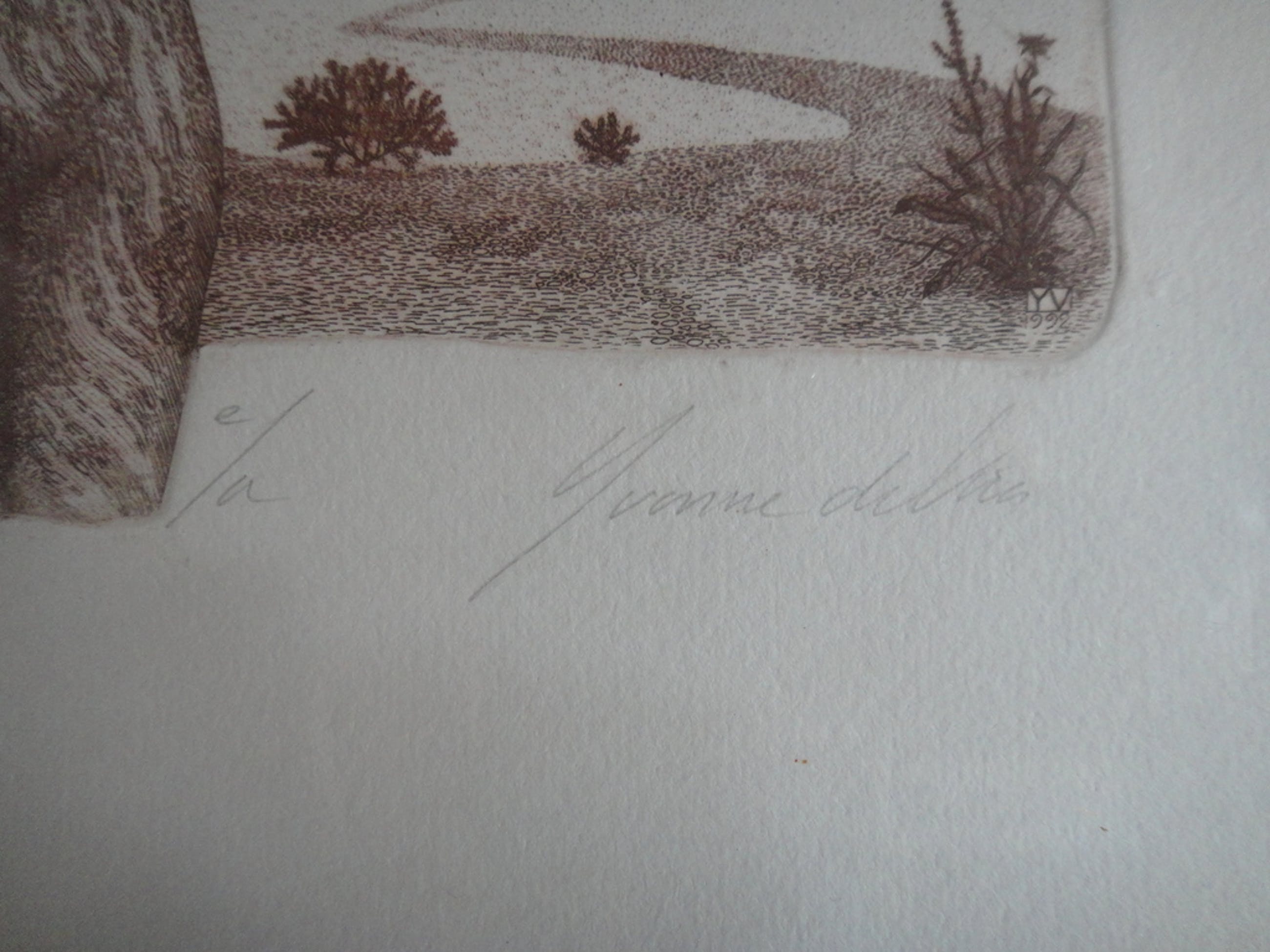 Monogram en datering in de ets: 'YV 1992'.