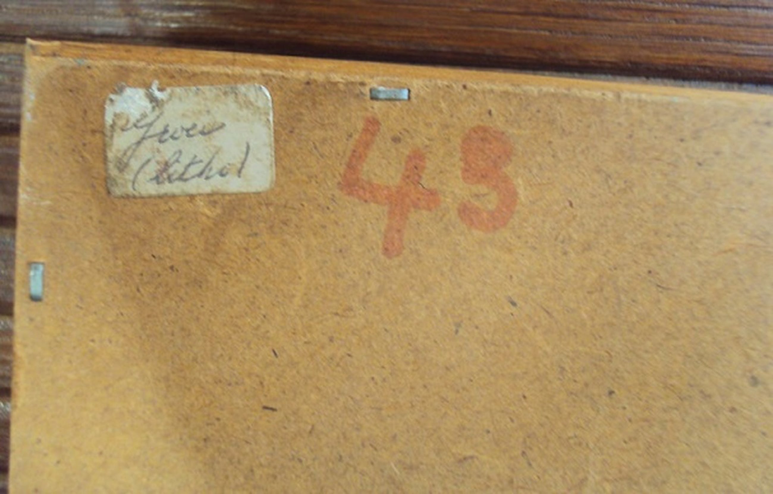 De litho is uit 1973 en ingelijst. De maat van de lijst is 55 bij 61 cm. Het is nummer 7 van 22. Er is een blindstempel zichtbaar van Frans Masereel Centrum, Kasterlee. Dit betekend dat Yvonne Guns de ets heeft gemaakt toen ze in het grafisch kunstcentrum verbleef. Elk werk wat daar gemaakt wordt krijgt zo'n stempel. Het centrum is opgericht in 1972, dit betekend dat ze er 1 jaar na de oprichting verbleef.