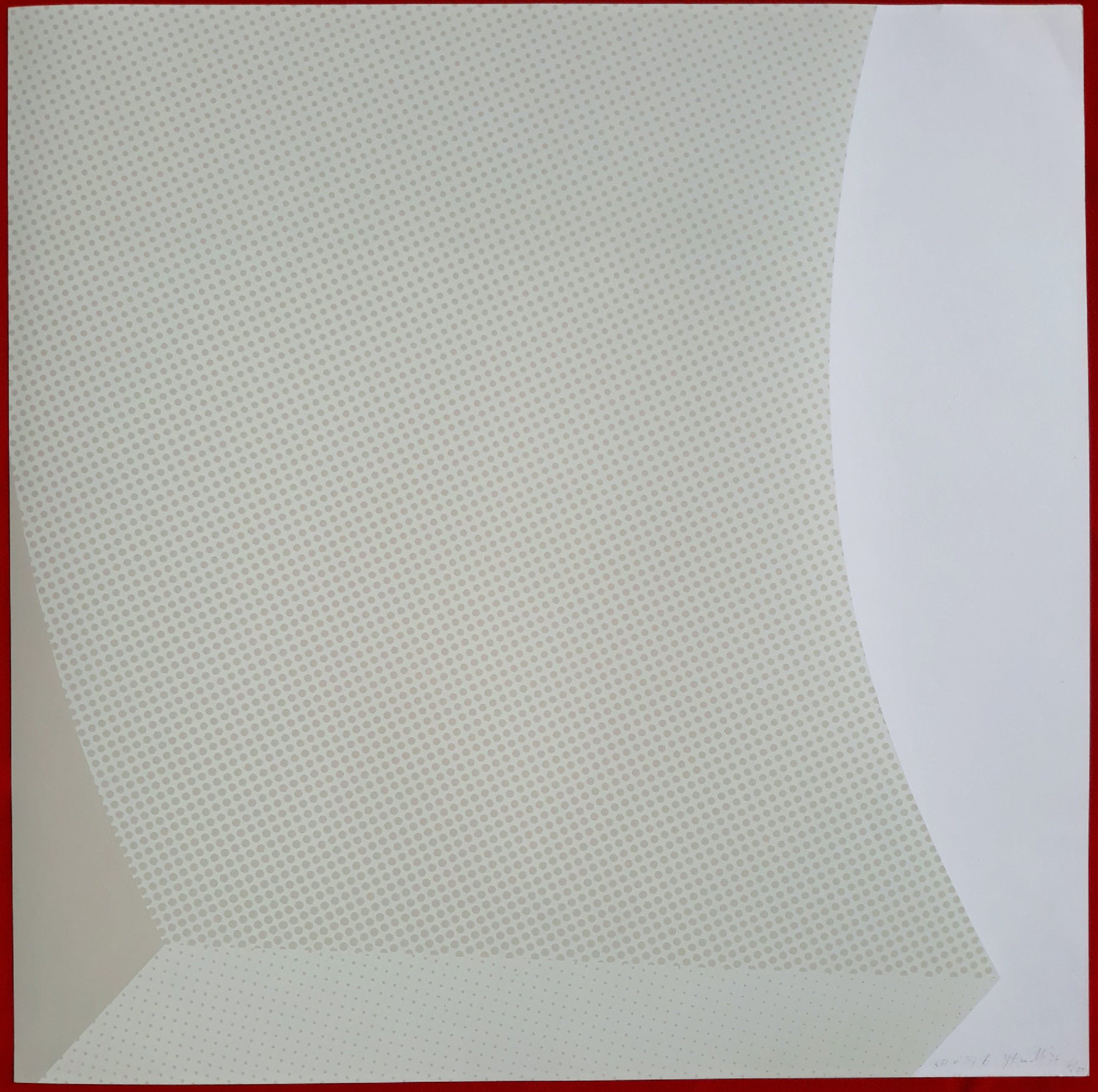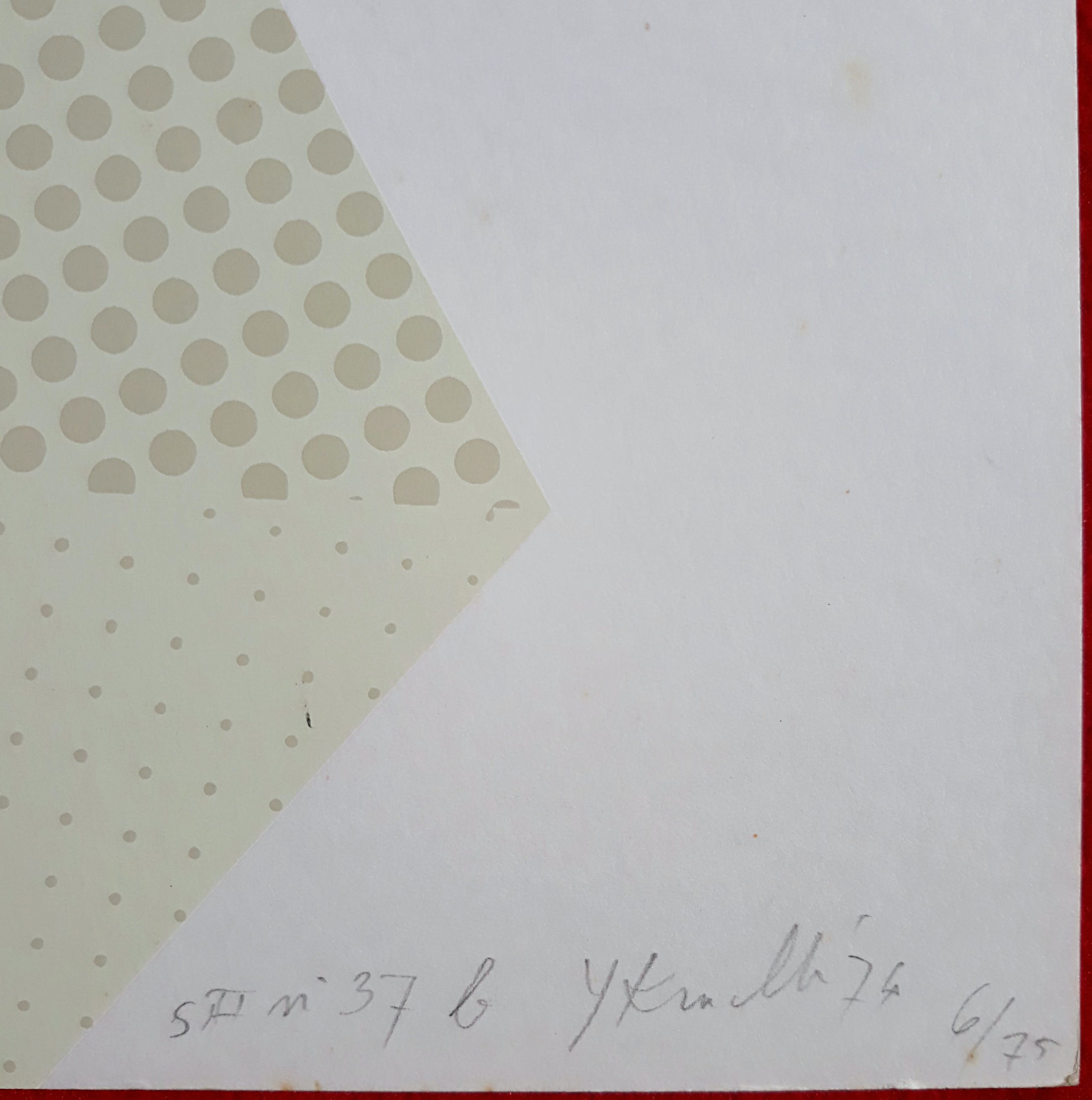 Krachtige, strakke compositie van Yvonne Kracht. Zeefdruk op glad papier, met potlood gesigneerd, gedateerd (‘74), getiteld (SII no.37b) en genummerd (6/75). In zeer goede conditie; in het witte vlak zitten wel wat hele kleine foxing puntjes.