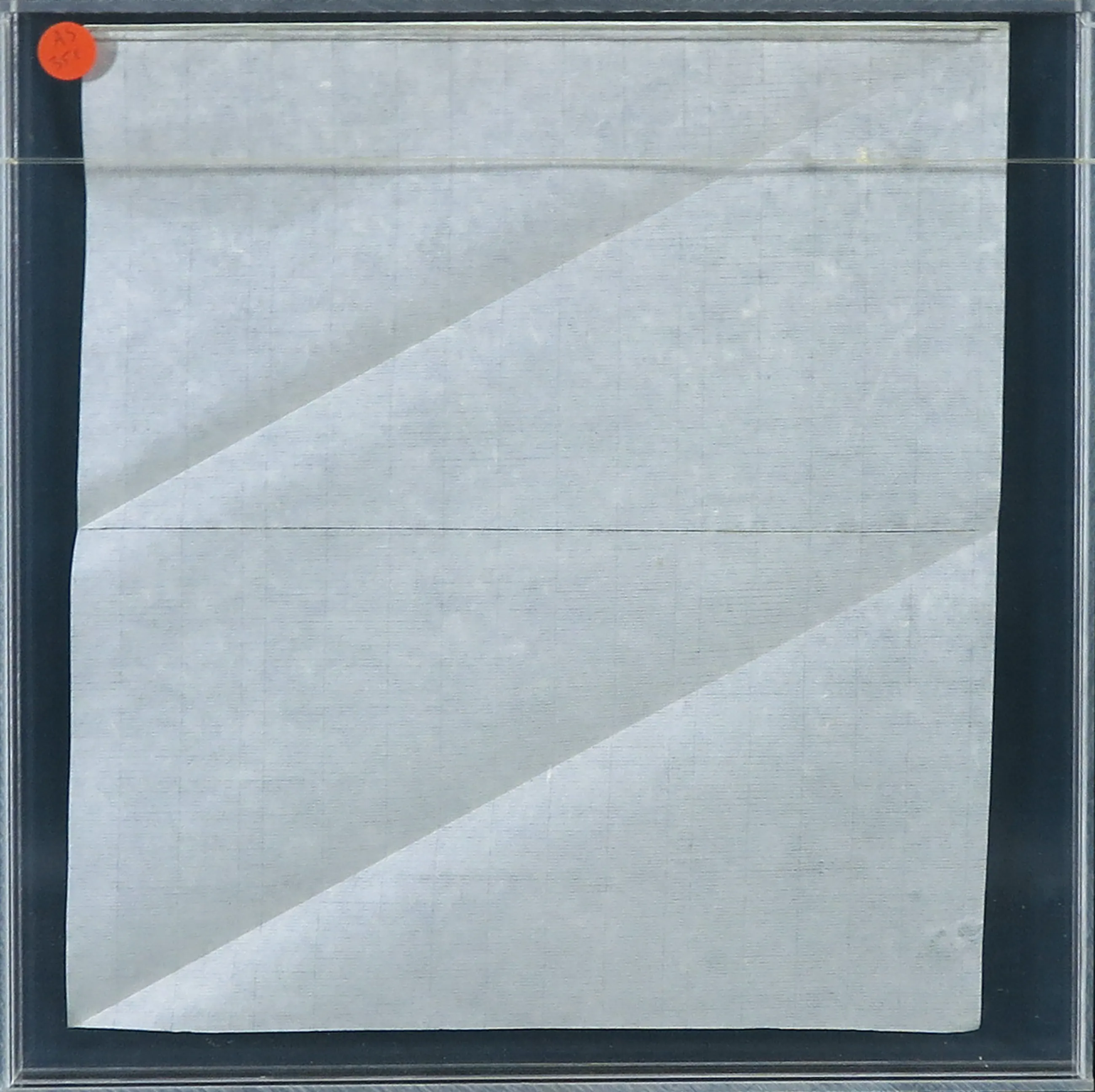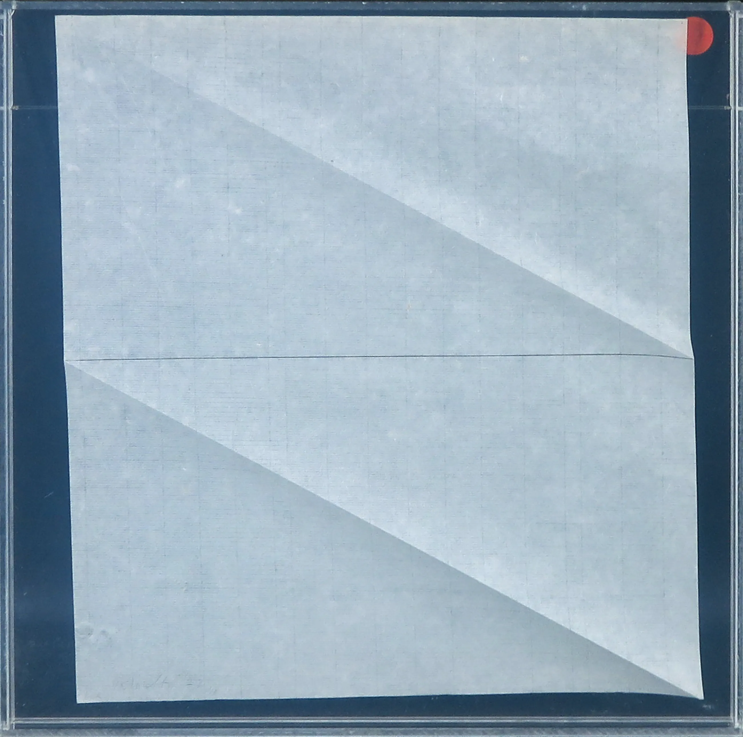 Het werk zit in een plexiglas case/lijst, met een transparante achterzijde.