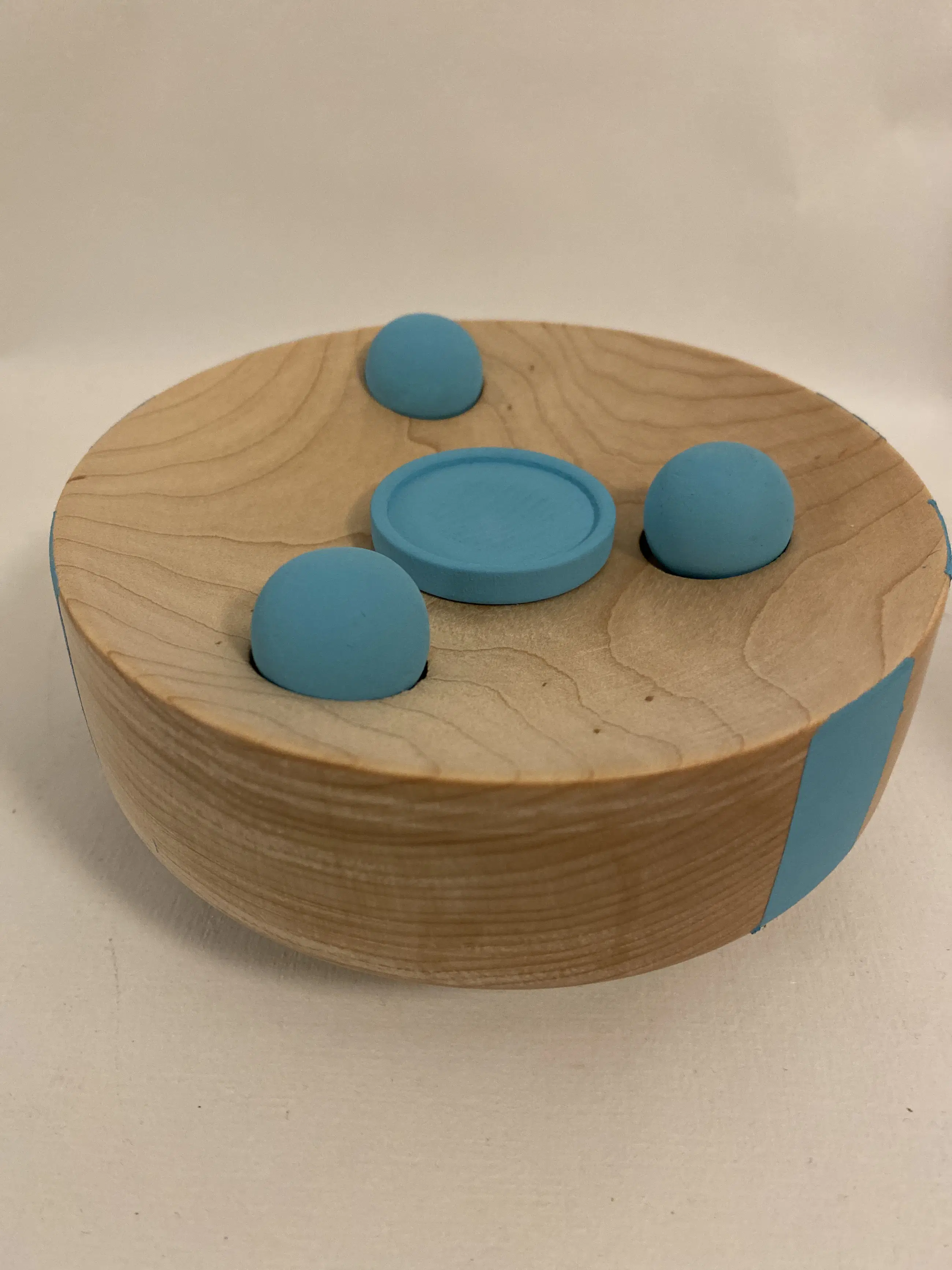 Handgedraaide houten object. Bestaande uit 3 delen.
