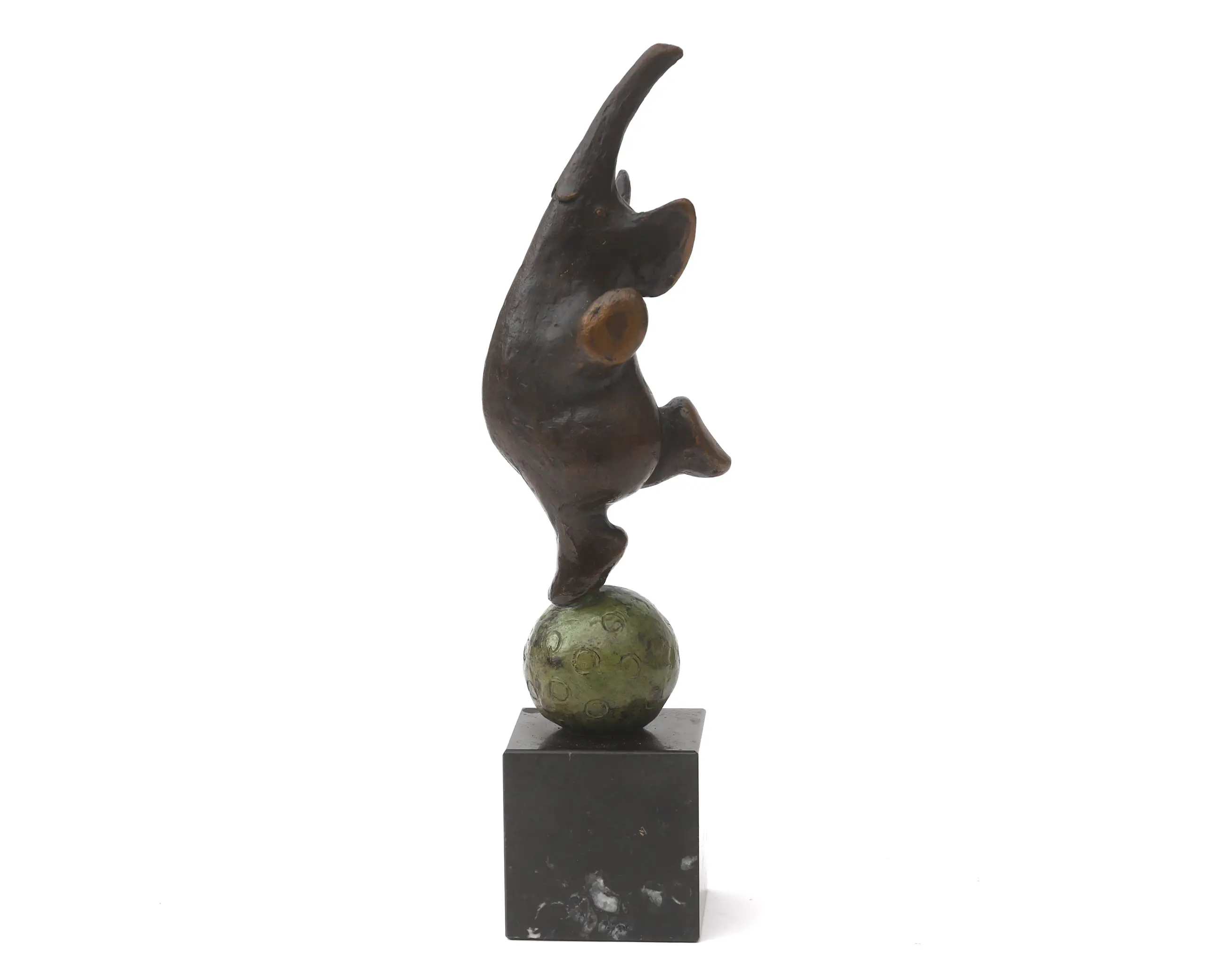 Bronzen beeld van Yvonne Visser. Voorstelling van een olifant. Afmetingen beeld: H22 x b6cm x d4cm. Hoogte incl sokkel: H28cm. Een certificaat van echtheid kan, op aanvraag, worden gemaild.