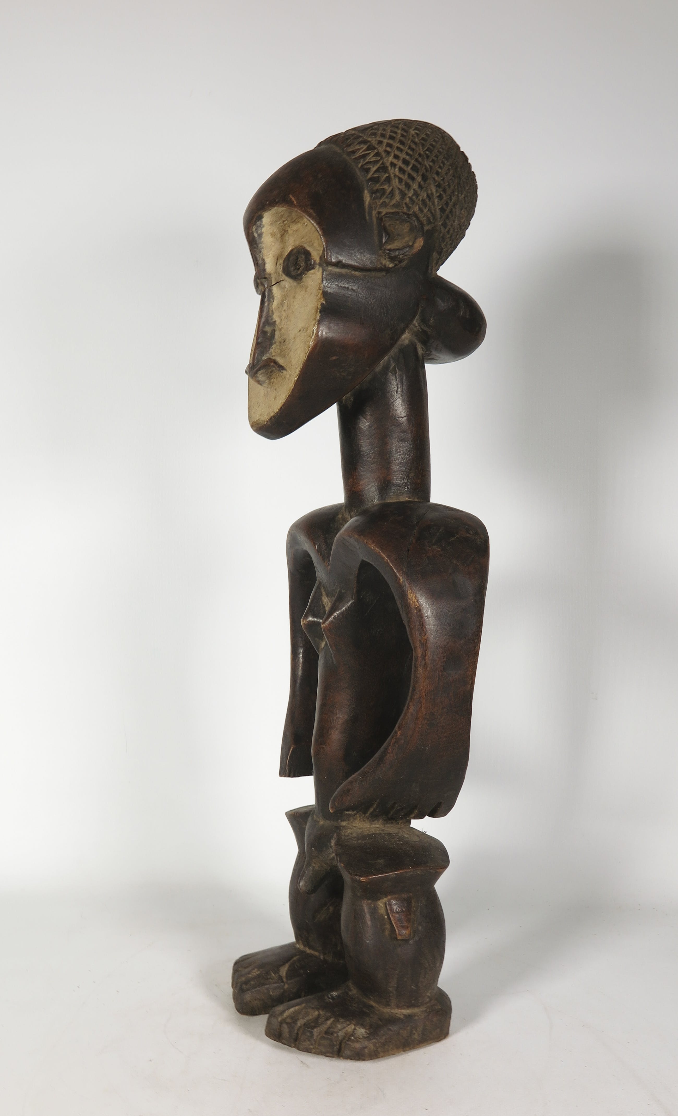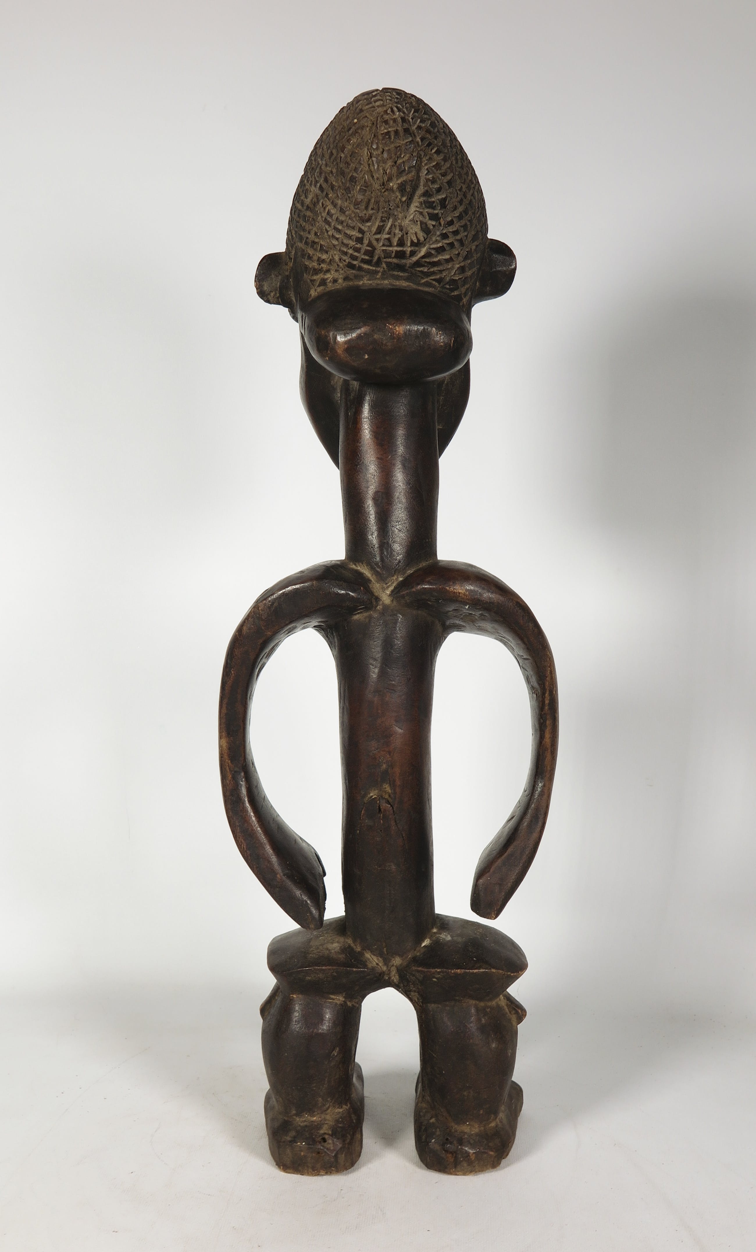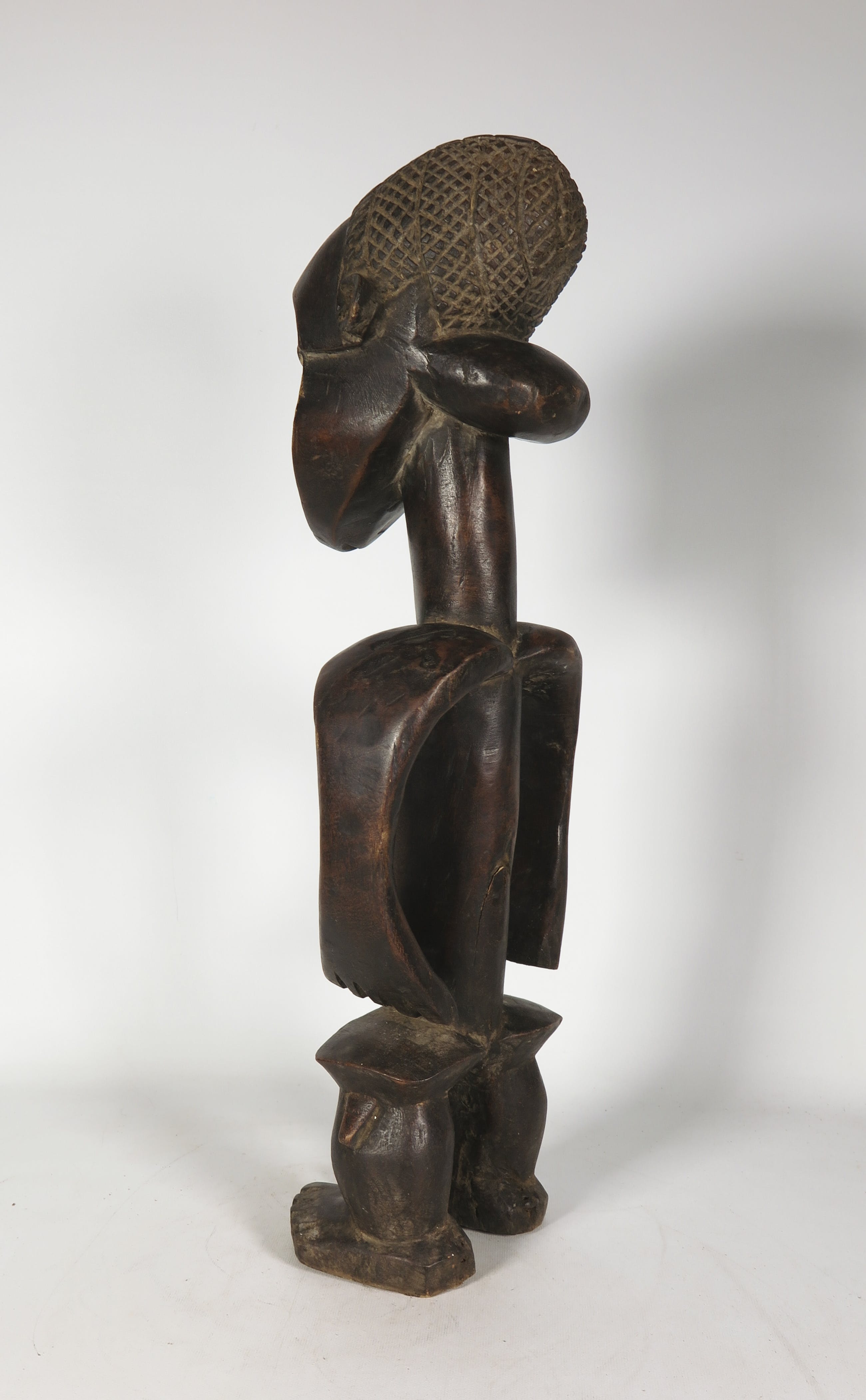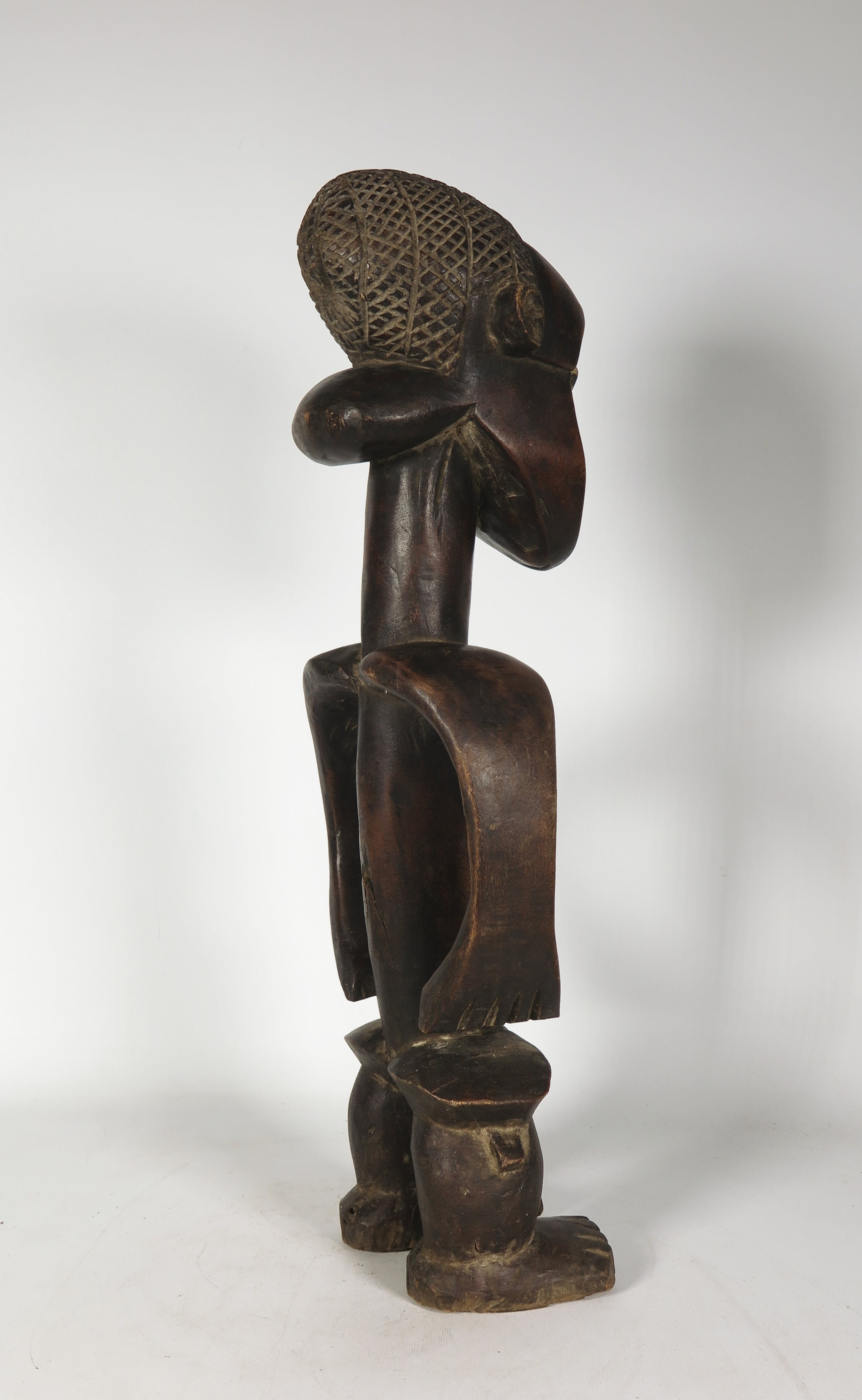 | Het beeld is in goede staat, maar heeft wat (krimp)scheuren in het hout en wat lichte gebruikssporen. | |||
