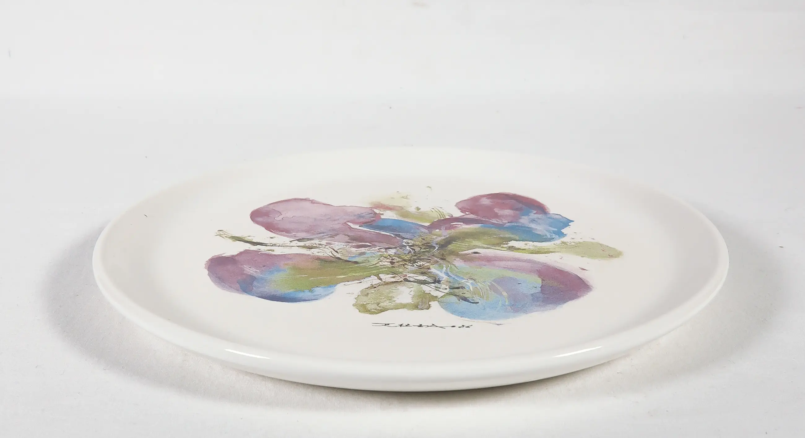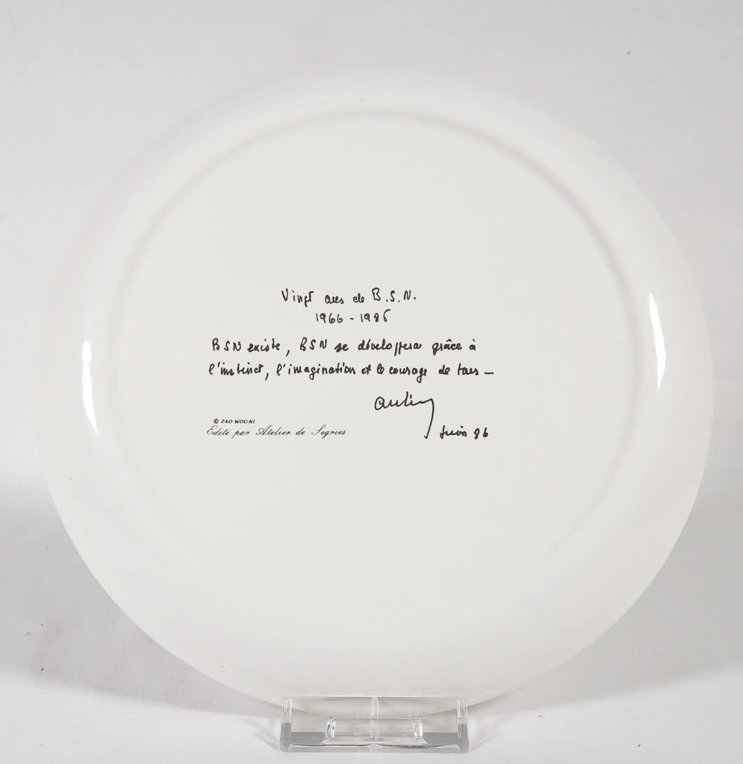 Porseleinen bord met print van Zao Wou-Ki, uitgevoerd door Atlier de Segries in 1986.