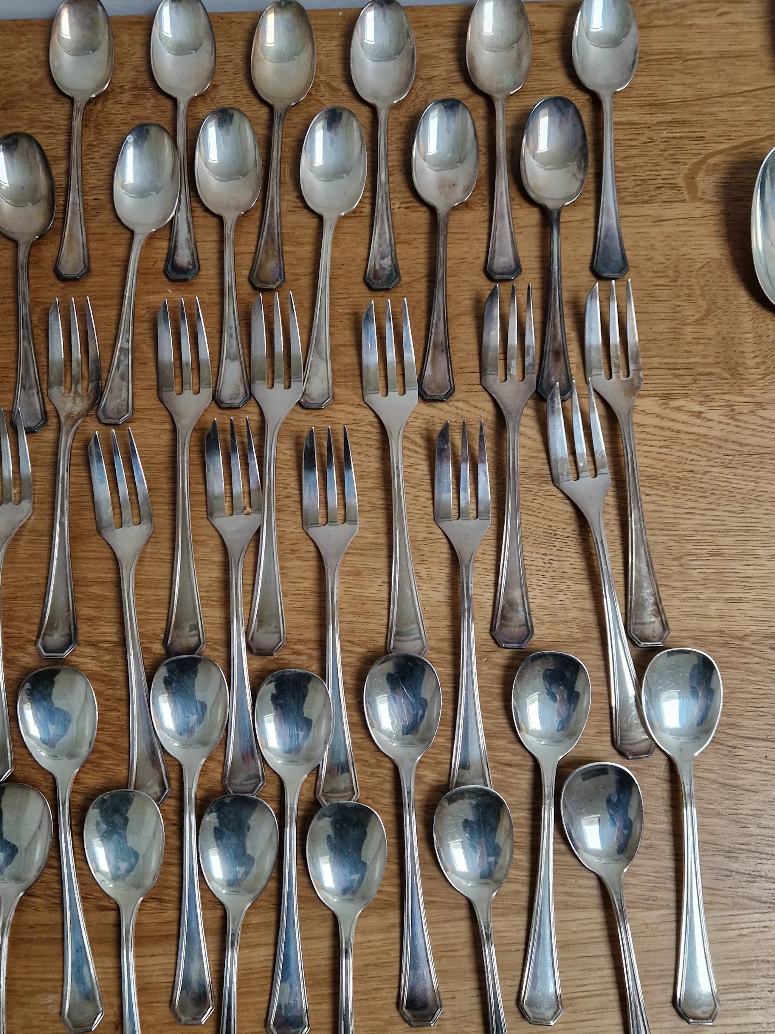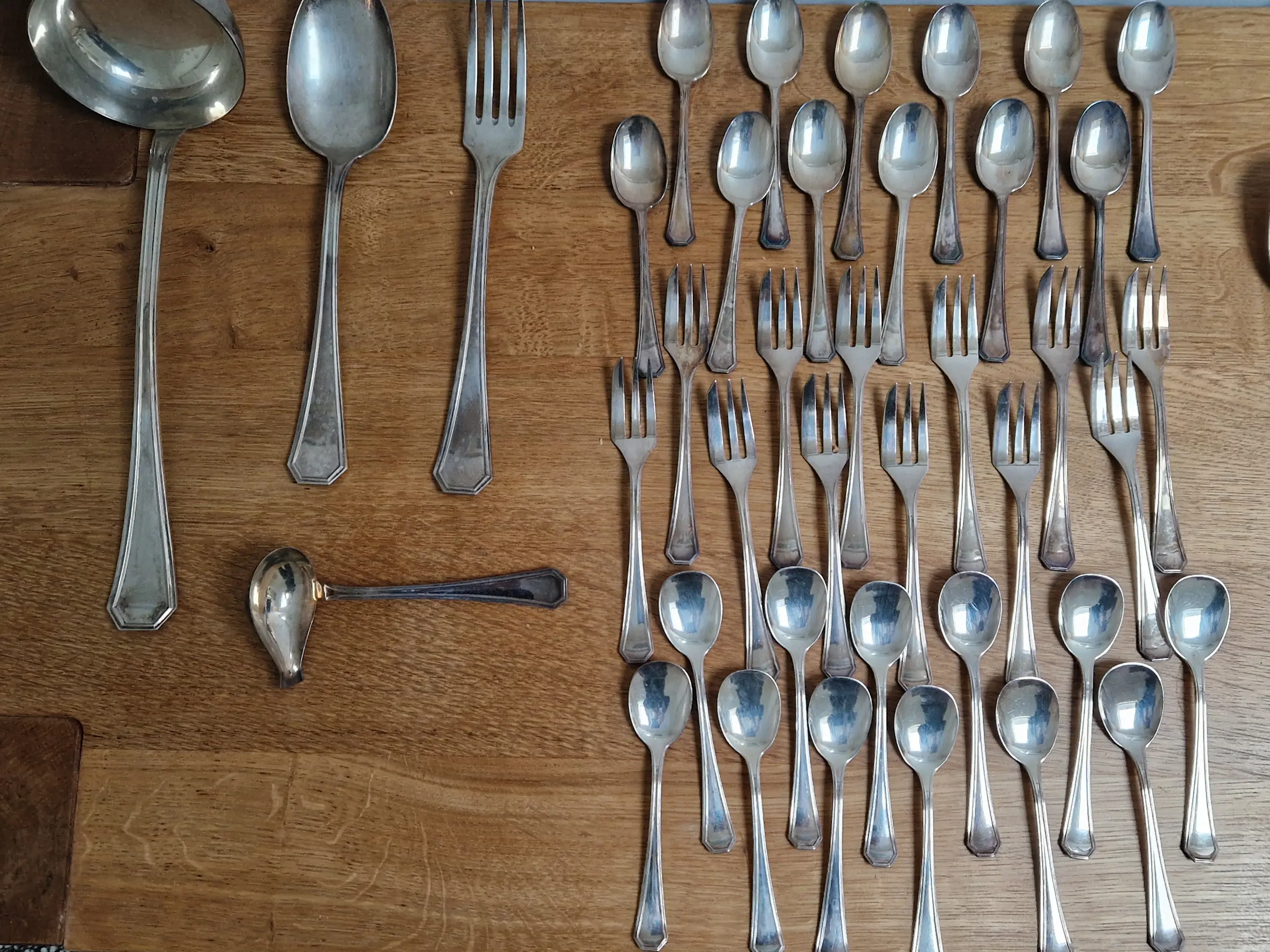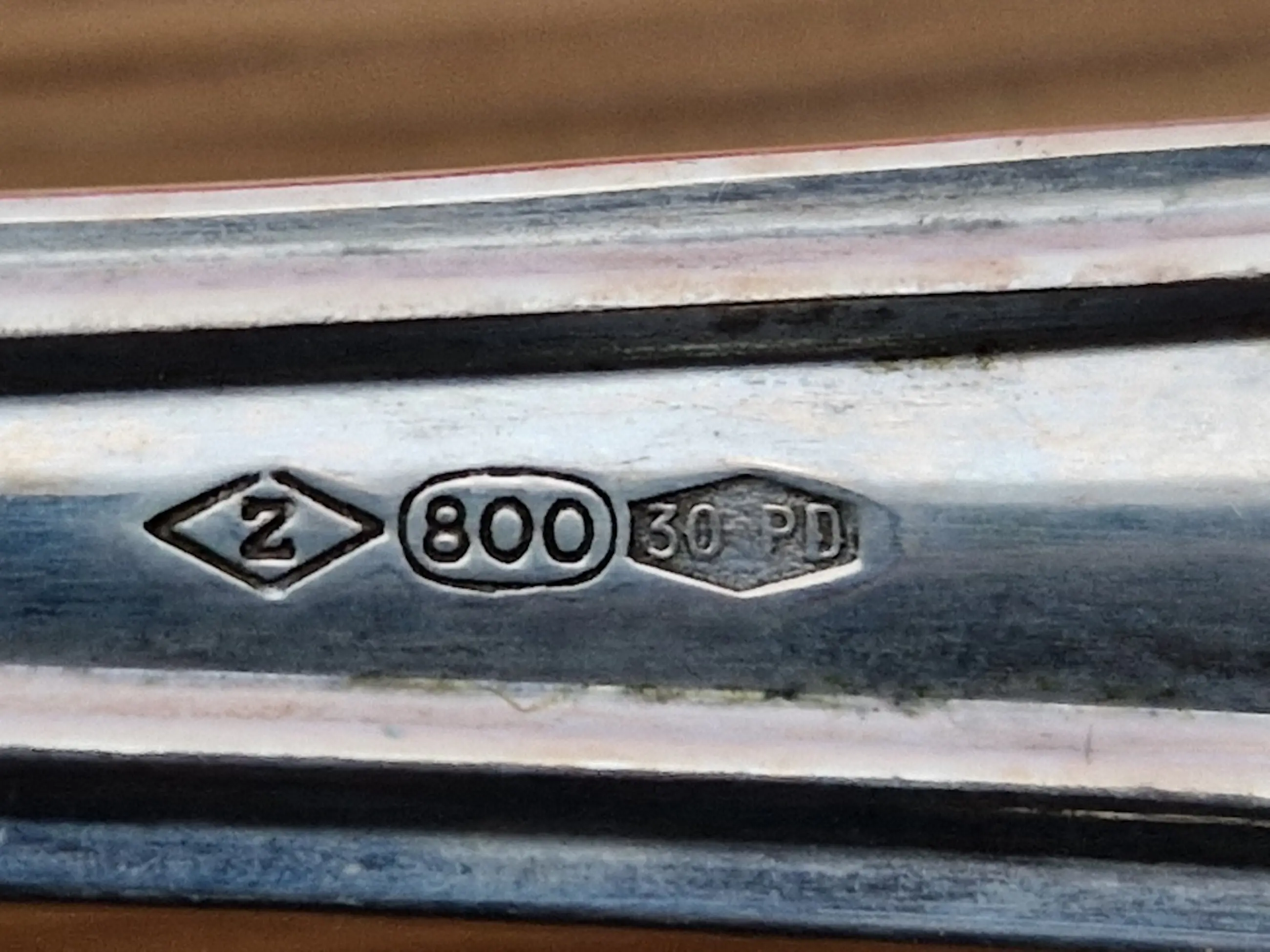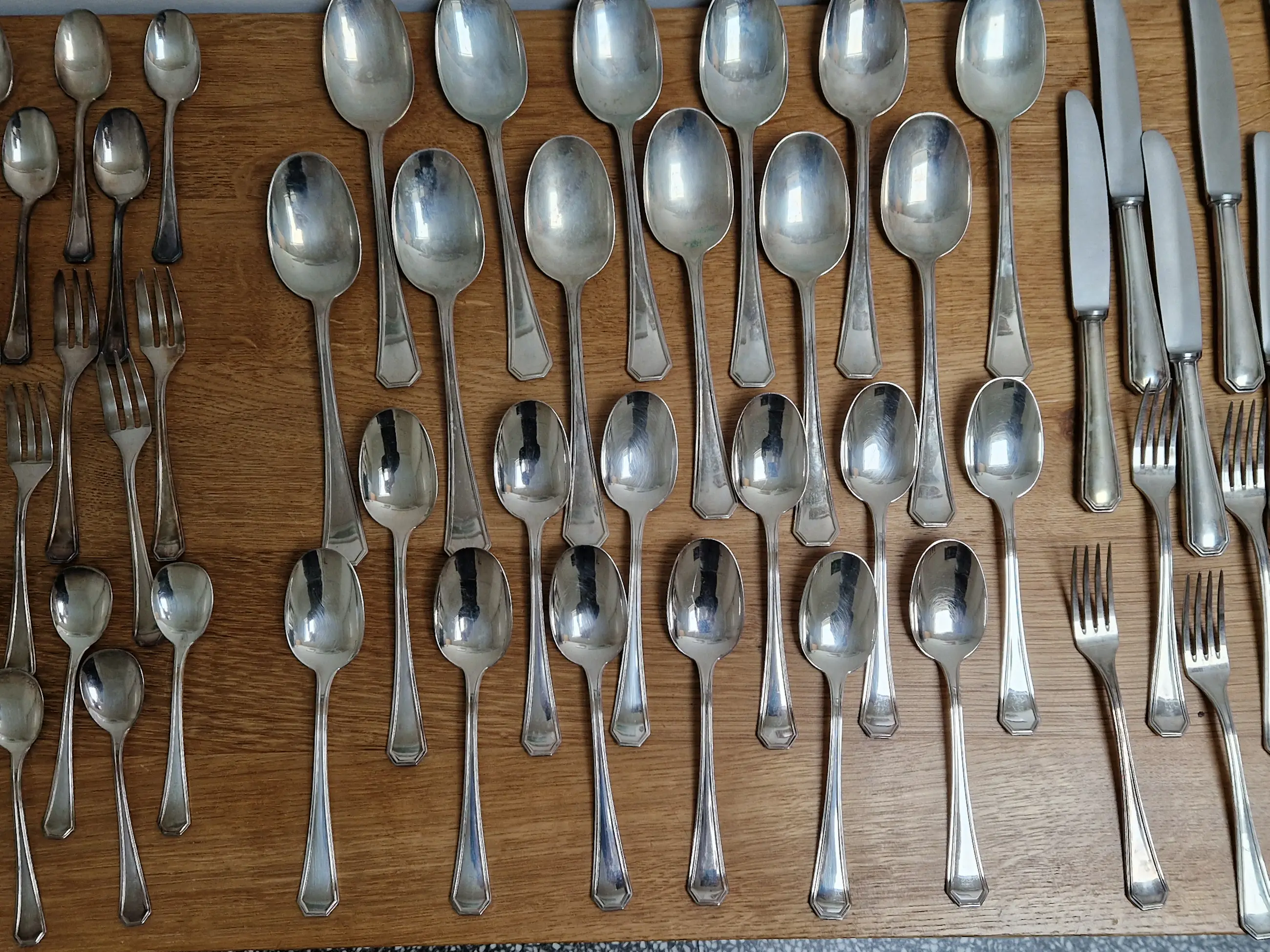 Zilveren bestek set van Zaramella Argenti uit Padua, Italië. Het betreft de 12 persoons set genaamd 'Ottagonale' uit 1976. Elk individueel item is gemerkt met het meesterteken 'Z' van Zaramella, het gehalte .800 en de plaatsaanduiding 30PD (werkplaatsnummer 30 in Padua).