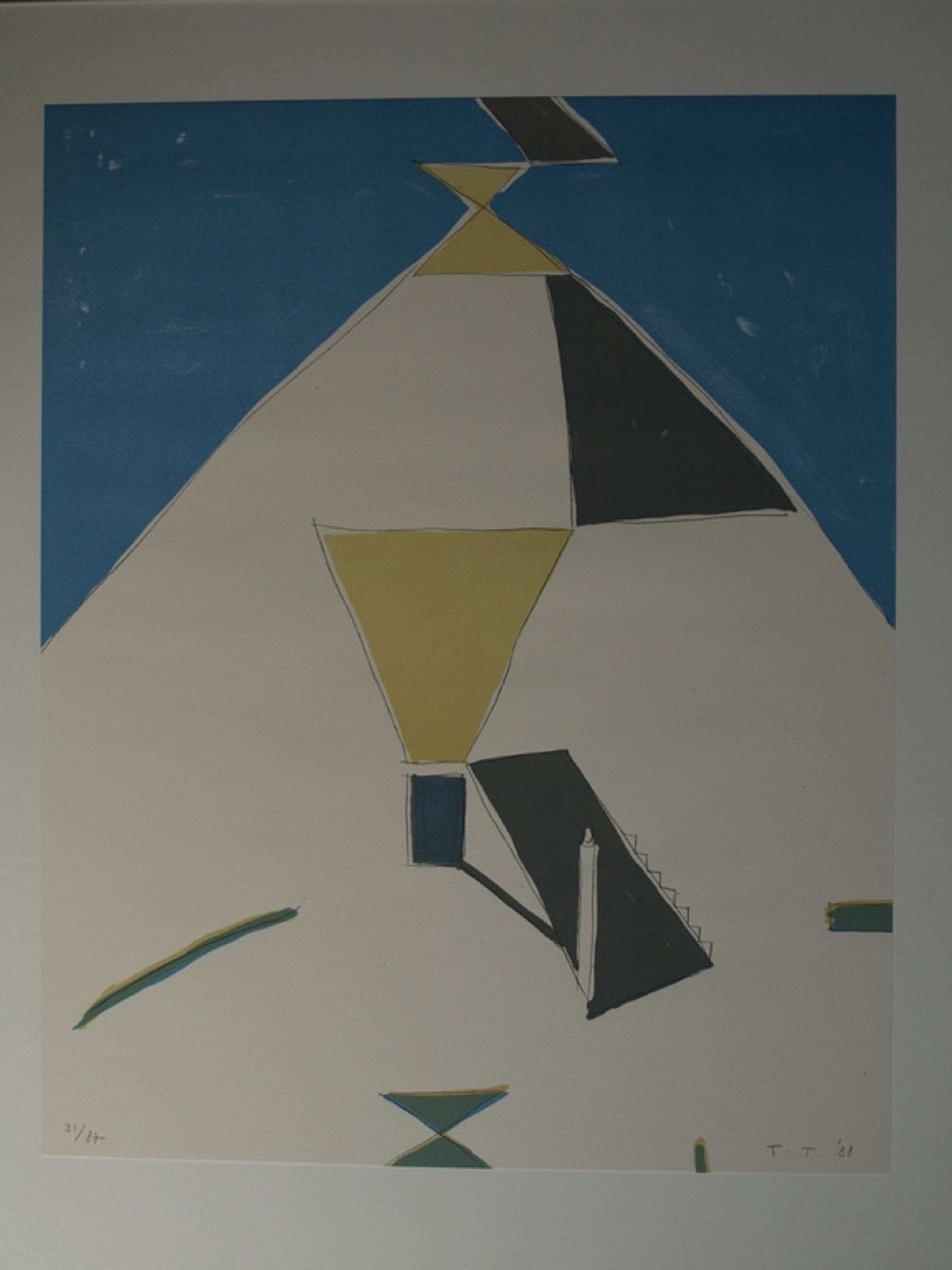 Een zeefdruk uit 1988. Gesigneerd (initialen) en gedateerd. Helaas hebben wij de naam van de kunstenaar niet kunnen achterhalen.